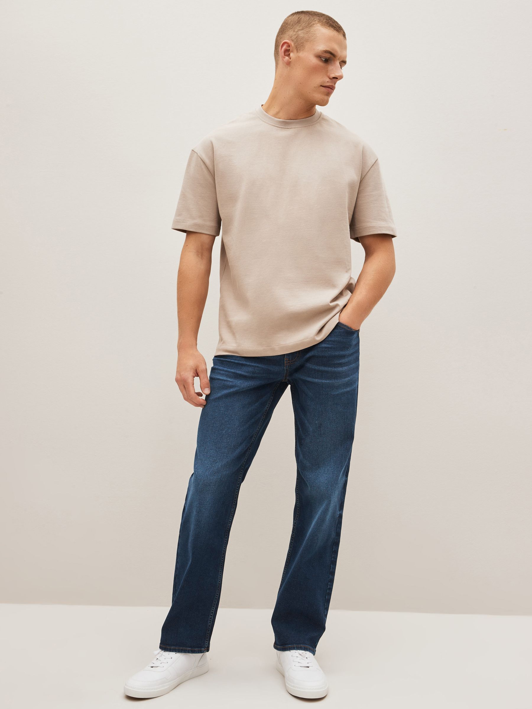 Mid Blue Straight Fit Straight Fit Essential Stretch Jeans