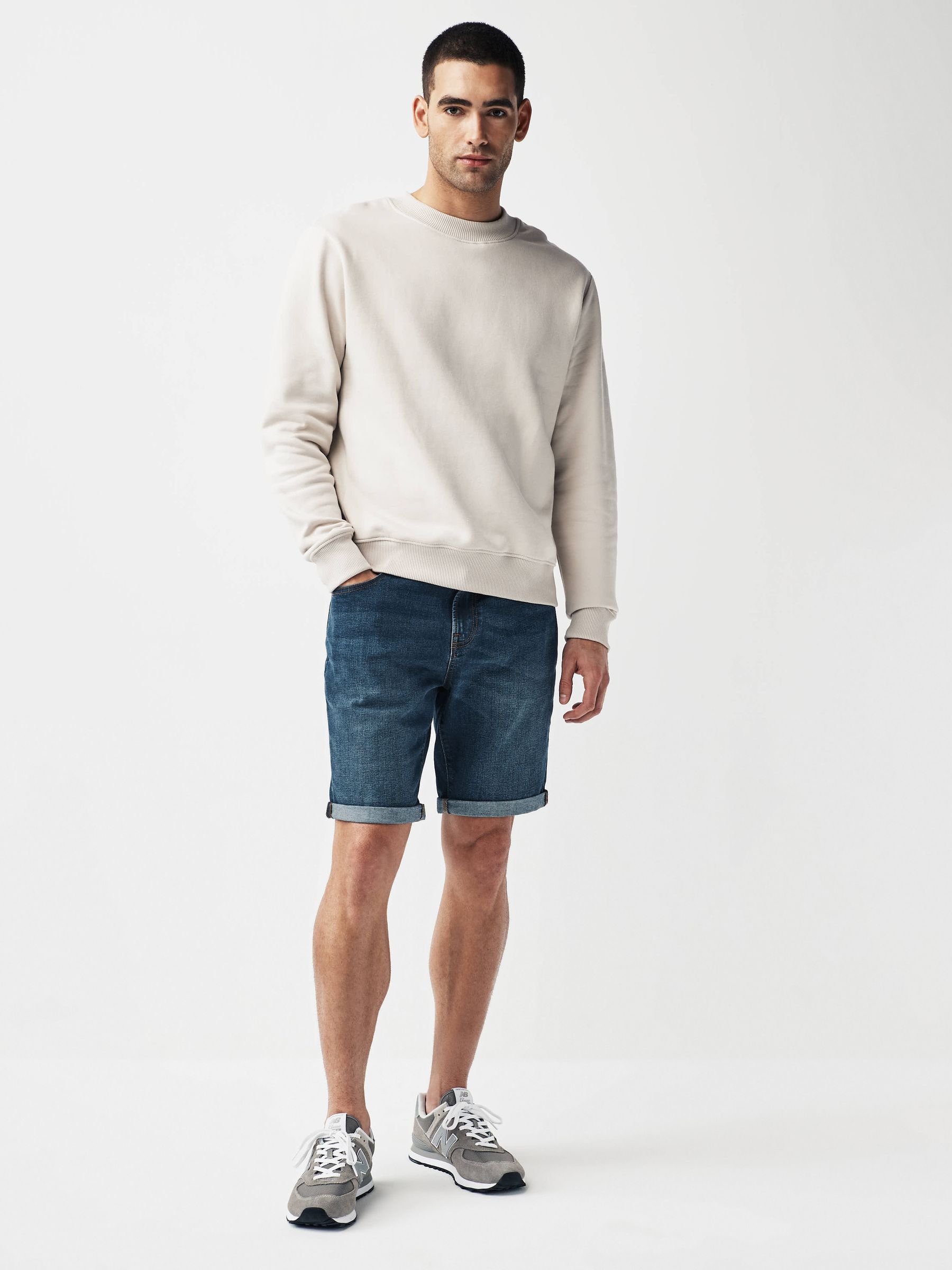 A summer essential, our mid blue straight fit denim shorts are made for warm weather days. Crafted from a soft cotton blend with added stretch, each pair boasts a stylish rolled-up hem detail with a zip fly and a traditional five-pocket design. Team them with a linen shirt or classic T-Shirt and boat shoes for a timeless weekend outfit. straight fit Soft cotton blend with added stretch Rolled-up hem Zip fly Five-pocket design Machine washable. 80% Cotton, 18% Recycled polyester, 2% Elastane. Better Cotton – By choosing our cotton products, you’re supporting our investment in Better Cotton’s mission to help cotton farming communities survive and thrive while protecting and restoring the environment. This product is sourced via a system of mass balance and therefore may not contain Better Cotton. Learn more at www.next.co.uk/better-cotton