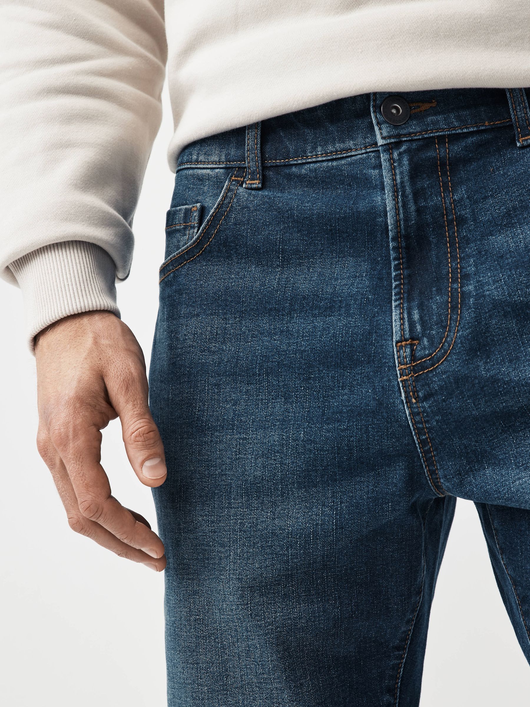 A summer essential, our mid blue straight fit denim shorts are made for warm weather days. Crafted from a soft cotton blend with added stretch, each pair boasts a stylish rolled-up hem detail with a zip fly and a traditional five-pocket design. Team them with a linen shirt or classic T-Shirt and boat shoes for a timeless weekend outfit.