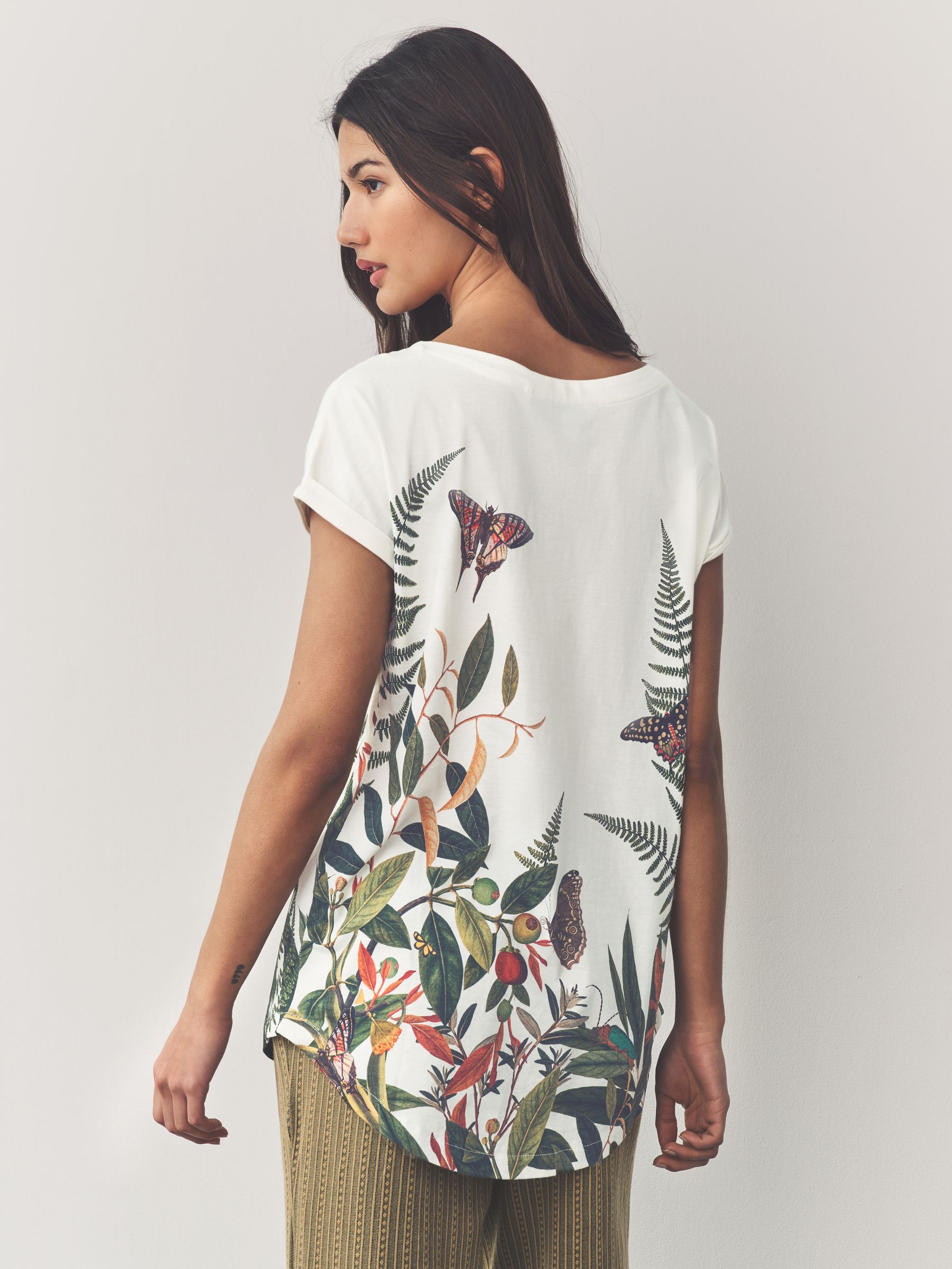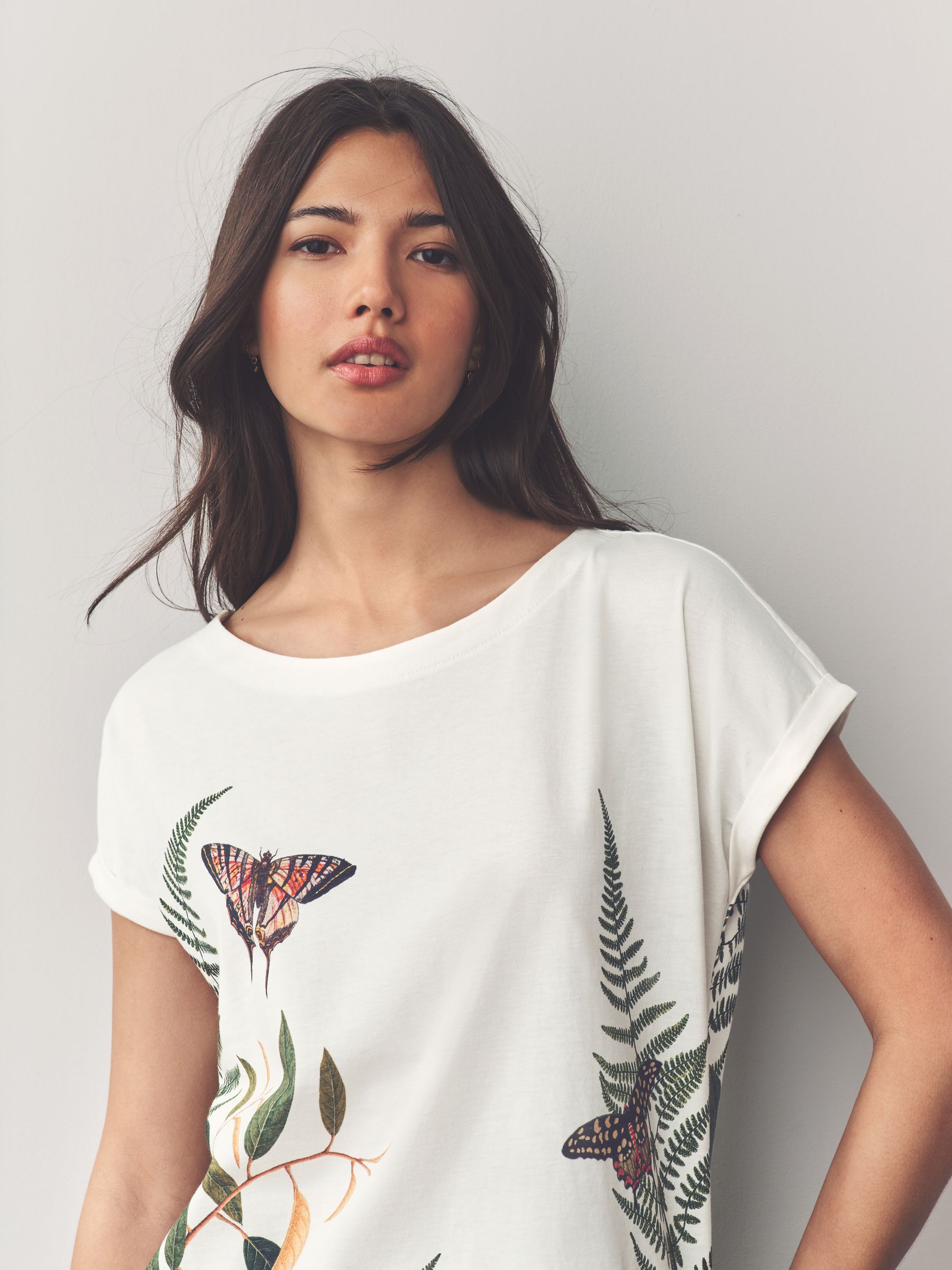 Add the best of basics to your wardrobe with our cotton round neck cap sleeve T-Shirt. This super soft T-Shirt is finished with a round neckline and cap-sleeved detailing creating the perfect essential T-Shirt for your wardrobe. Plain pattern Short turned-up cap sleeves Round neck Machine washable. 100% Cotton. Made with U.S. Cotton Trust Protocol verified origin. A new standard in sustainble cotton production. The U.S. Cotton Trust Protocol assures more sustianable cotton farming, including fair working conditions and best practices for water and pesticide usage, soil diversity and greenhouse gas emmisions.