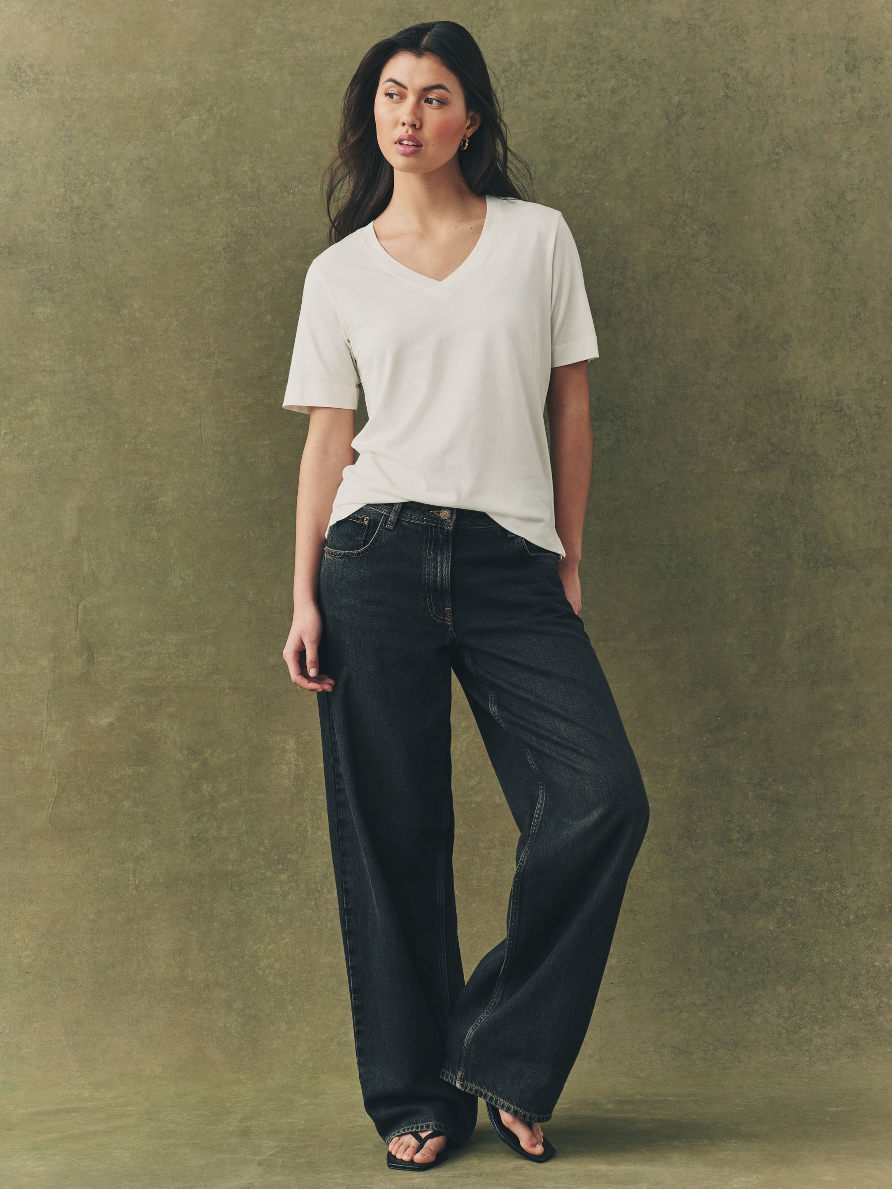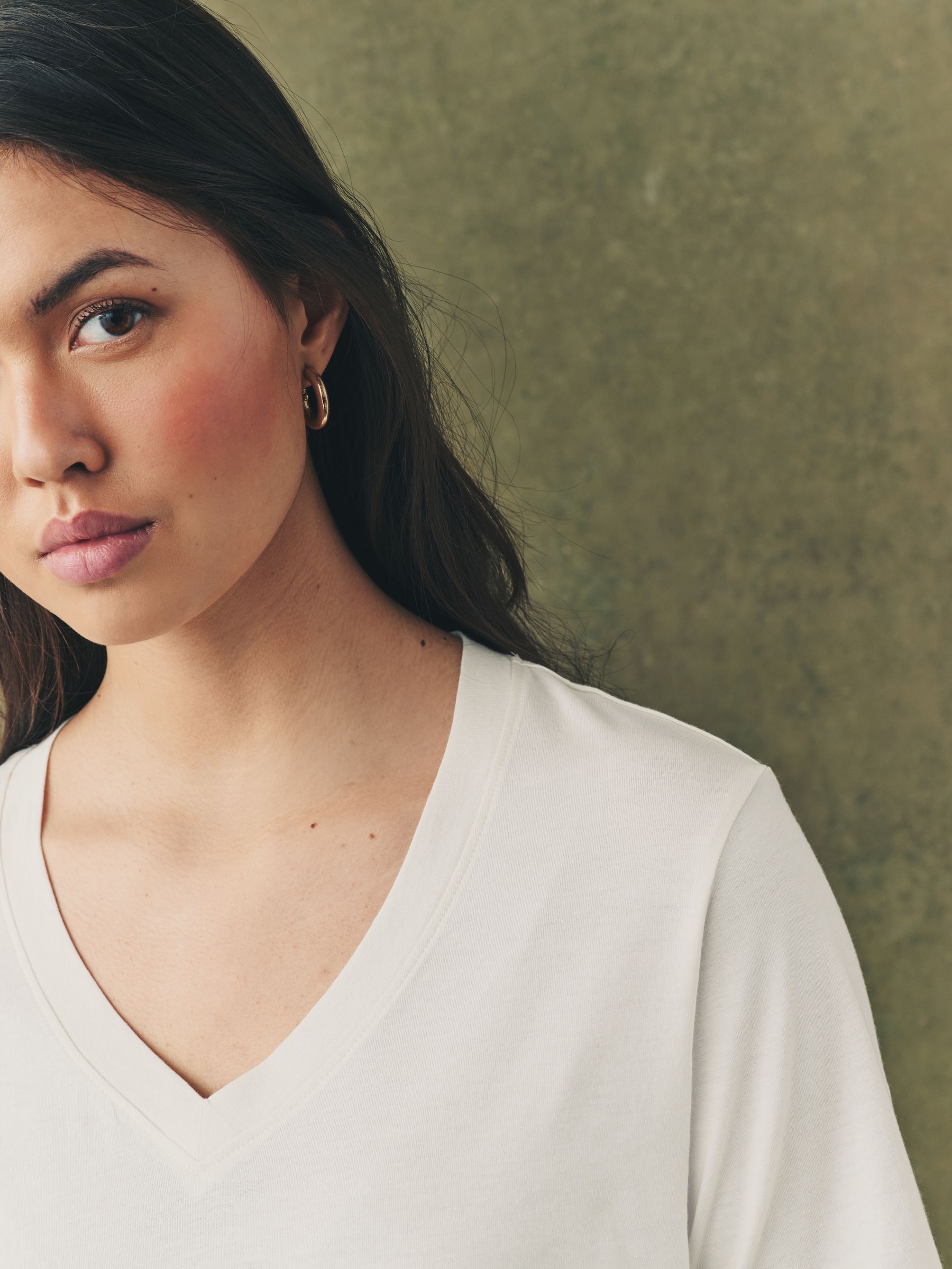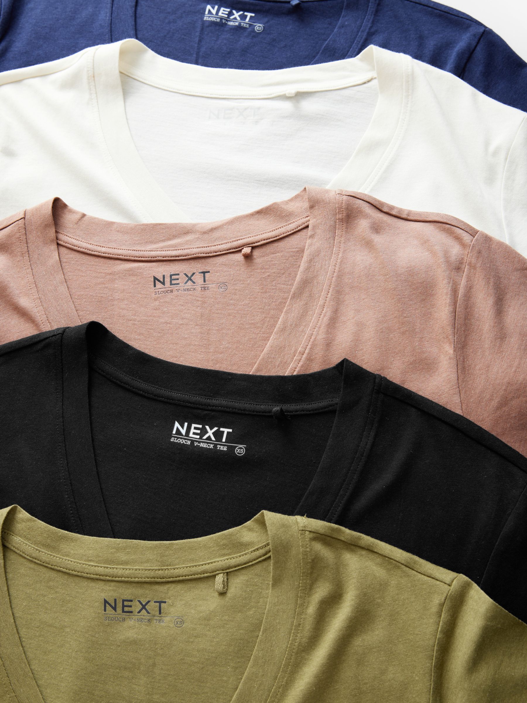 Our 5 pack of slouch v-neck t-shirt are crafted from a soft handle cotton modal blend, creating a flattering drapey shape. The lined v-neck adds premium detailing to the overall look. Ultra soft and comfortable, this will be your new go to. 5 pack Cotton modal blend V-neckline Regular fit Machine washable. 5 x T-shirt 50% Cotton, 50% TENCEL™ modal. Better Cotton – By choosing our cotton products, you’re supporting our investment in Better Cotton’s mission to help cotton farming communities survive and thrive while protecting and restoring the environment. This product is sourced via a system of mass balance and therefore may not contain Better Cotton. Learn more at www.next.co.uk/better-cotton
