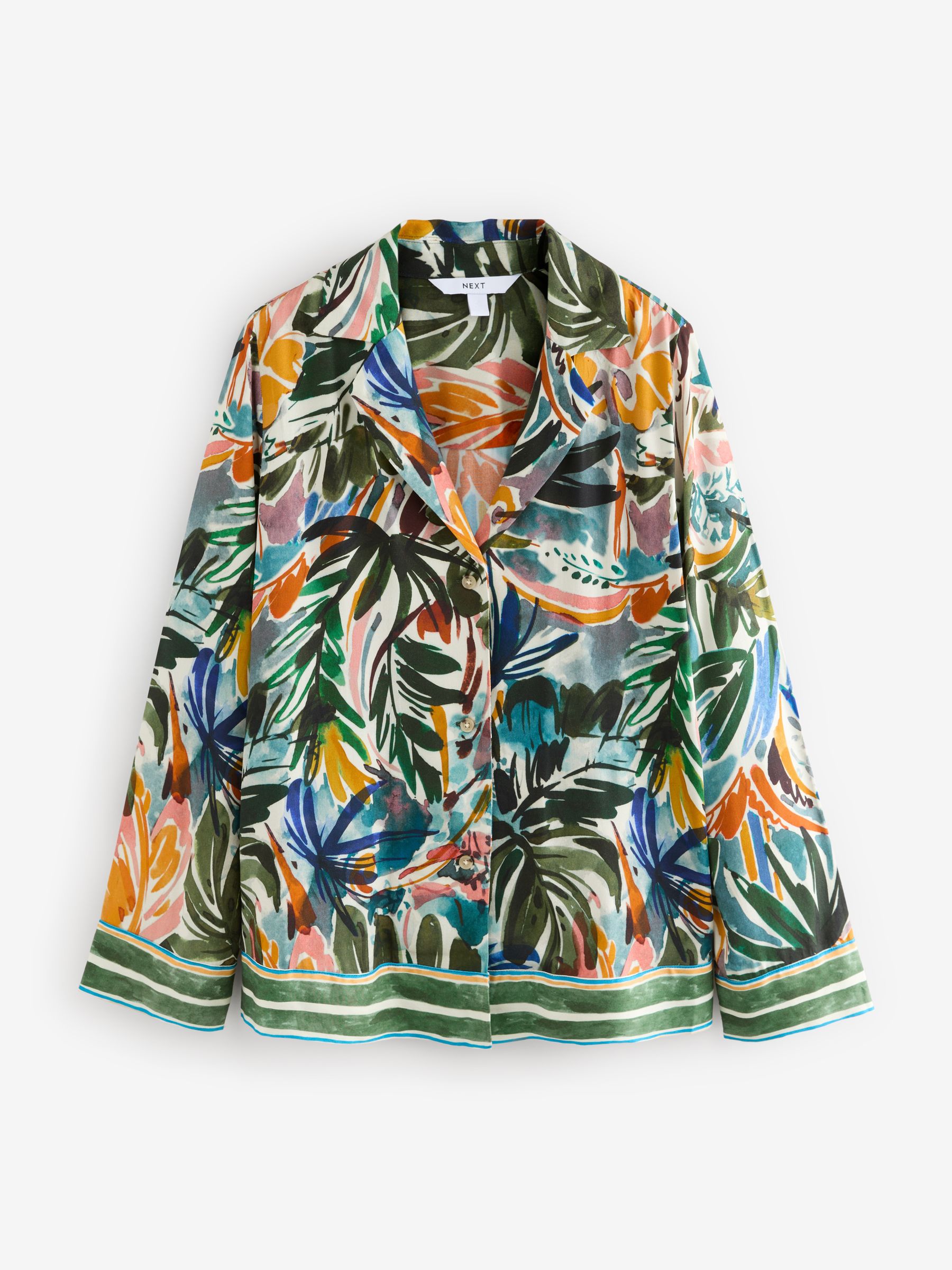 Elevate your weekend to office wardrobe with our soft feel relaxed blazer. A lighter weight alternative to your standard blazer, this multi-coloured palm print piece is perfect to style for layering or on its own. Style with the matching trousers and your favourite sandals for the ultimate show-stopping day to night look. Regular relaxed fit Lightweight fabric Button fastening Matching trousers Machine washable. 100% LENZING™ ECOVERO™ Viscose. Items with the curve logo are available in sizes 18 and above.