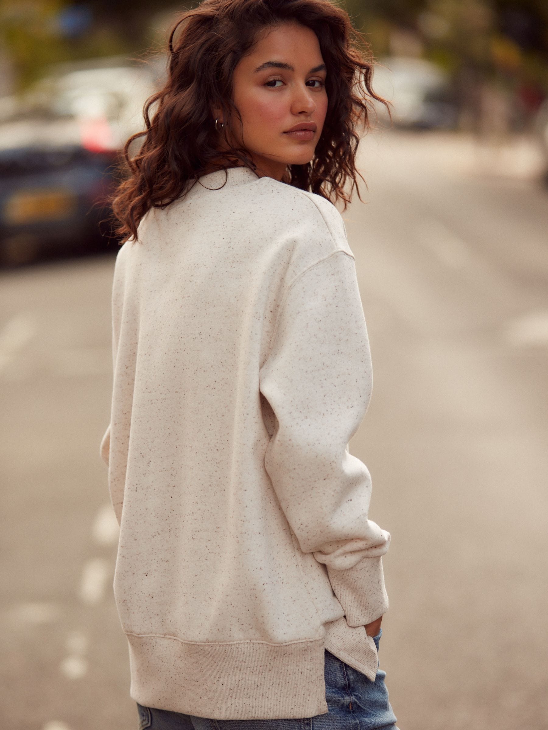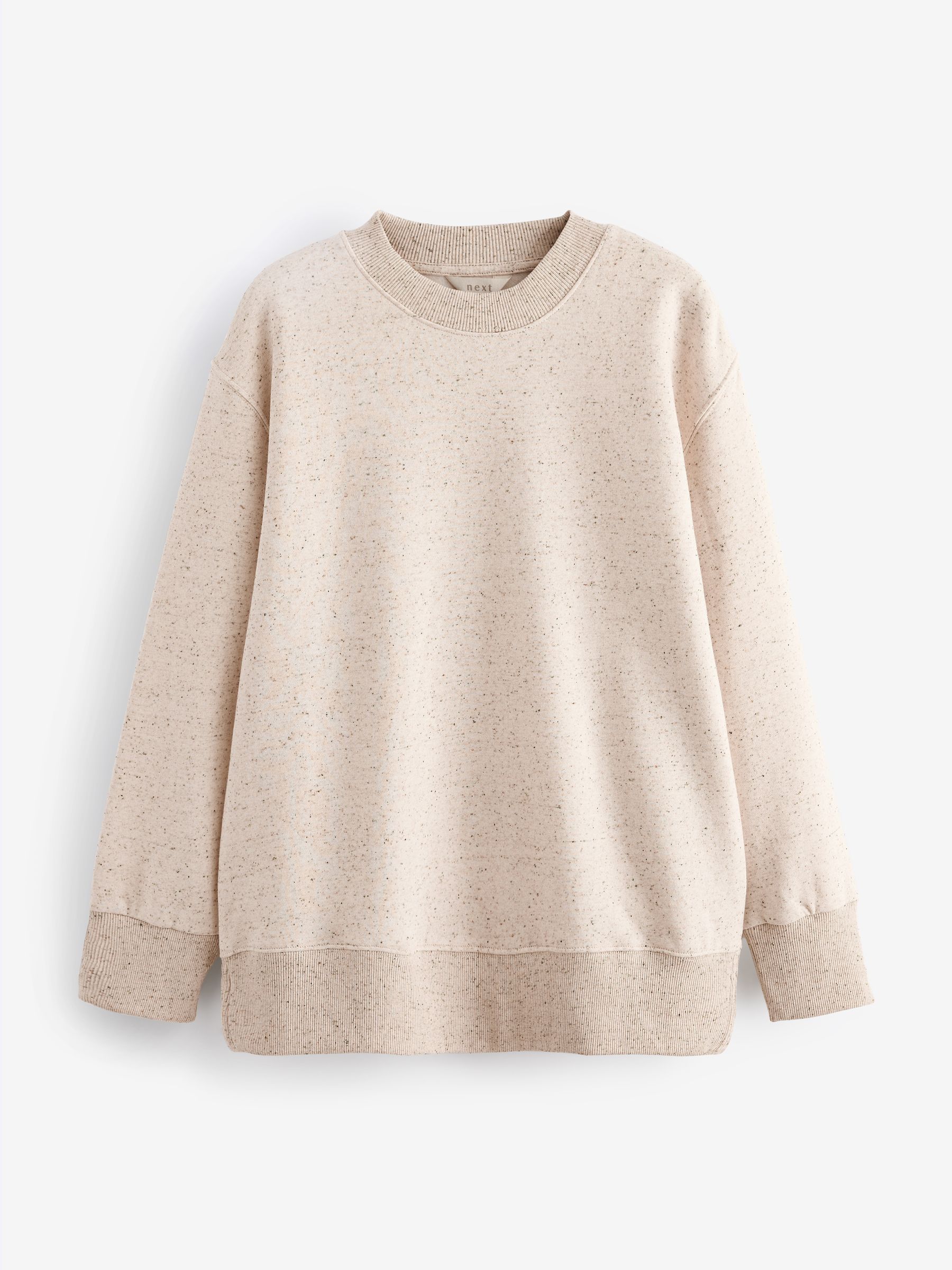 Build on your capsule wardrobe with our Essentials longline cotton sweatshirt in an oatmeal neppy design. Made from a supersoft cotton blend with ribbed cuffs and split side hem detail. This is easily the easiest piece to land in your wardrobe. Dress it up layered under a blazer with your favourite denim and trainers or grab a pair of leggings and hit the school run in style. Easy, effortless and on-trend. Longline sweatshirt Crew neck Slit detail Effortless styling Machine washable. Main 79% Cotton, 21% Recycled polyester. Rib 98% Cotton, 2% Elastane. Better Cotton – By choosing our cotton products, you’re supporting our investment in Better Cotton’s mission to help cotton farming communities survive and thrive while protecting and restoring the environment. This product is sourced via a system of mass balance and therefore may not contain Better Cotton. Learn more at www.next.co.uk/better-cotton