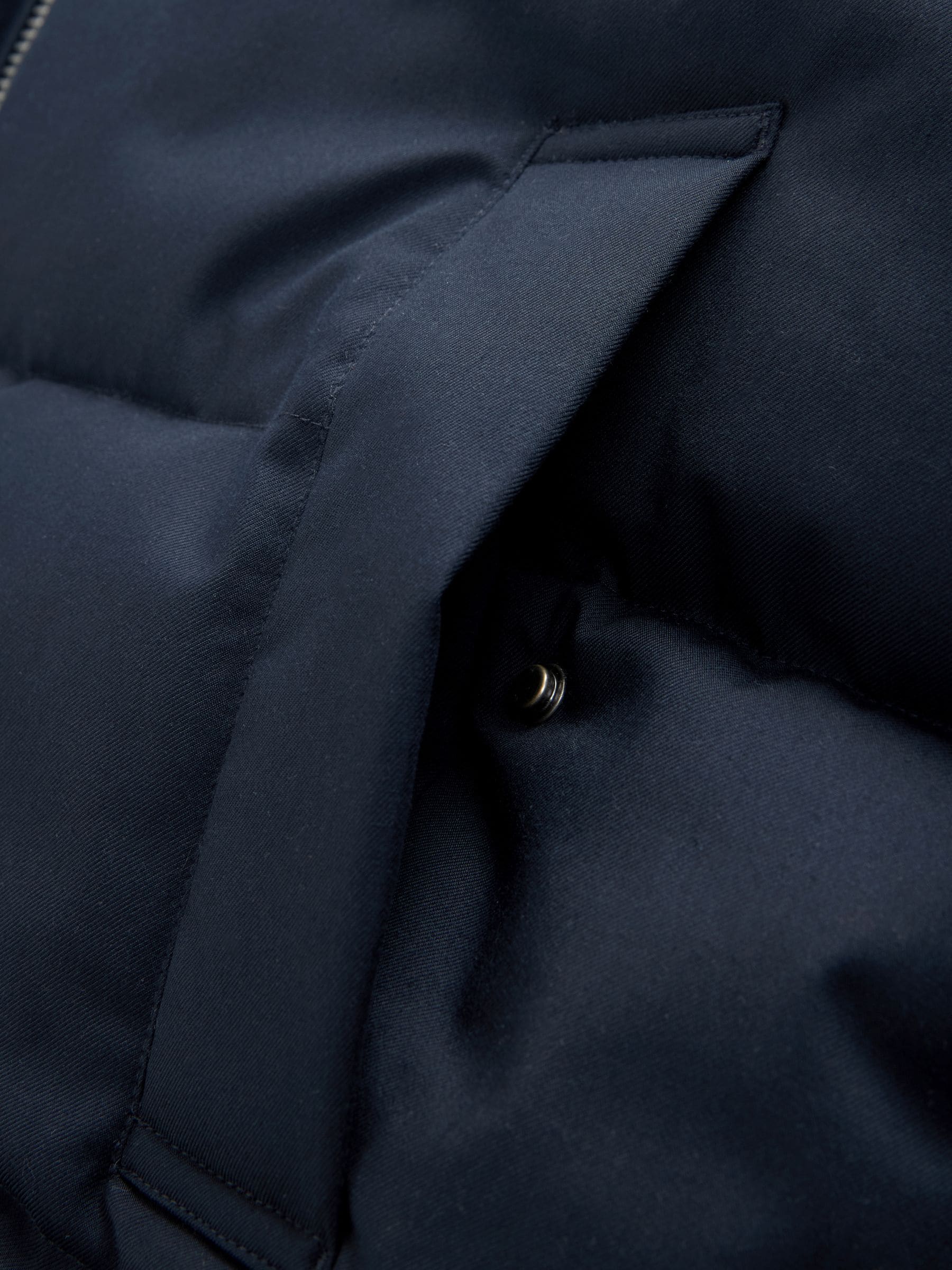 Shell 65% Recycled polyester, 35% Viscose. Main Lining 100% Recycled polyester. Rib 98% Polyester, 2% Elastane. Wadding 100% Recycled polyester.