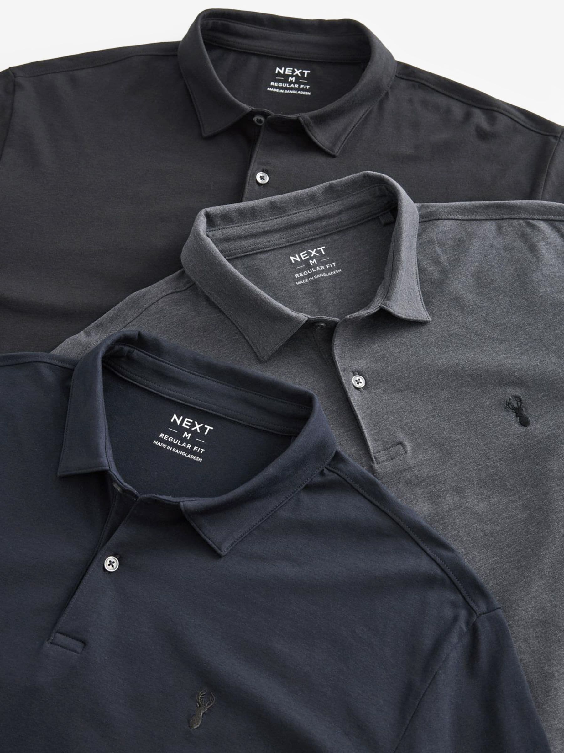 Our 3 pack of polo shirts are a smart casual wardrobe staple that will make a handy addition to your wardrobe. Made from a cotton stretch jersey fabric, these long sleeve polos feature a button placket, collar neck and embroidered logo detail to the chest. 3 pack Soft jersey fabric Long sleeve Embroidered logo to the chest Machine washable. Polo Shirt part 1 of 3 pack and Polo Shirt Part 2 of 3 pack 95% Cotton, 5% Elastane. Polo Shirt part 3 of 3 pack 57% Cotton, 38% Polyester, 5% Elastane. Better Cotton – By choosing our cotton products, you’re supporting our investment in Better Cotton’s mission to help cotton farming communities survive and thrive while protecting and restoring the environment. This product is sourced via a system of mass balance and therefore may not contain Better Cotton. Learn more at www.next.co.uk/better-cotton