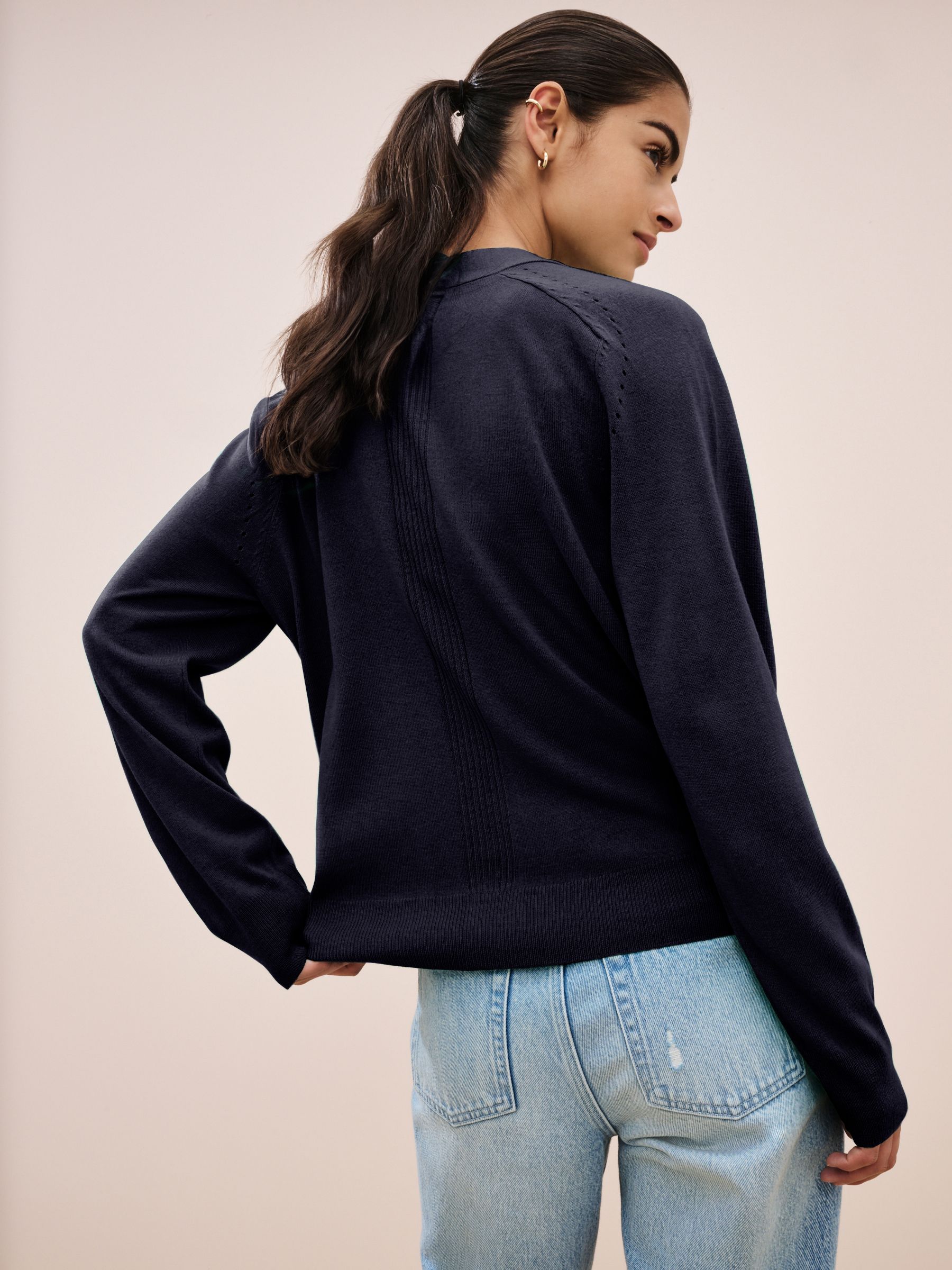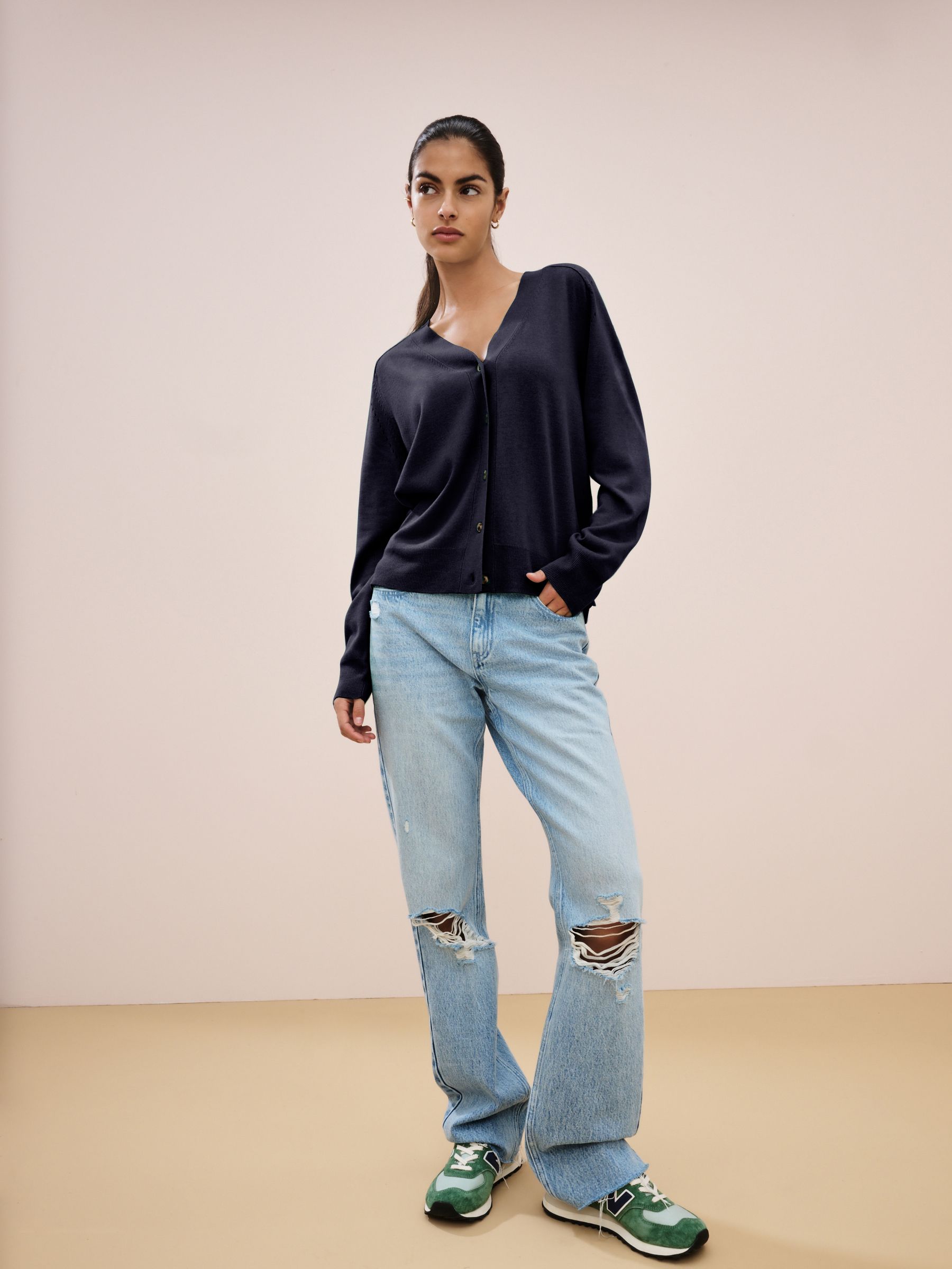 This timeless lightweight cardigan has a simple knitted design with a button-up fastening, a V-Neck collar and ribbed trims. Regular fit Knitted fabric V-Neck Button-up fastening Machine washable. 65% Polyester, 35% LENZING™ ECOVERO™ Viscose. Contains LENZING™ ECOVERO™ Viscose a traceable fibre derived from responsibly sourced wood and manufactured using less energy and water than conventional viscose. The exact % of LENZING™ ECOVERO™ Viscose is shown in the product composition above. LENZING™ and ECOVERO™ are trademarks of Lenzing AG www.ecovero.com