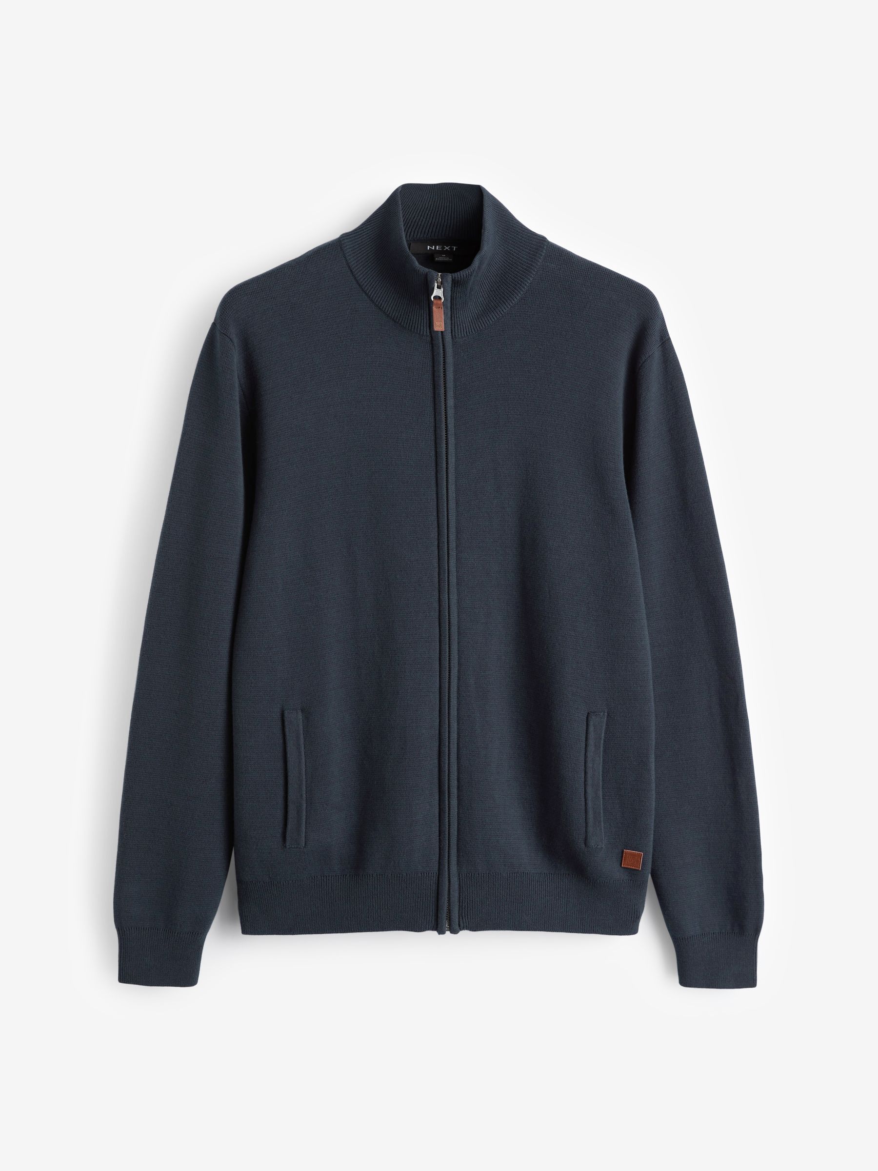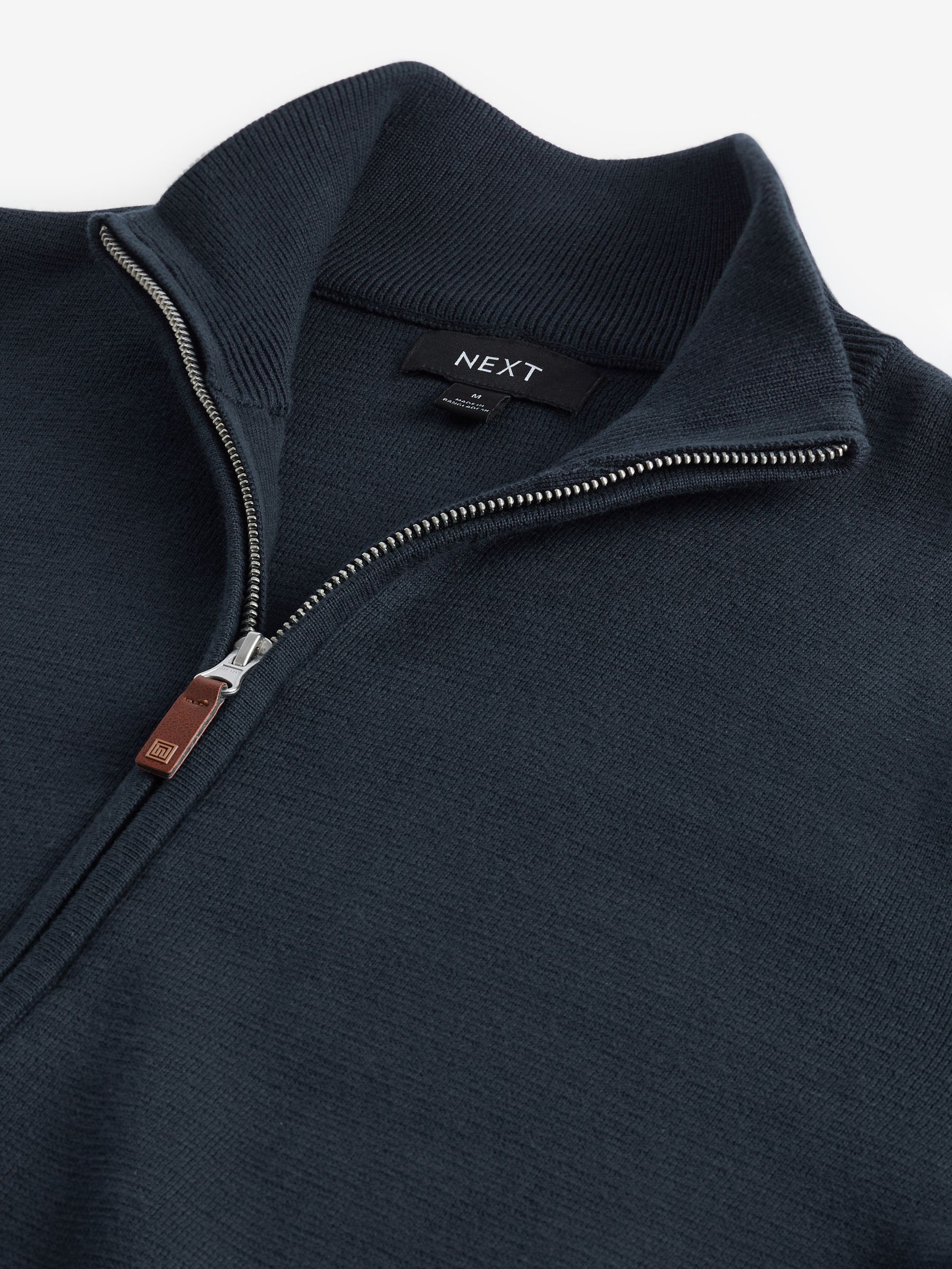 Adding a touch of luxury to your cold-weather wardrobe, this premium zip-through jumper in navy blue is made from soft cotton and comes in this season’s colour palette. Simply style with jeans for a more casual look, or try trousers for a smarter approach to your attire. 100% Cotton Zip-through fastening Branded detailing at the hem Ribbed hems 100% Cotton. Better Cotton – By choosing our cotton products, you’re supporting our investment in Better Cotton’s mission to help cotton farming communities survive and thrive while protecting and restoring the environment. This product is sourced via a system of mass balance and therefore may not contain Better Cotton. Learn more at www.next.co.uk/better-cotton