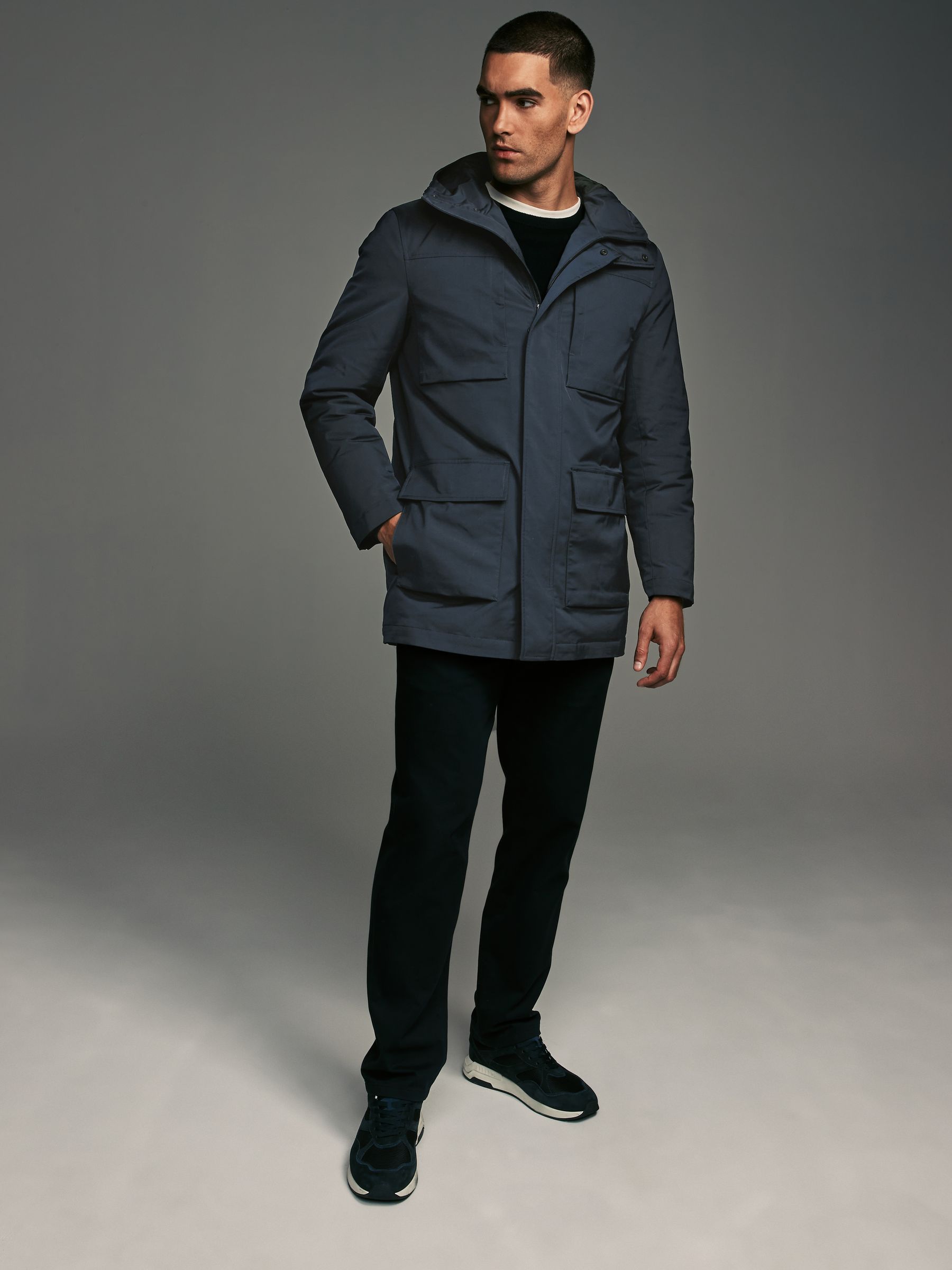This timeless coat has a military-inspired design, featuring a durable technical fabric with a shower resistant finish, a zippered fastening with a press-stud placket and four large patch pockets to the front. A padded lining keeps you warm and comfortable, finished with an adjustable hood.
