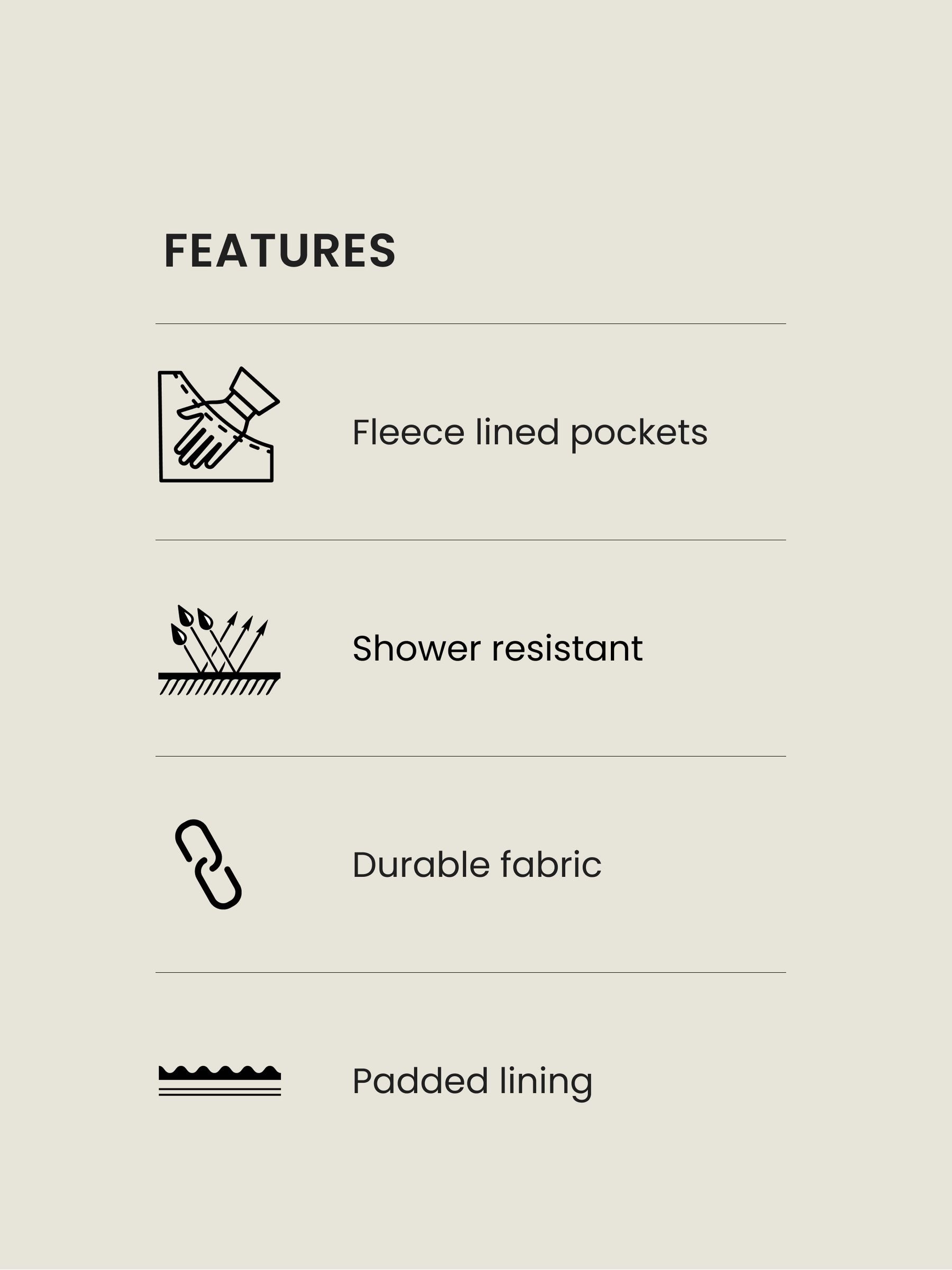 Main 100% Polyester. Lining 100% Polyester. Wadding 100% Polyester.
