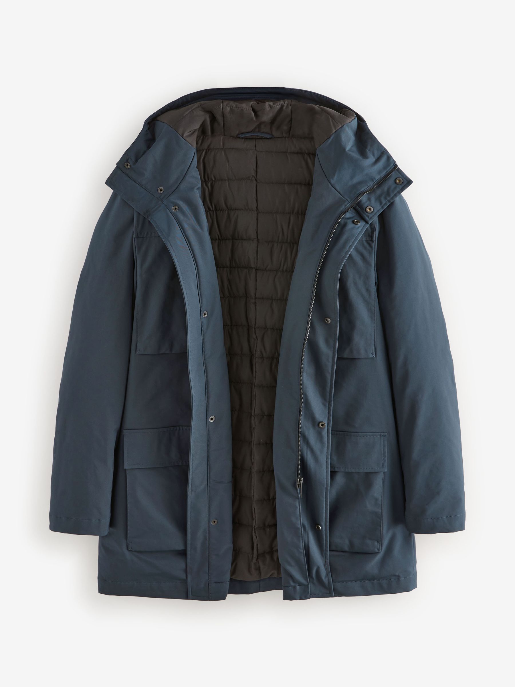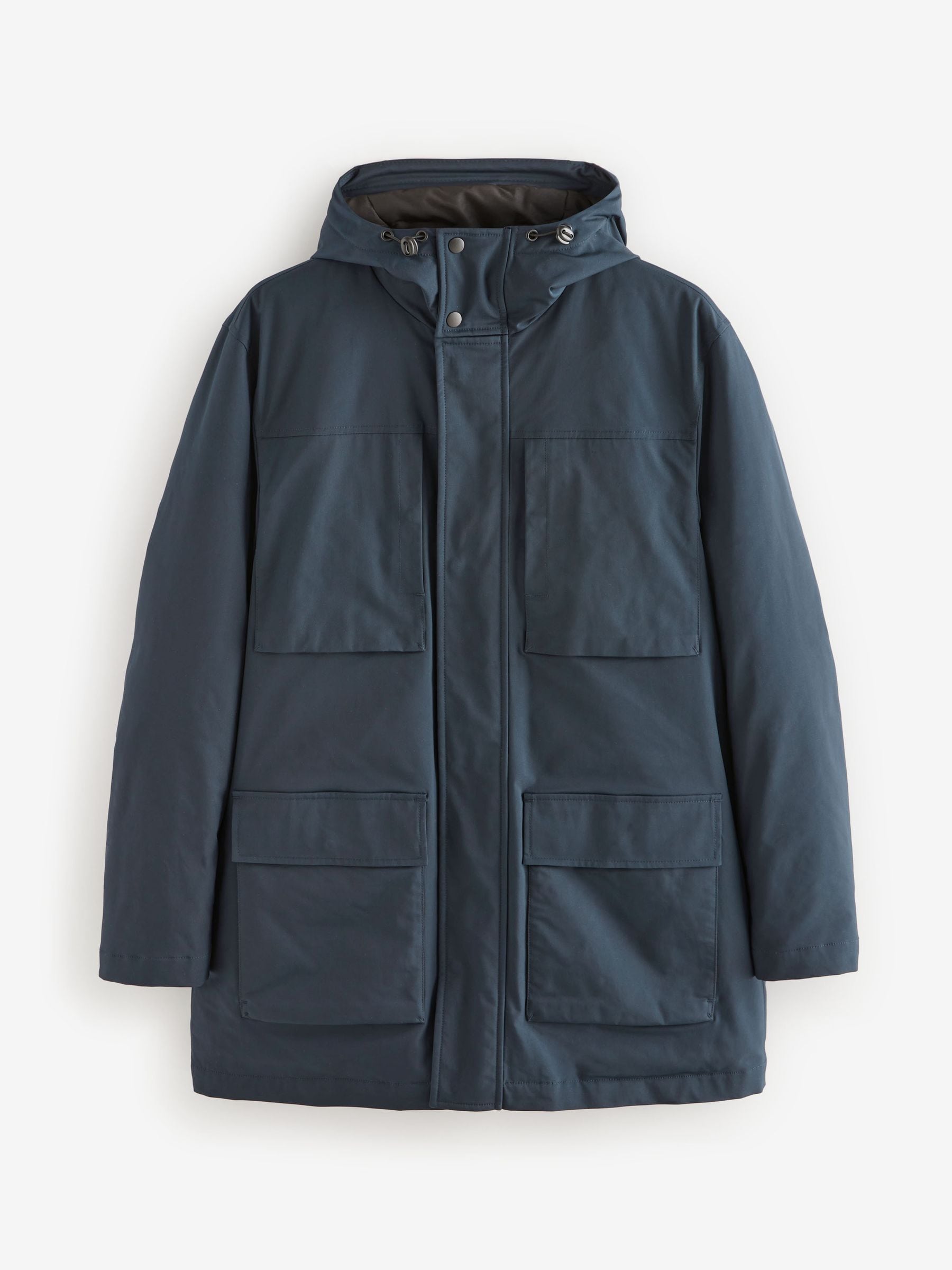 This timeless coat has a military-inspired design, featuring a durable technical fabric with a shower resistant finish, a zippered fastening with a press-stud placket and four large patch pockets to the front. A padded lining keeps you warm and comfortable, finished with an adjustable hood. Regular fit Technical fabric Shower resistant Padded lining Zip fastening Press-stud placket Four large front pockets Adjustable hood Dry clean only. Main 100% Polyester. Lining 100% Polyester. Wadding 100% Polyester.