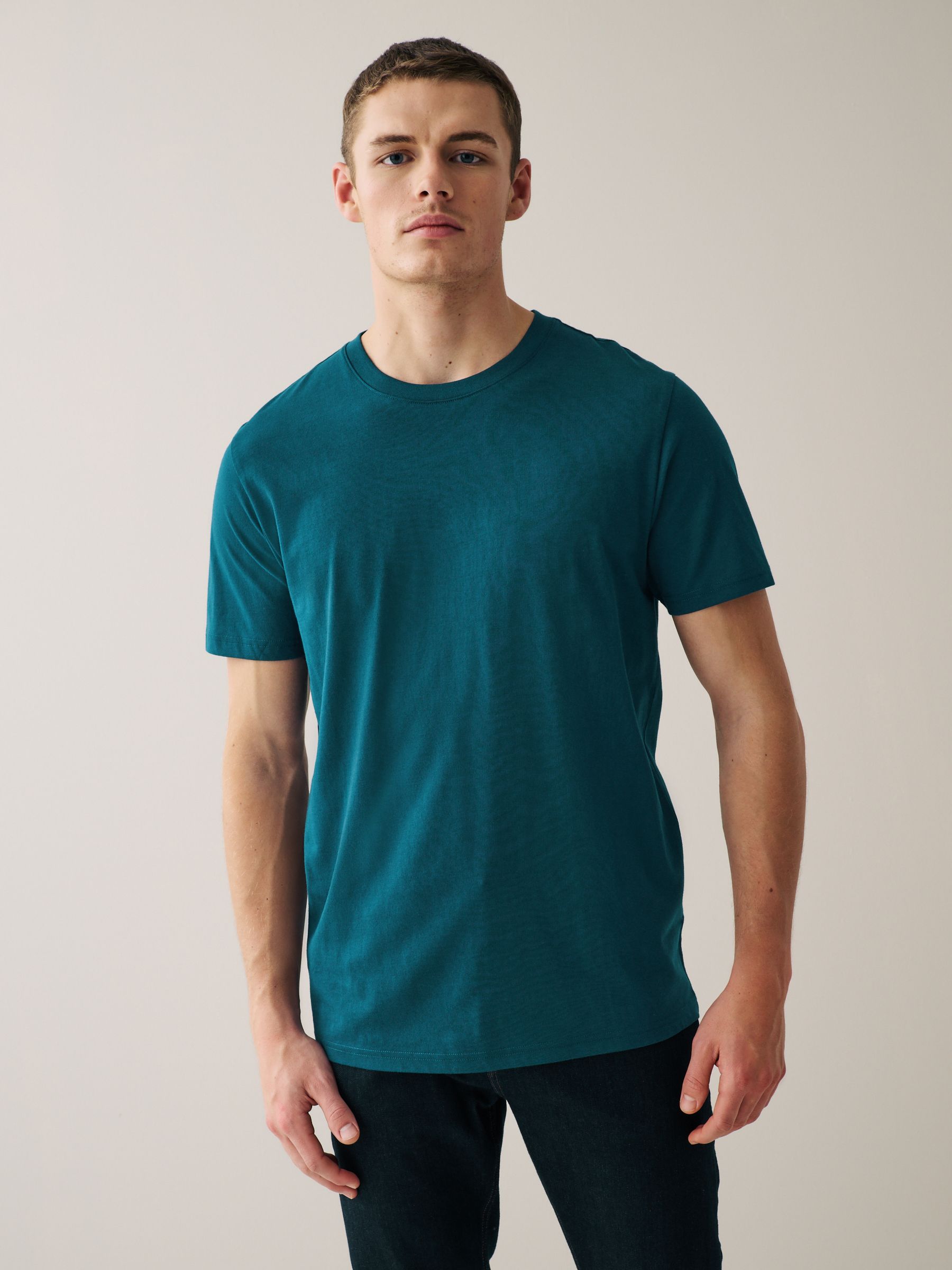 Our regular fit T-Shirt is easy to wear and fits straight down the body. Stock up on everyday essentials with our 6 pack of men’s Navy/ Teal/ White/ Black/ Green/ Burgundy T-Shirts. Cut in a regular fit with a crew neckline and short sleeves, these pure cotton T-Shirts are presented in an array of colours and are effortlessly easy to style. Our Essential T-Shirt will provide you with a great fit even after they have been washed as they have been pre-laundered. Pack of 6 T-Shirts Regular fit Short sleeves Lightweight fabric – 160gsm 6 x T-shirt 100% Cotton. Made with U.S. Cotton Trust Protocol verified origin. A new standard in sustainble cotton production. The U.S. Cotton Trust Protocol assures more sustianable cotton farming, including fair working conditions and best practices for water and pesticide usage, soil diversity and greenhouse gas emmisions.