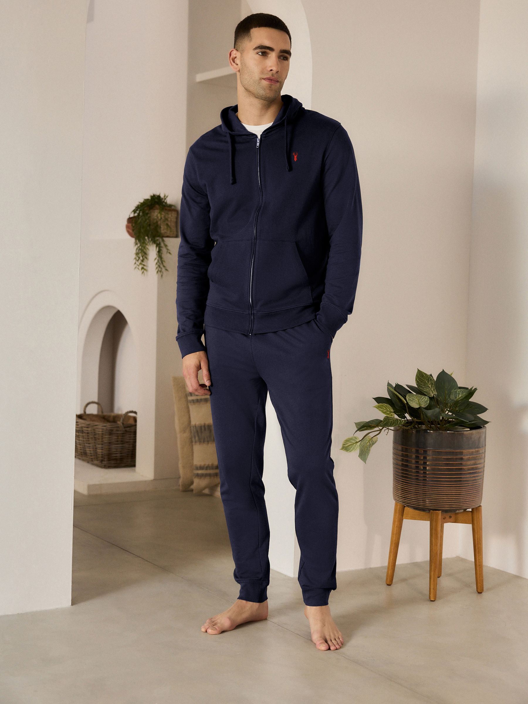 Stay comfortable and stylish with our lightweight loungewear joggers. This two-pack is crafted in a midweight loopback fabric with an elasticated waist and cool embroidered stag detail.
