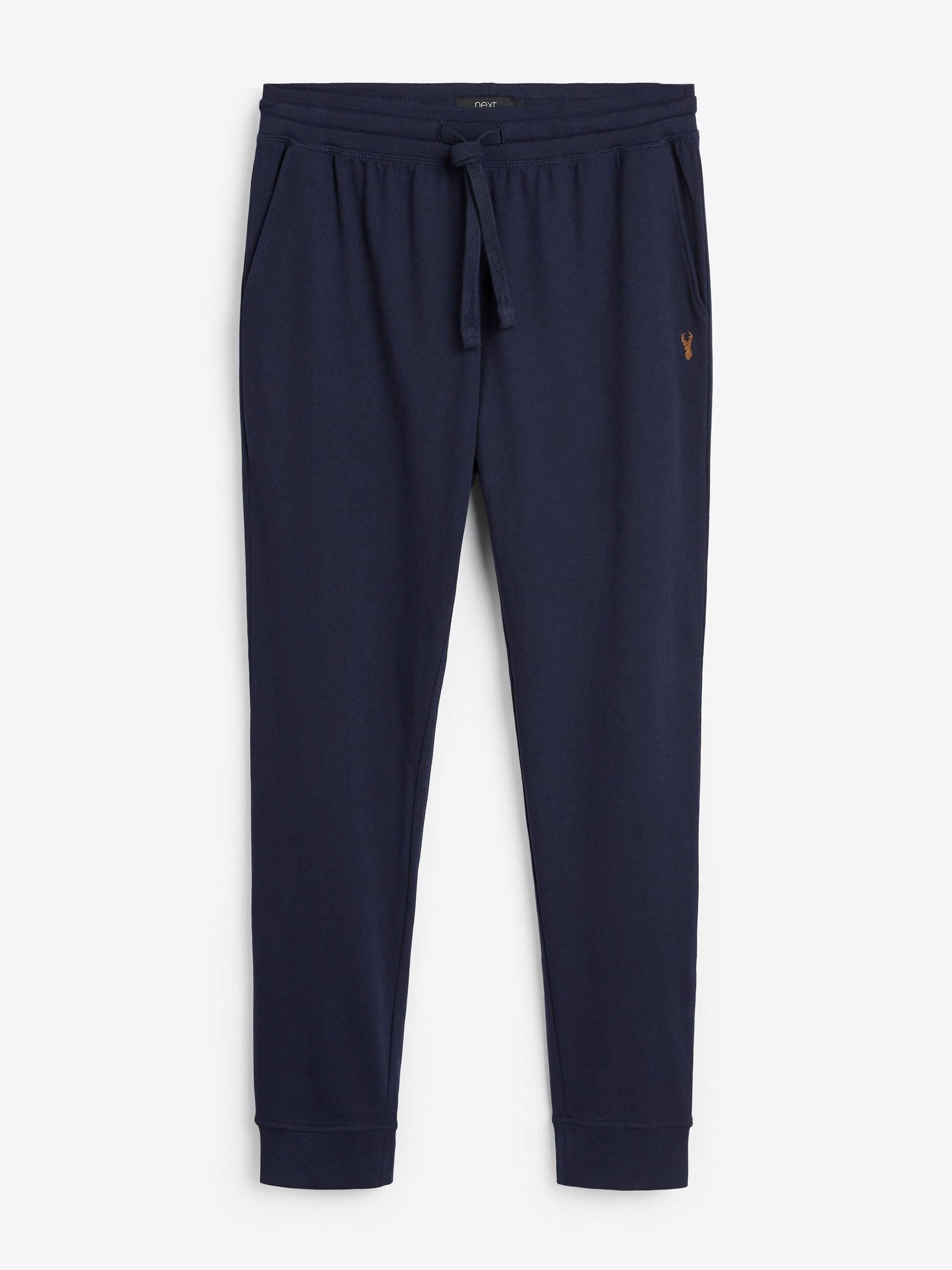 Stay comfortable and stylish with our lightweight loungewear joggers. This two-pack is crafted in a midweight loopback fabric with an elasticated waist and cool embroidered stag detail. Whether you’re having a lazy day or home or running some last-minute errands, these cuffed joggers have your laid-back style sorted. 100% Cotton. Warning: Keep away from fire and flames., Better Cotton – By choosing our cotton products, you’re supporting our investment in Better Cotton’s mission to help cotton farming communities survive and thrive while protecting and restoring the environment. This product is sourced via a system of mass balance and therefore may not contain Better Cotton. Learn more at www.next.co.uk/better-cotton