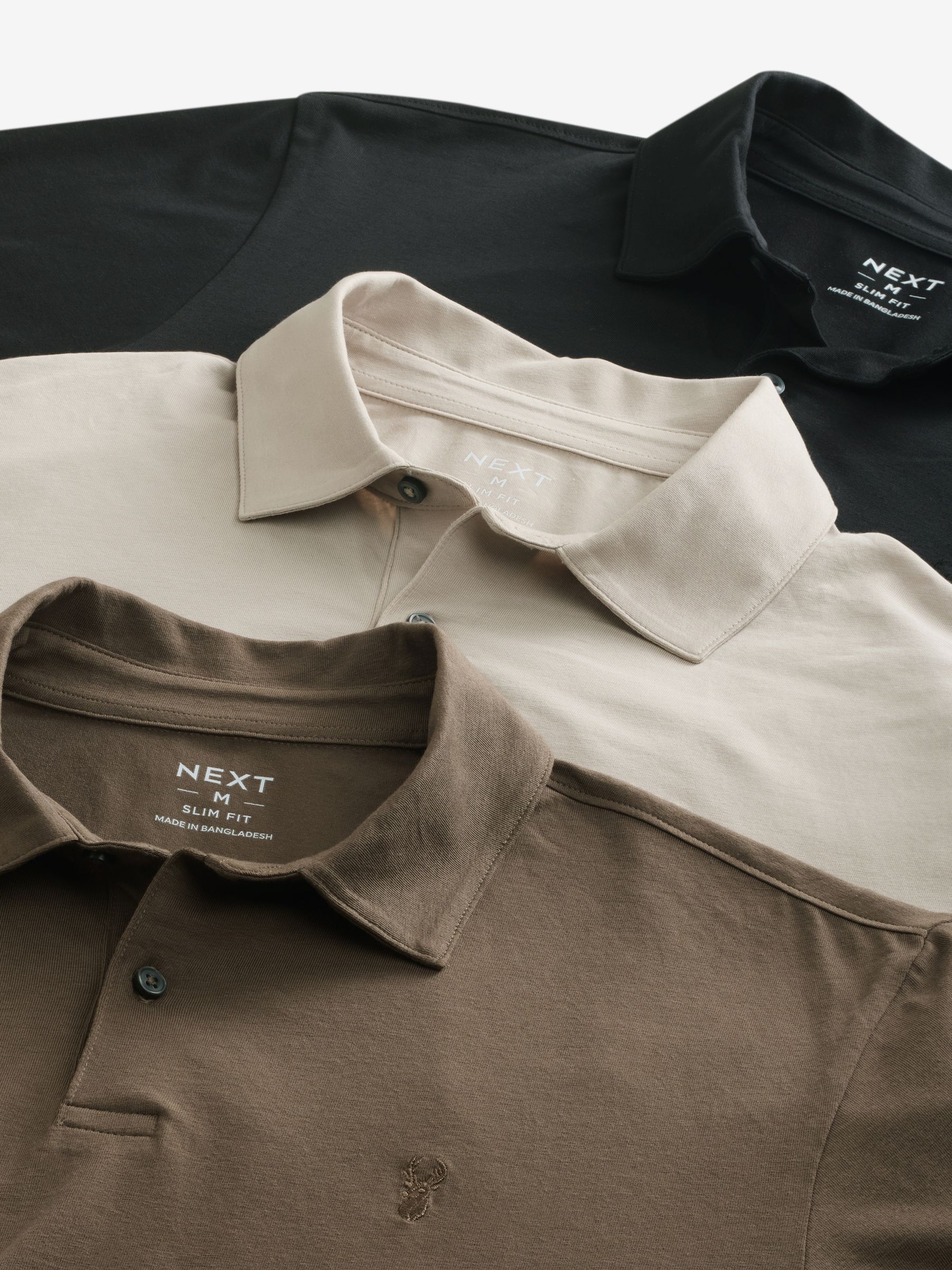 Neutral Slim Fit Short Sleeve Jersey Polo Shirts 3 Pack