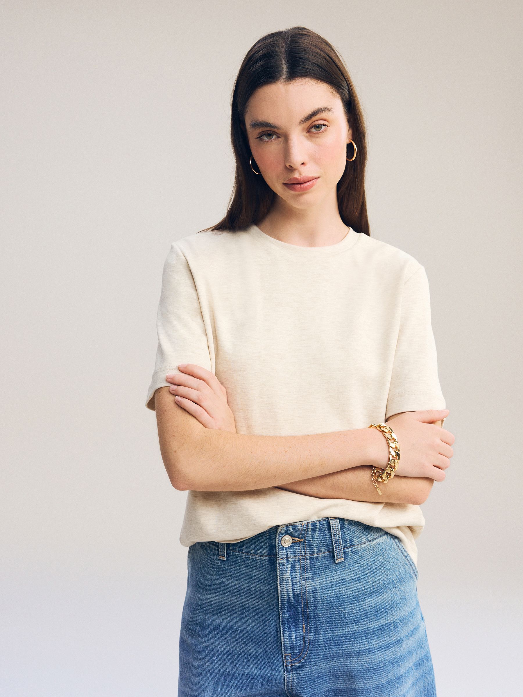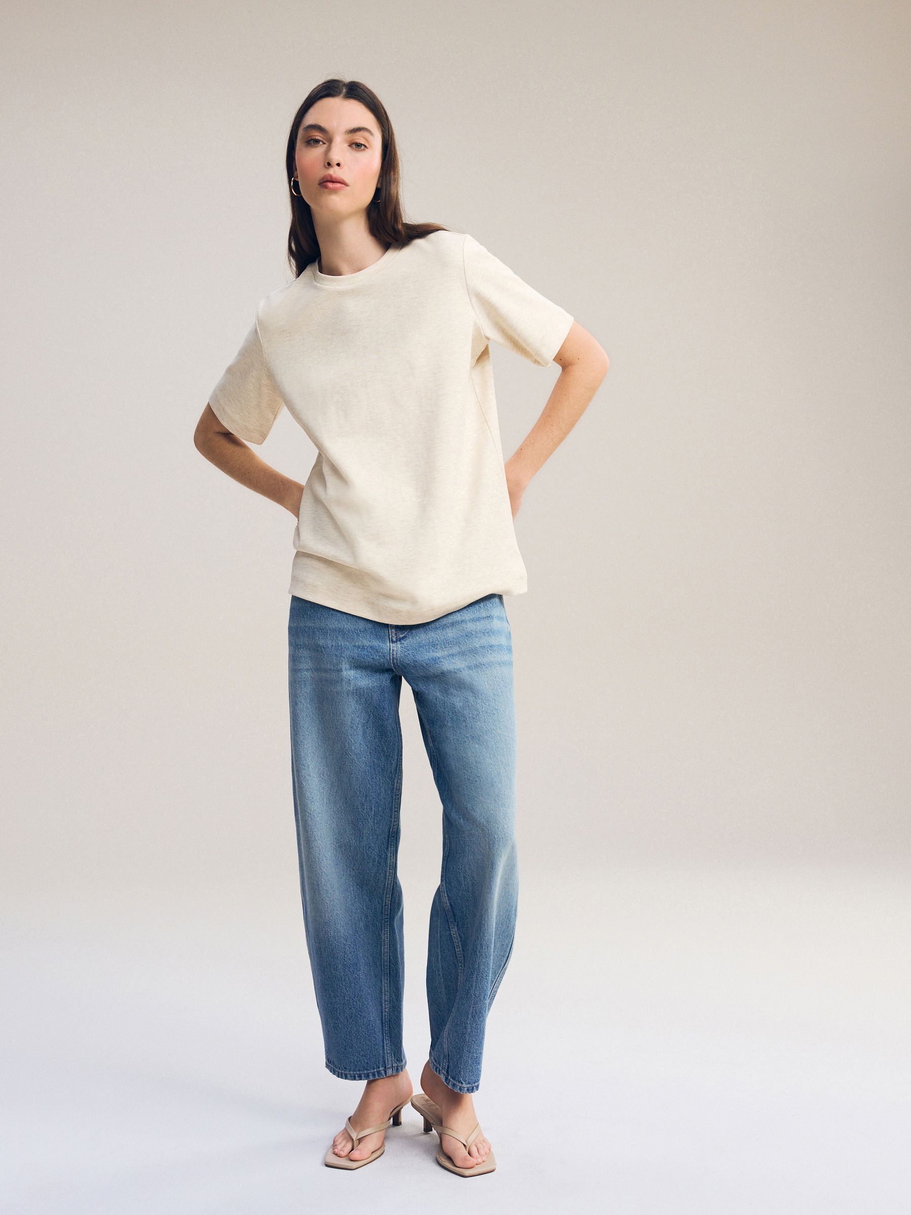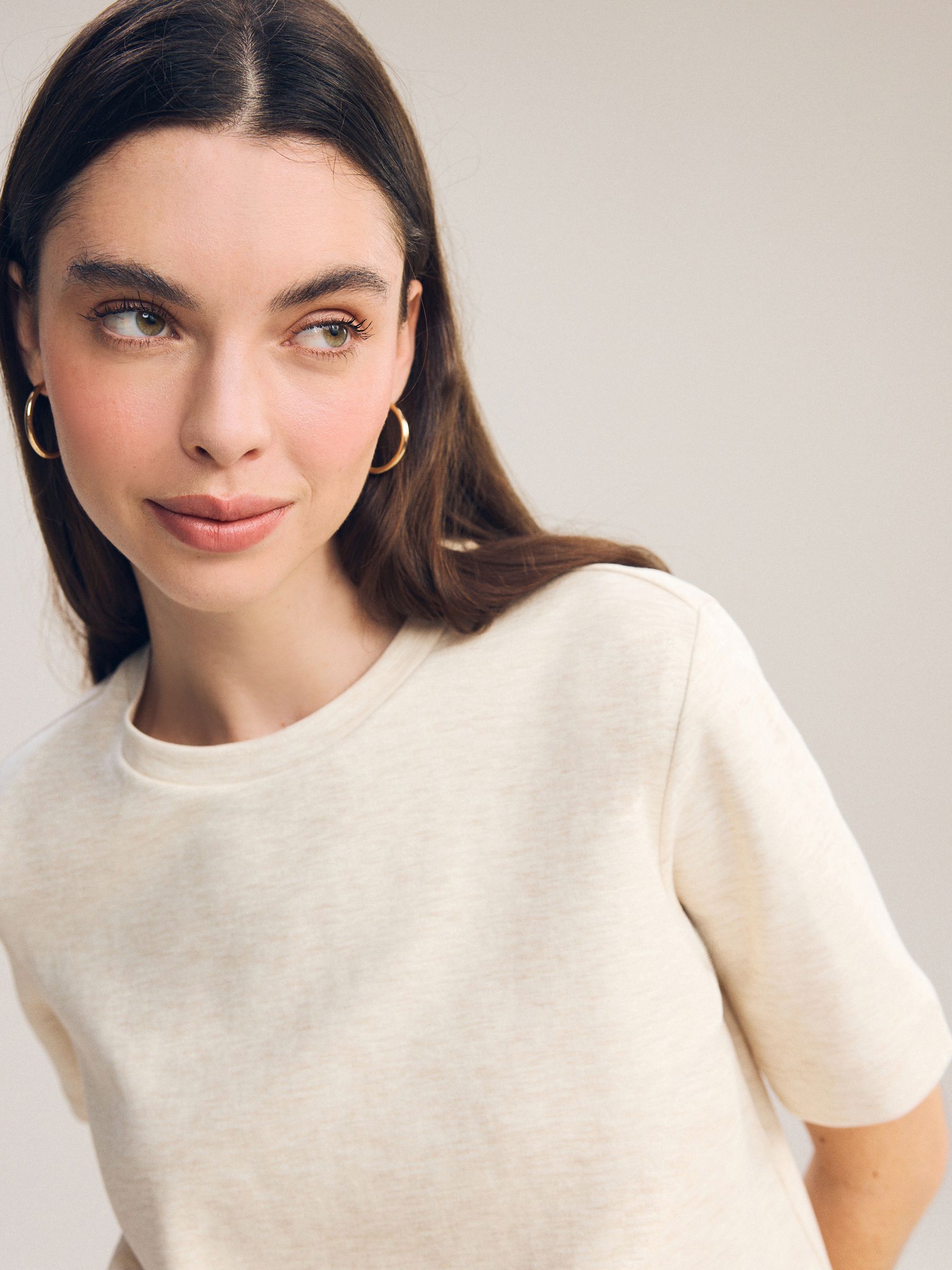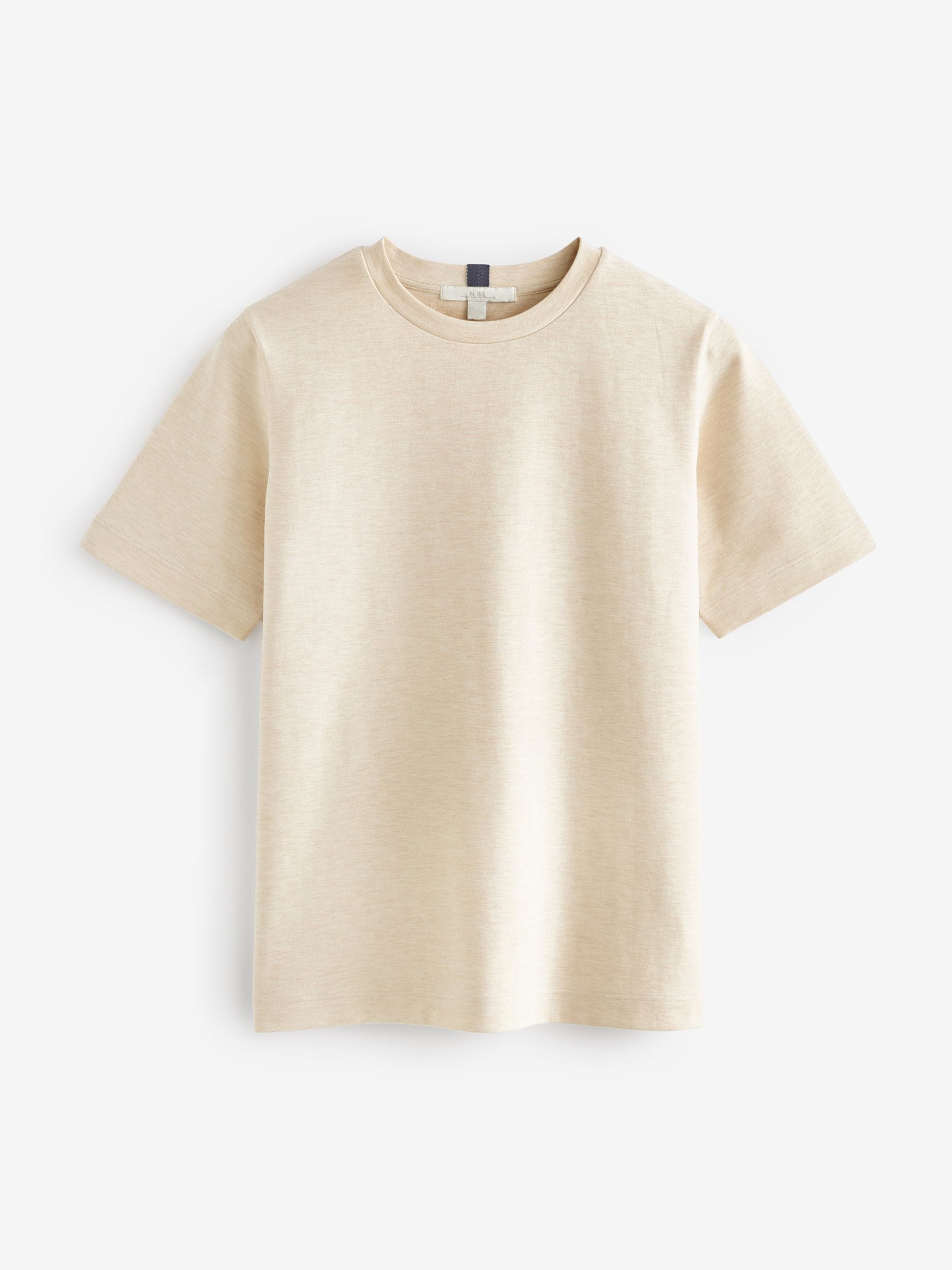 This short sleeve t-shirt is made from pure cotton in a heavy weight, featuring an oatmeal cream hue and a ribbed crewneck collar. Perfect for layering with a casual or smart casual outfit. Regular fit 100% cotton Heavyweight Ribbed crewneck collar Machine washable. 92% Cotton, 5% Elastane, 3% Acrylic. Items with the curve logo are available in sizes 18 and above., Better Cotton – By choosing our cotton products, you’re supporting our investment in Better Cotton’s mission to help cotton farming communities survive and thrive while protecting and restoring the environment. This product is sourced via a system of mass balance and therefore may not contain Better Cotton. Learn more at www.next.co.uk/better-cotton