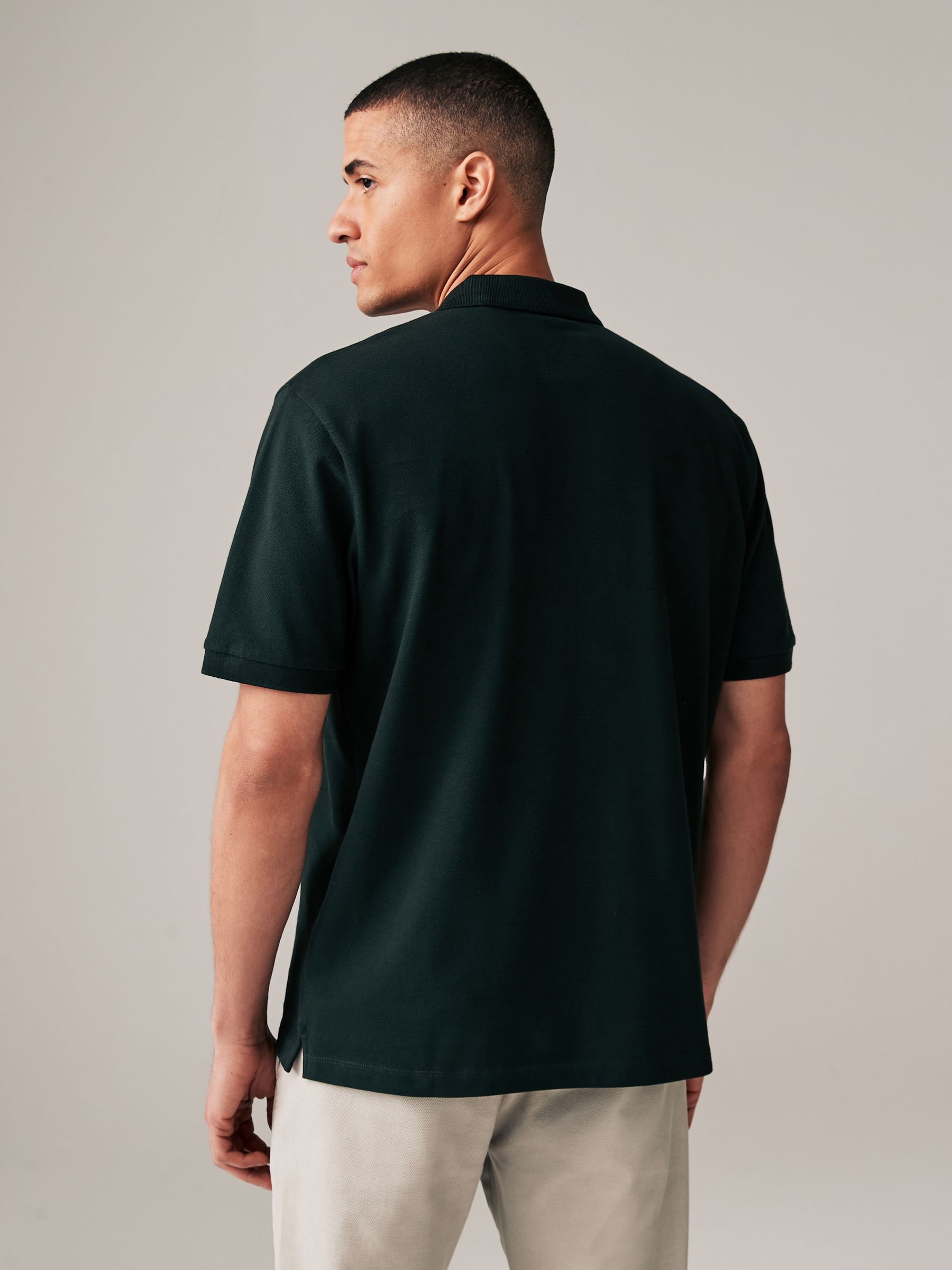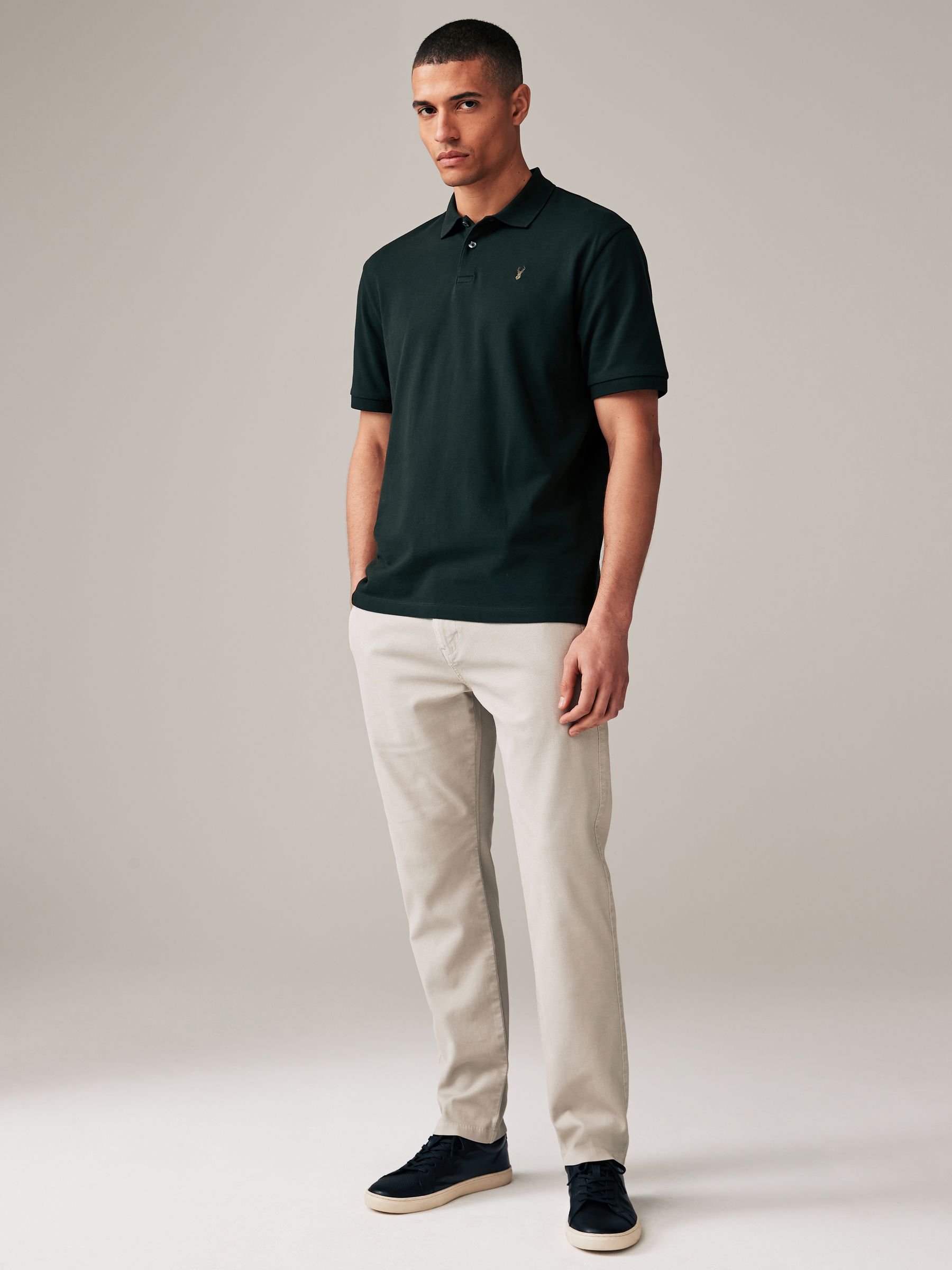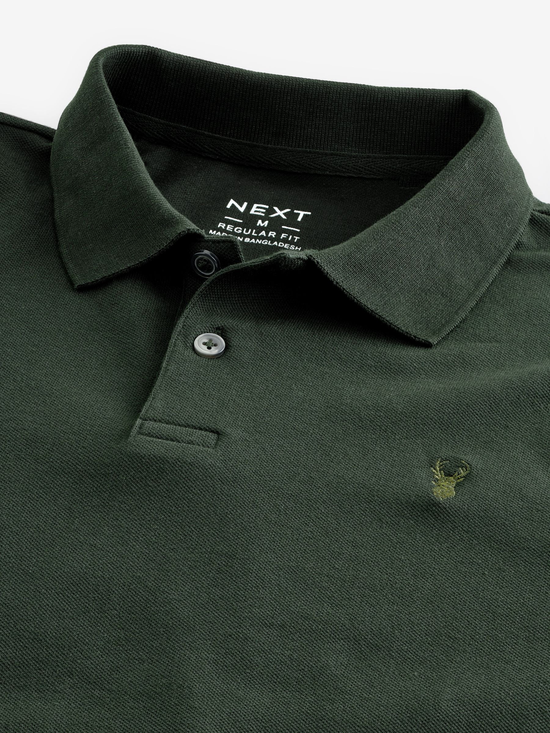 A wardrobe staple, our polo shirt is made from soft cotton pique for your comfort throughout the day. This classic silhouette can be dressed up or down to suit the occasion and boasts a traditional button-fastened placket on the neck, ribbed collar and cuffs and a stag embroidered detail on the chest. Smart casual staple Soft construction Dual-button neck Pointed collar Short sleeve Machine washable. 95% Cotton, 5% Elastane. Better Cotton – By choosing our cotton products, you’re supporting our investment in Better Cotton’s mission to help cotton farming communities survive and thrive while protecting and restoring the environment. This product is sourced via a system of mass balance and therefore may not contain Better Cotton. Learn more at www.next.co.uk/better-cotton