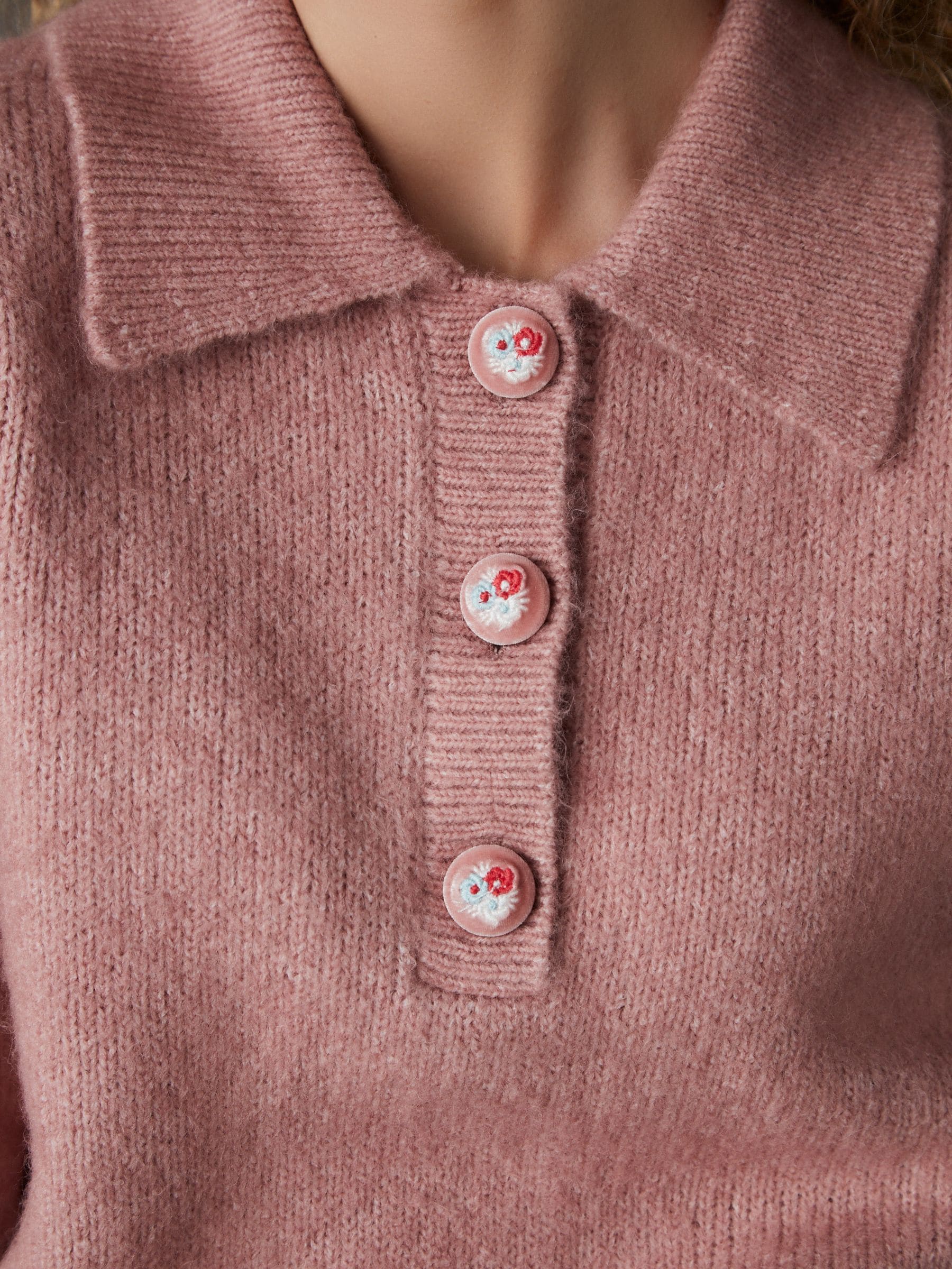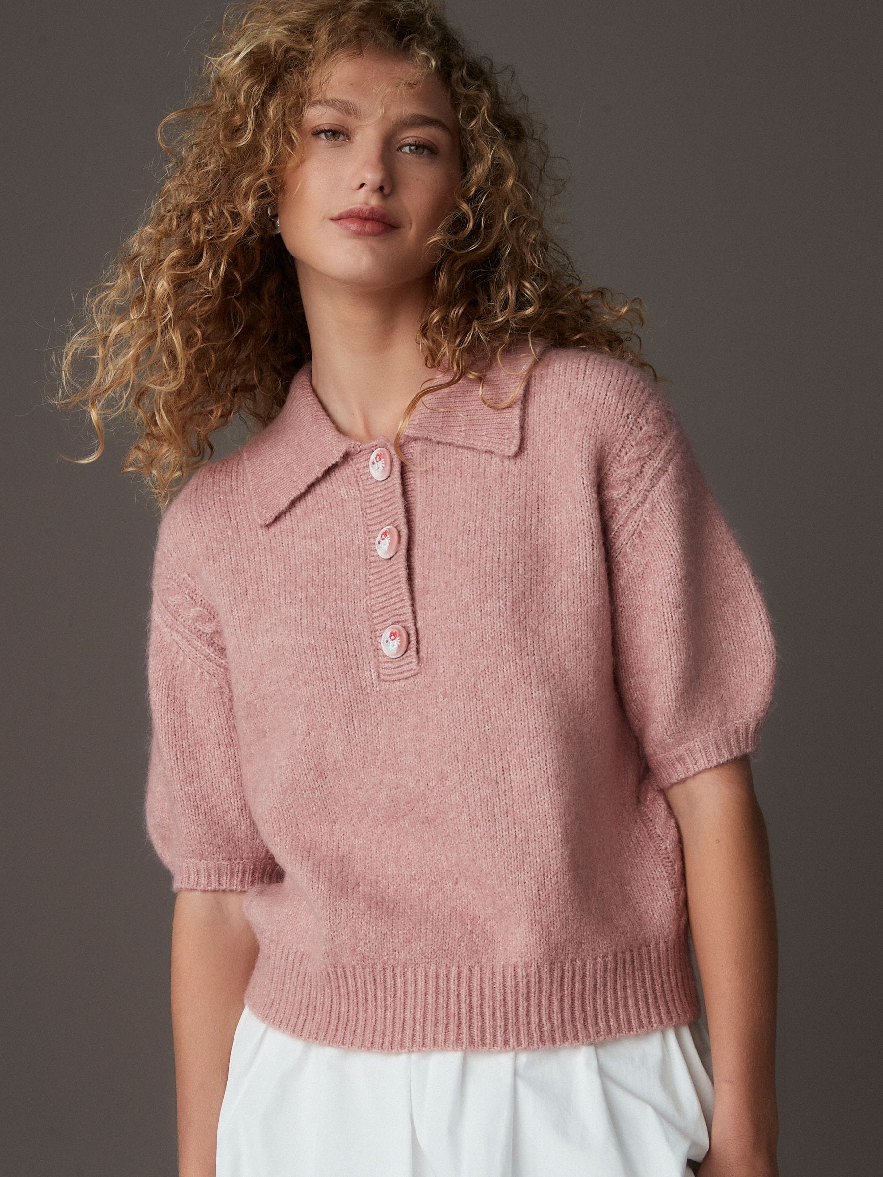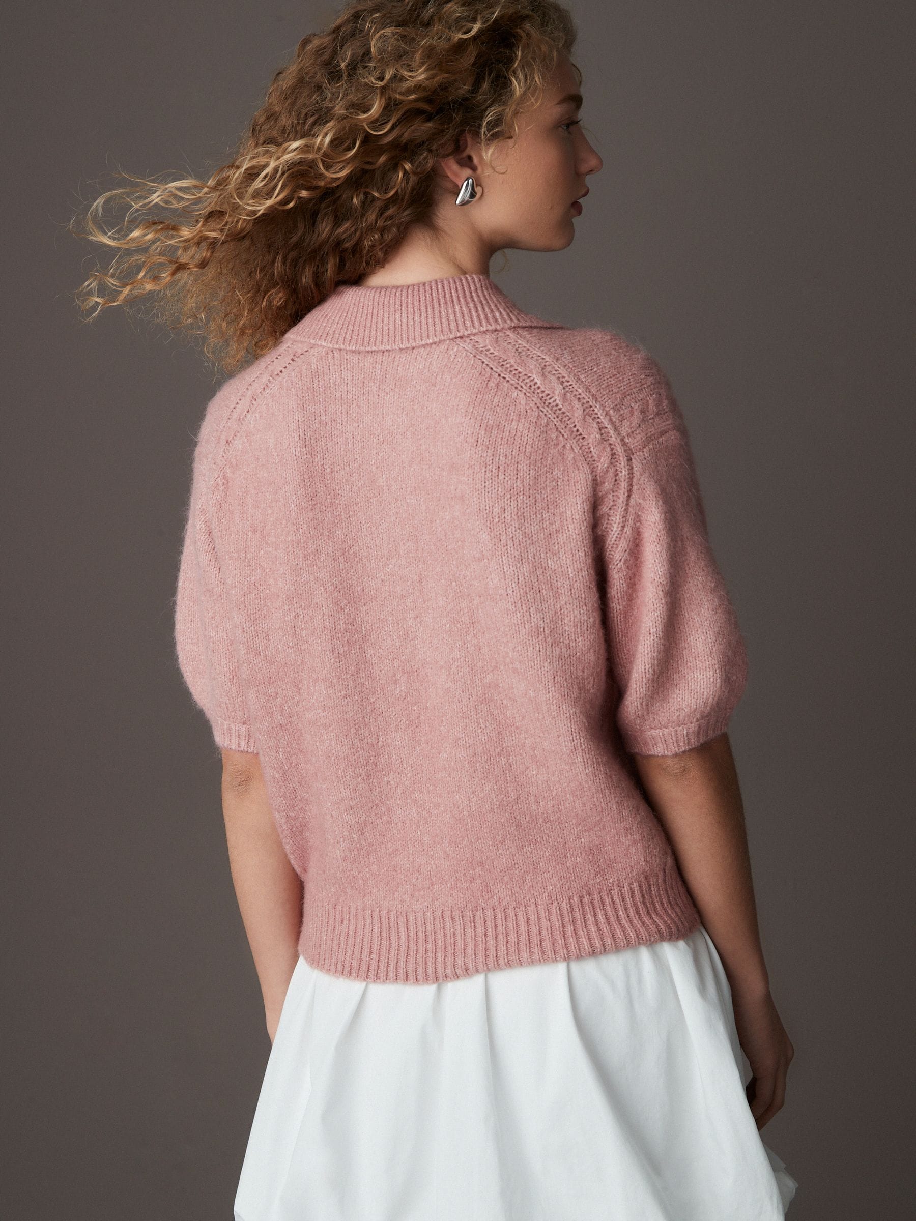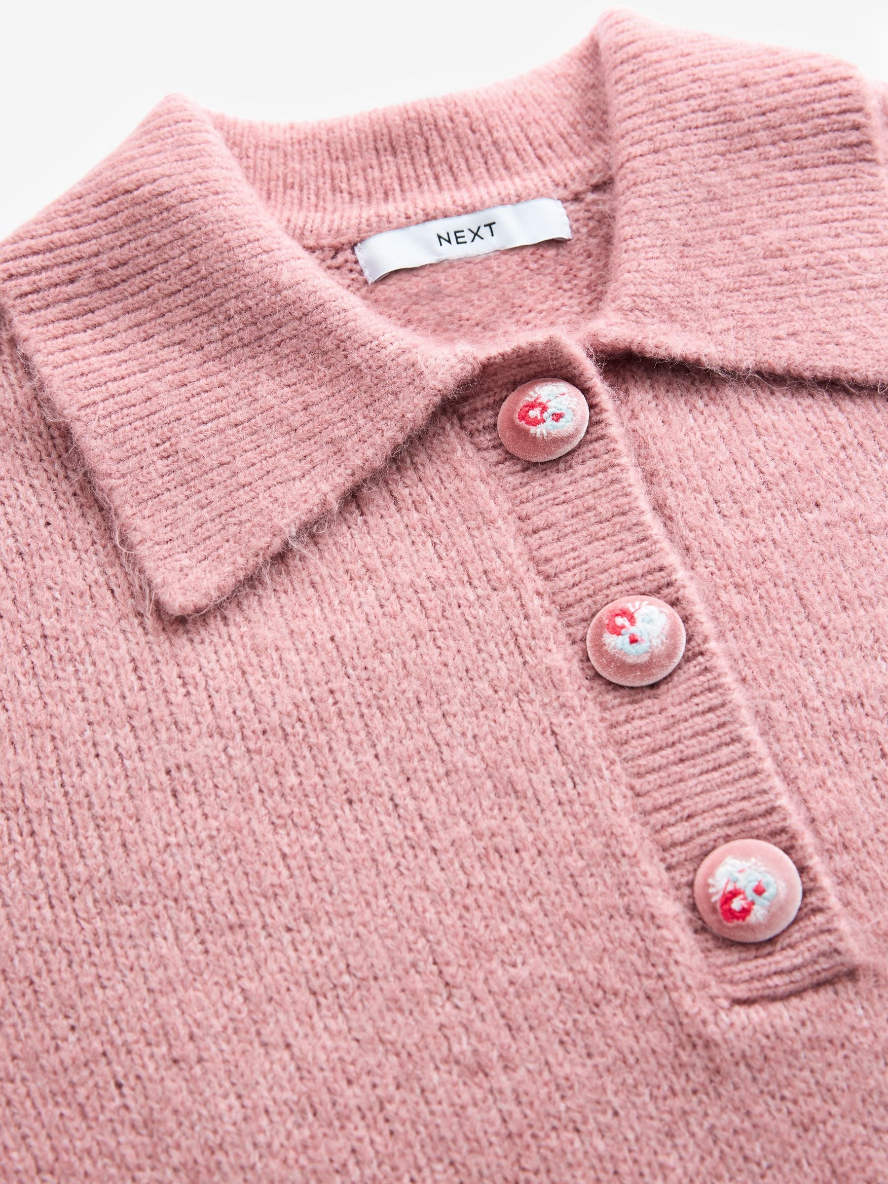 Pink Blush Soft Touch Short Sleeve Knitted Polo Jumper with Wool