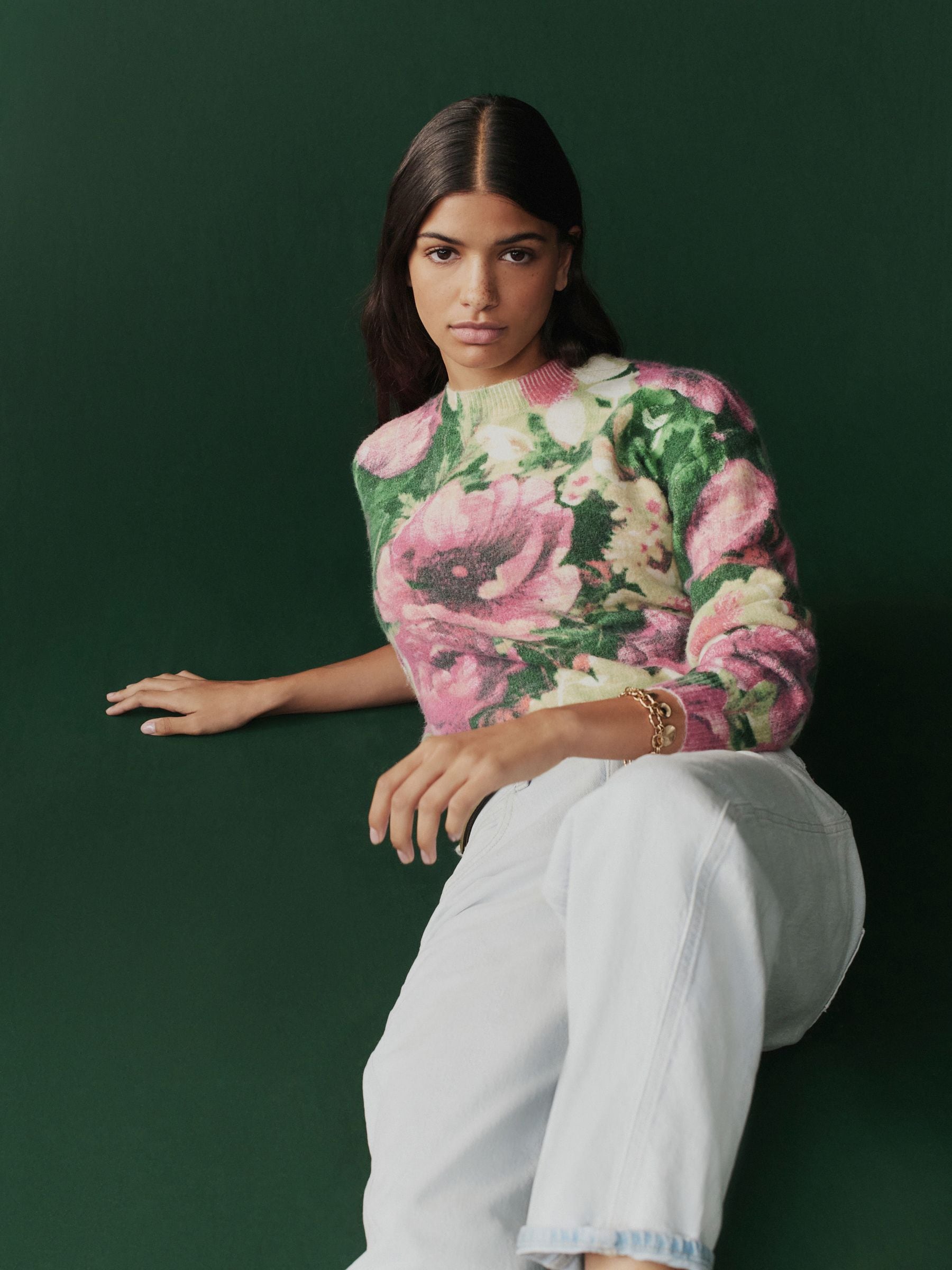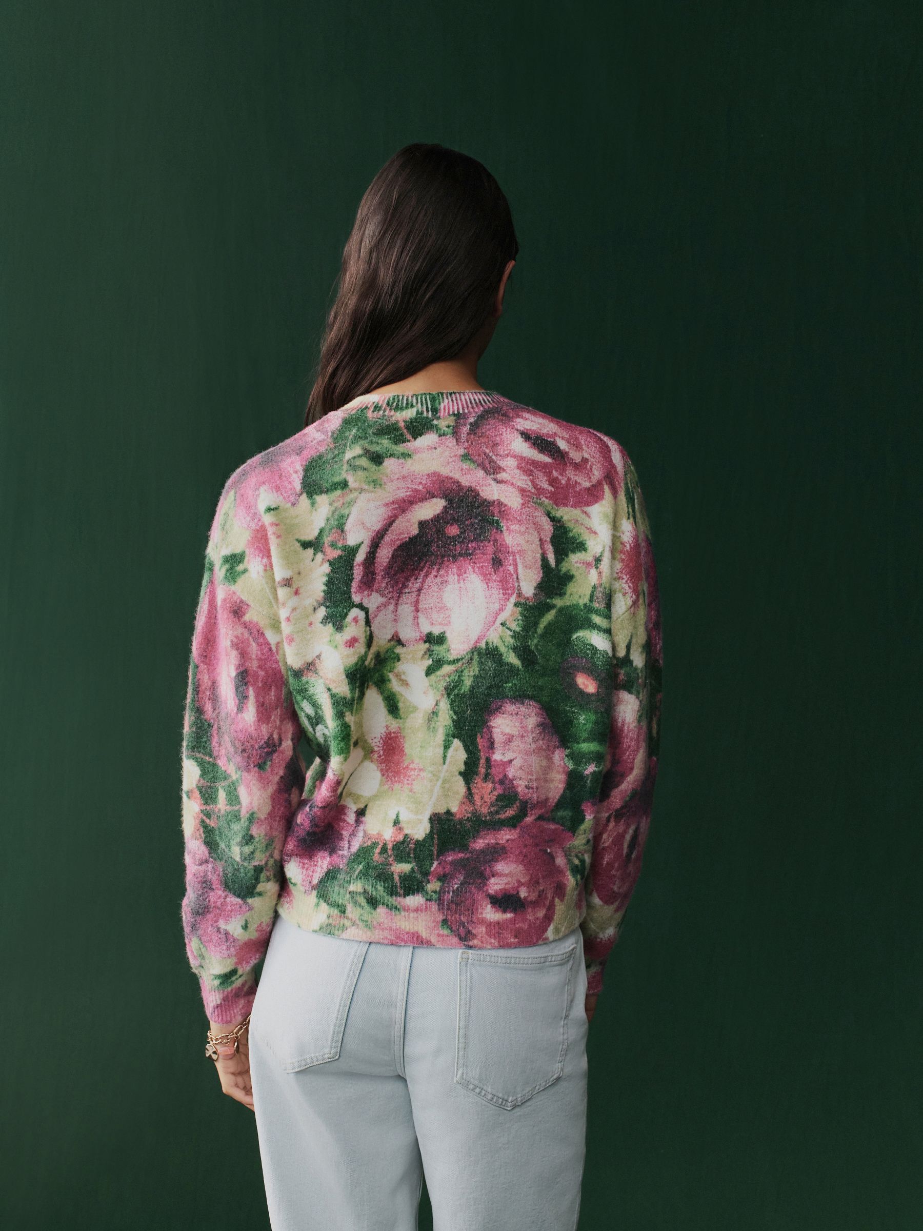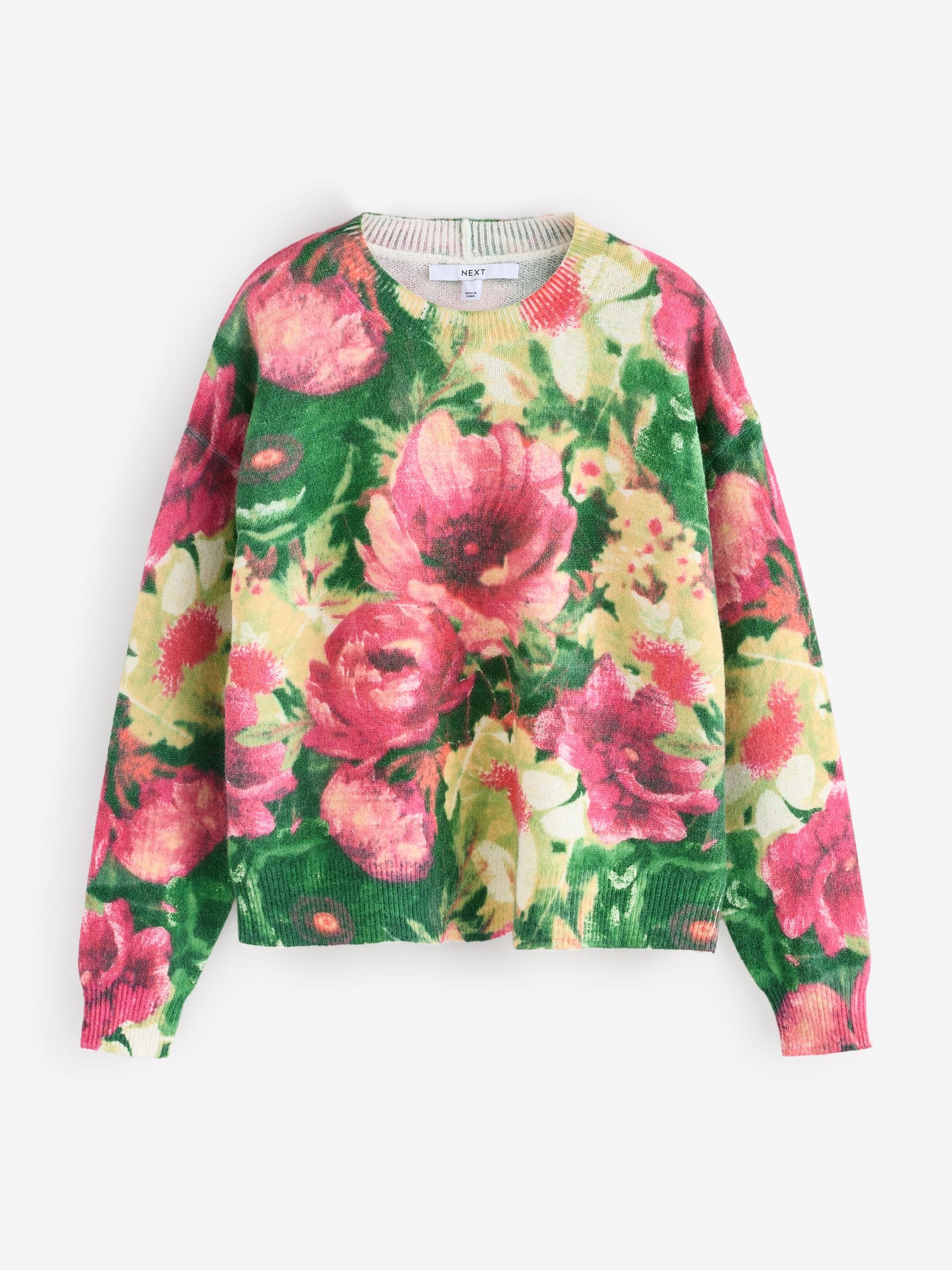 This versatile crewneck jumper is made from a soft and cosy jersey fabric, with a bright and eye-catching floral print, featuring long sleeves and ribbed hems. Regular fit Crewneck collar Jersey fabric Long sleeves Ribbed hems Machine washable. 38% Acrylic, 32% Polyester, 30% Nylon.