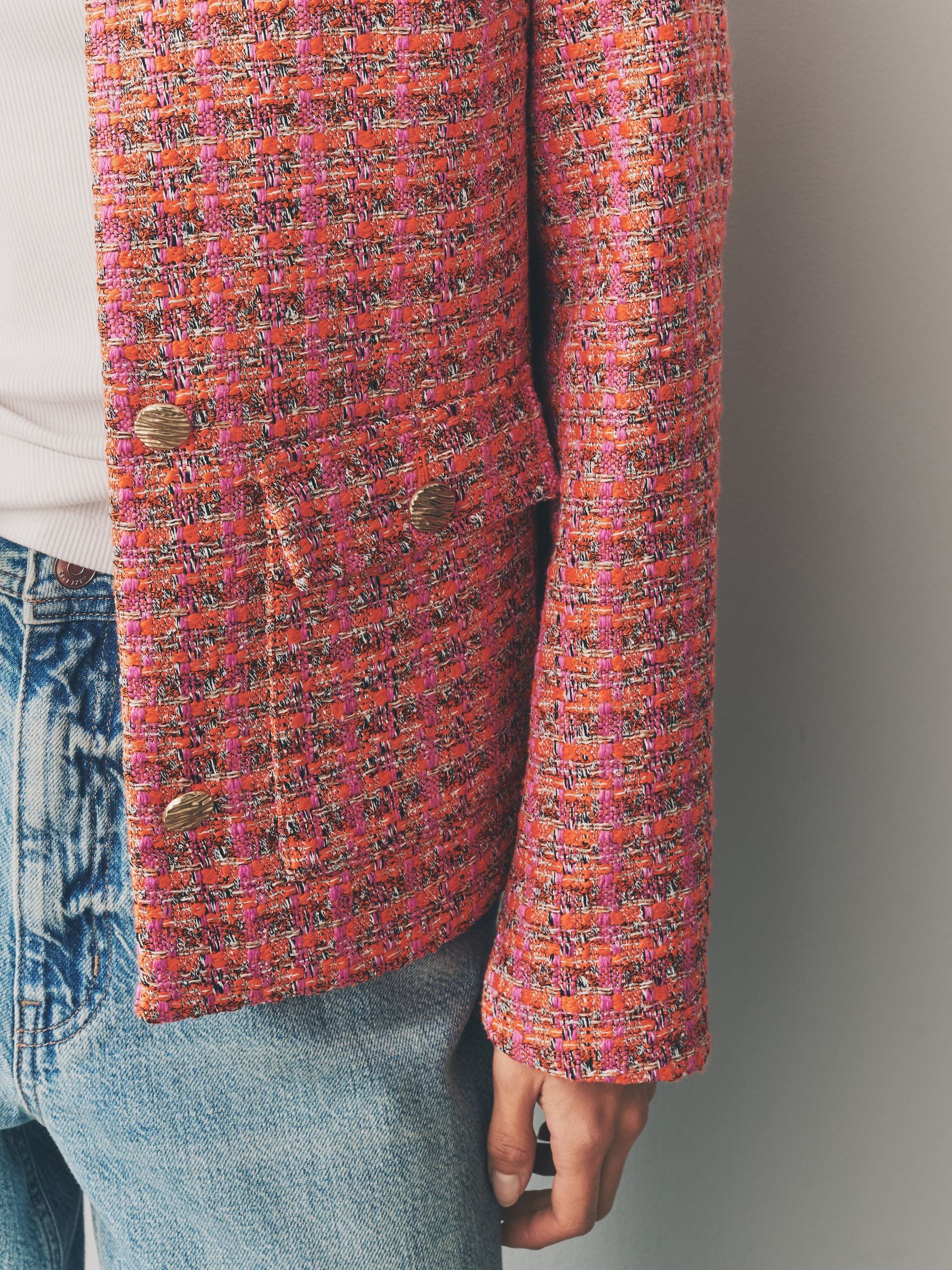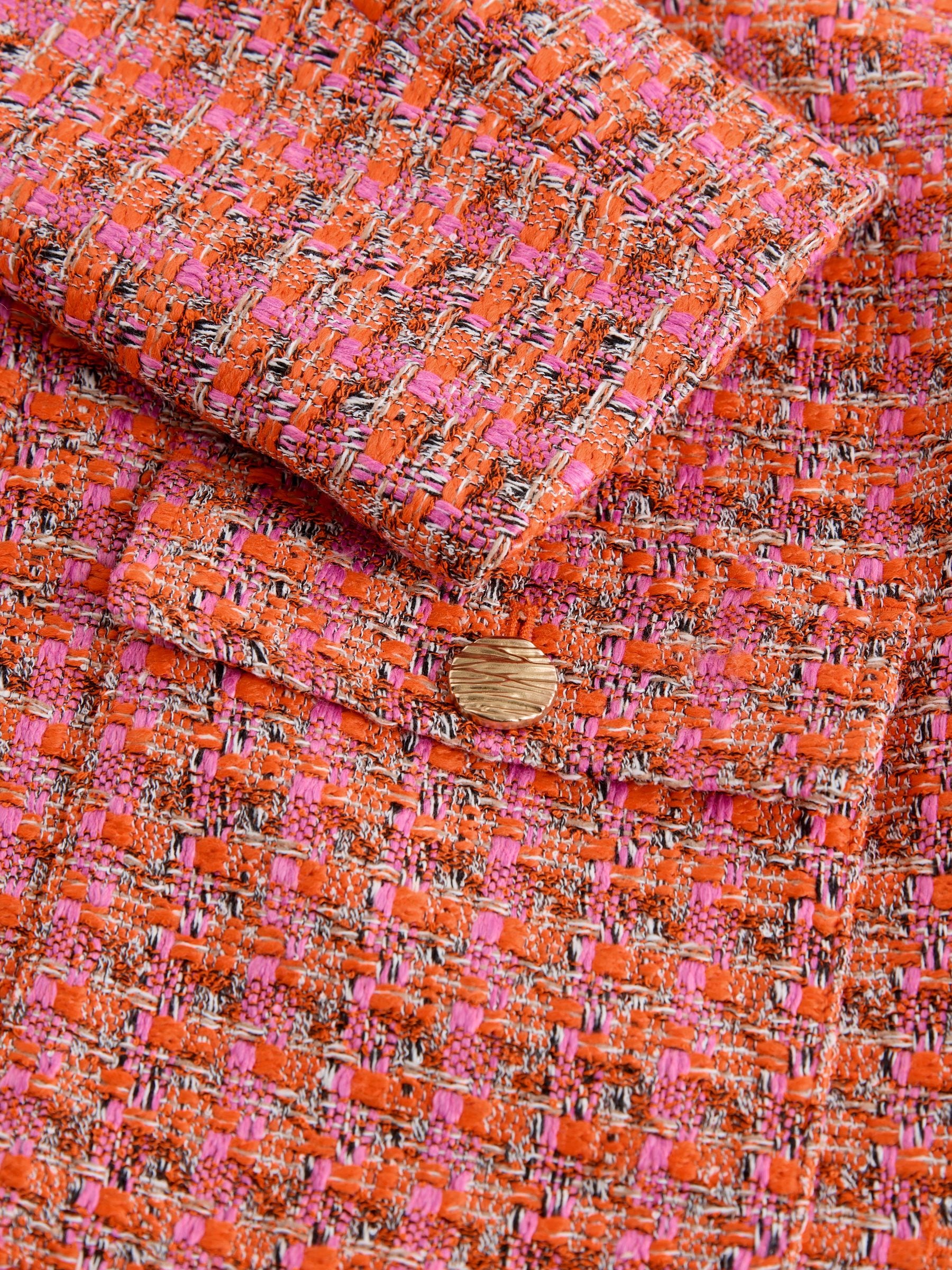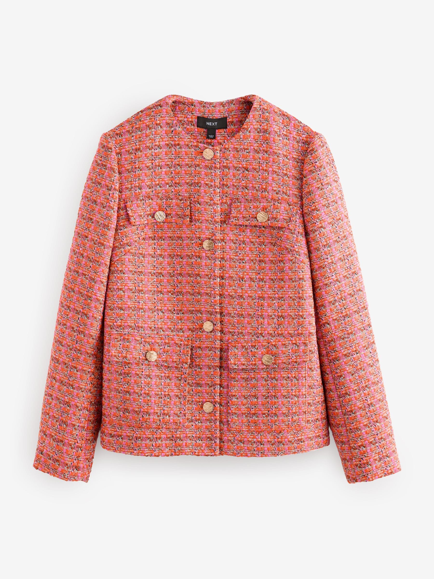 Pink/Orange Collarless Textured Boucle Jacket