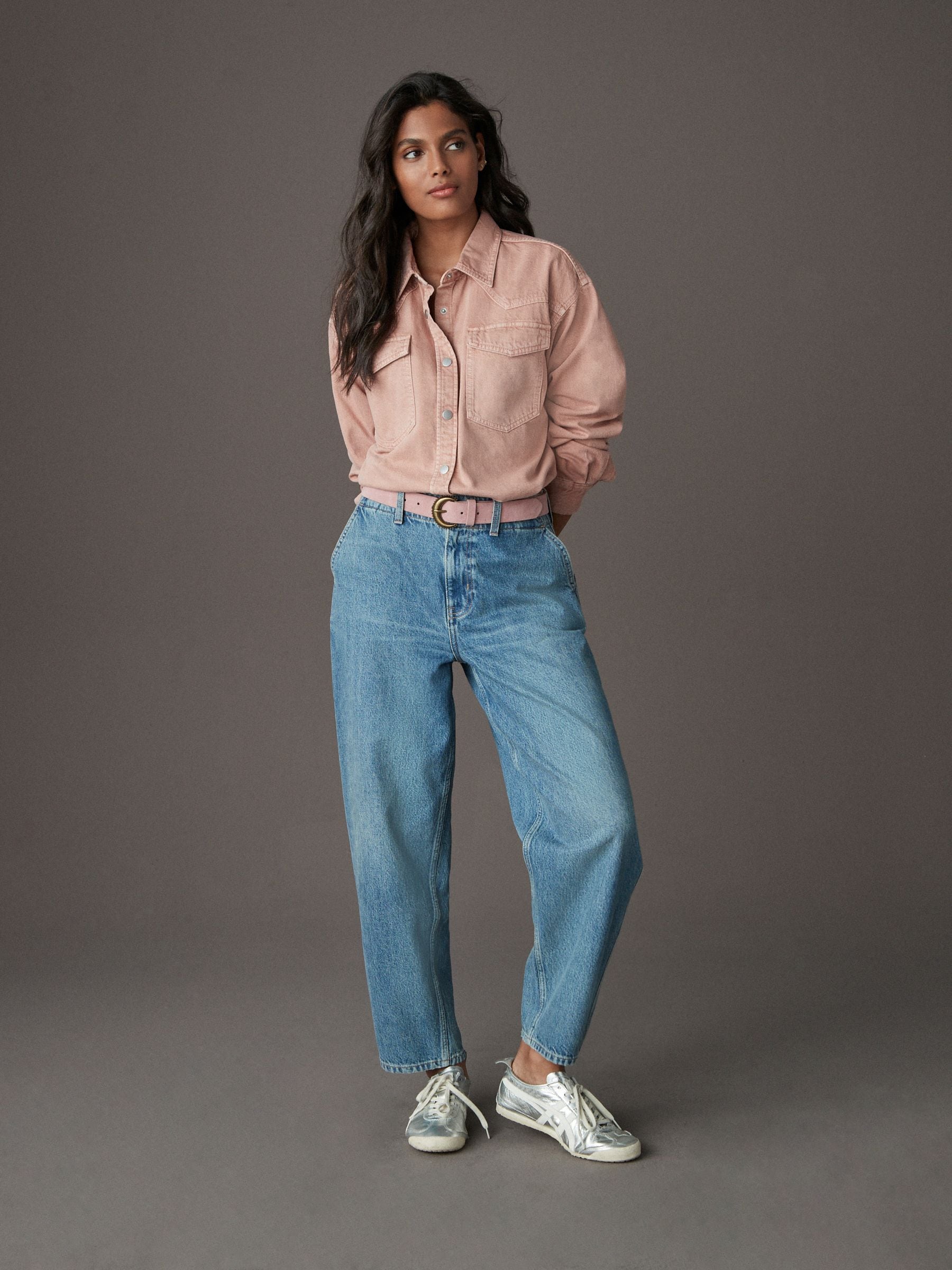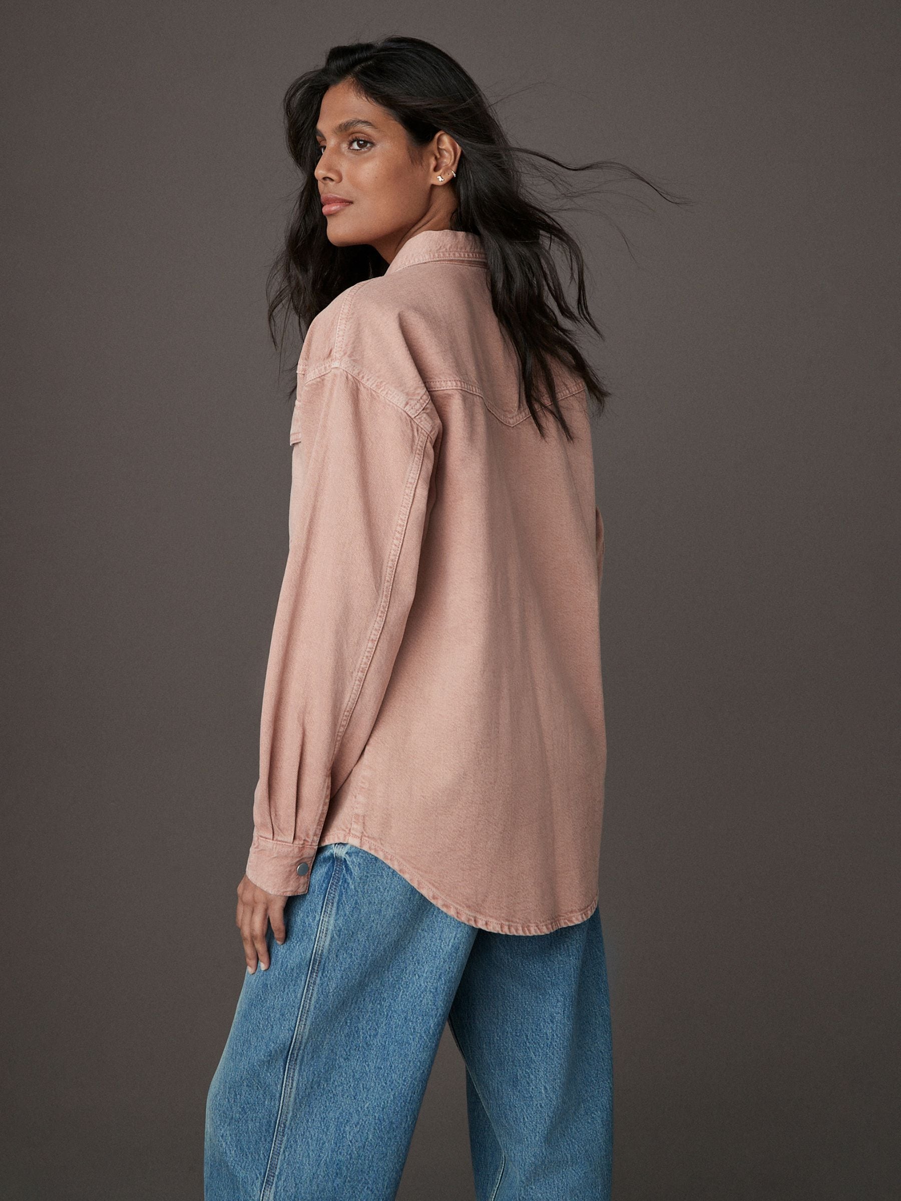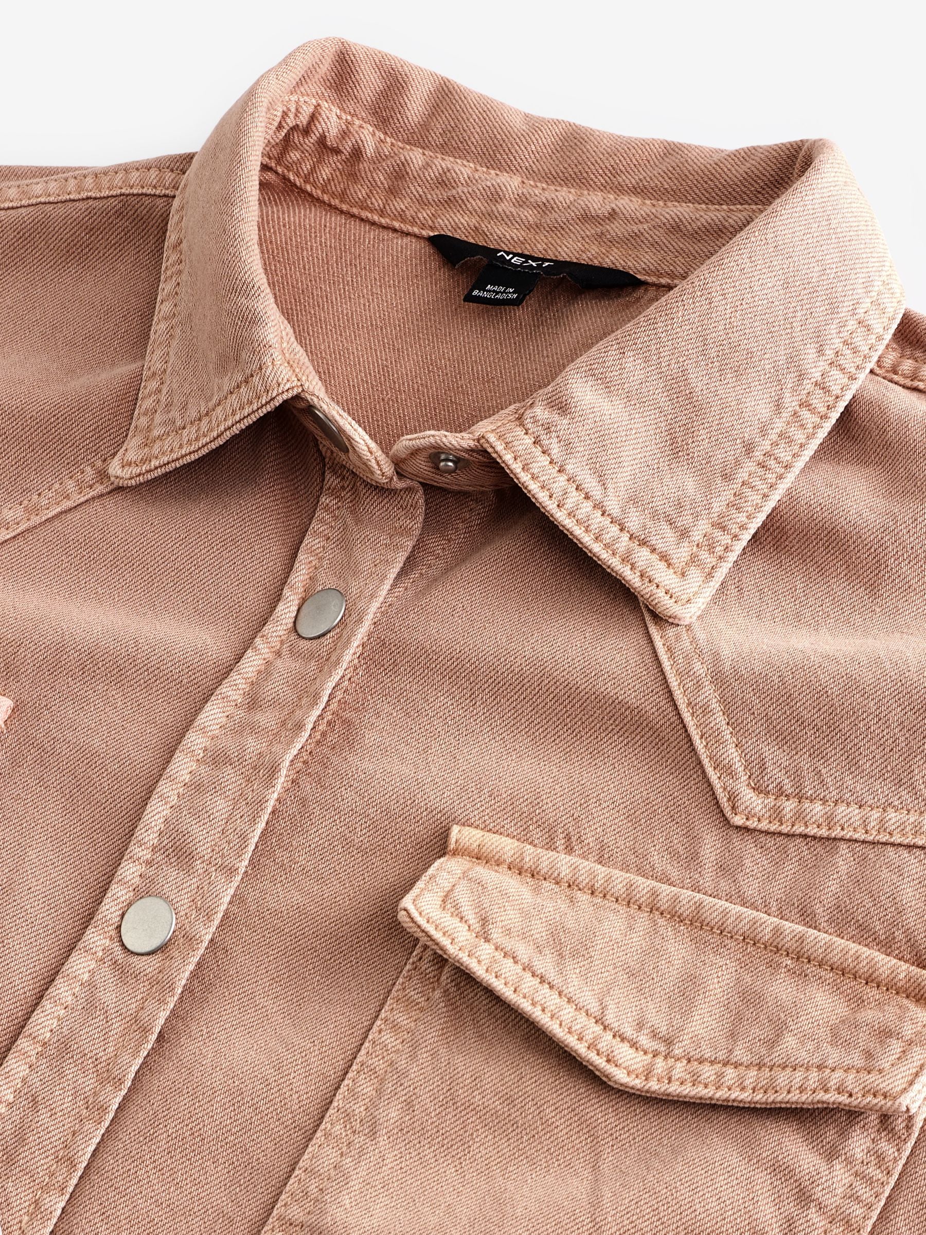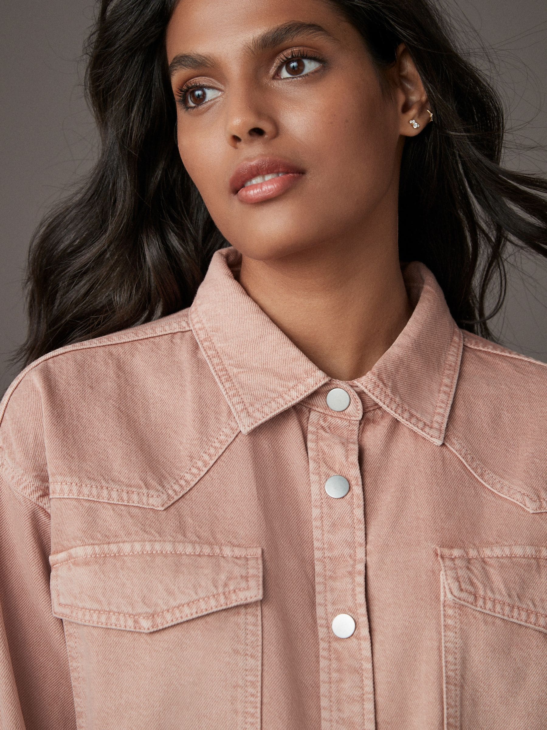 A new update on our bestselling denim shirt. Crafted in 100% cotton for breathable comfort, this pink shirt offers an oversized comfy fit to throw on with any outfit, finished with a collar and flap chest pockets.