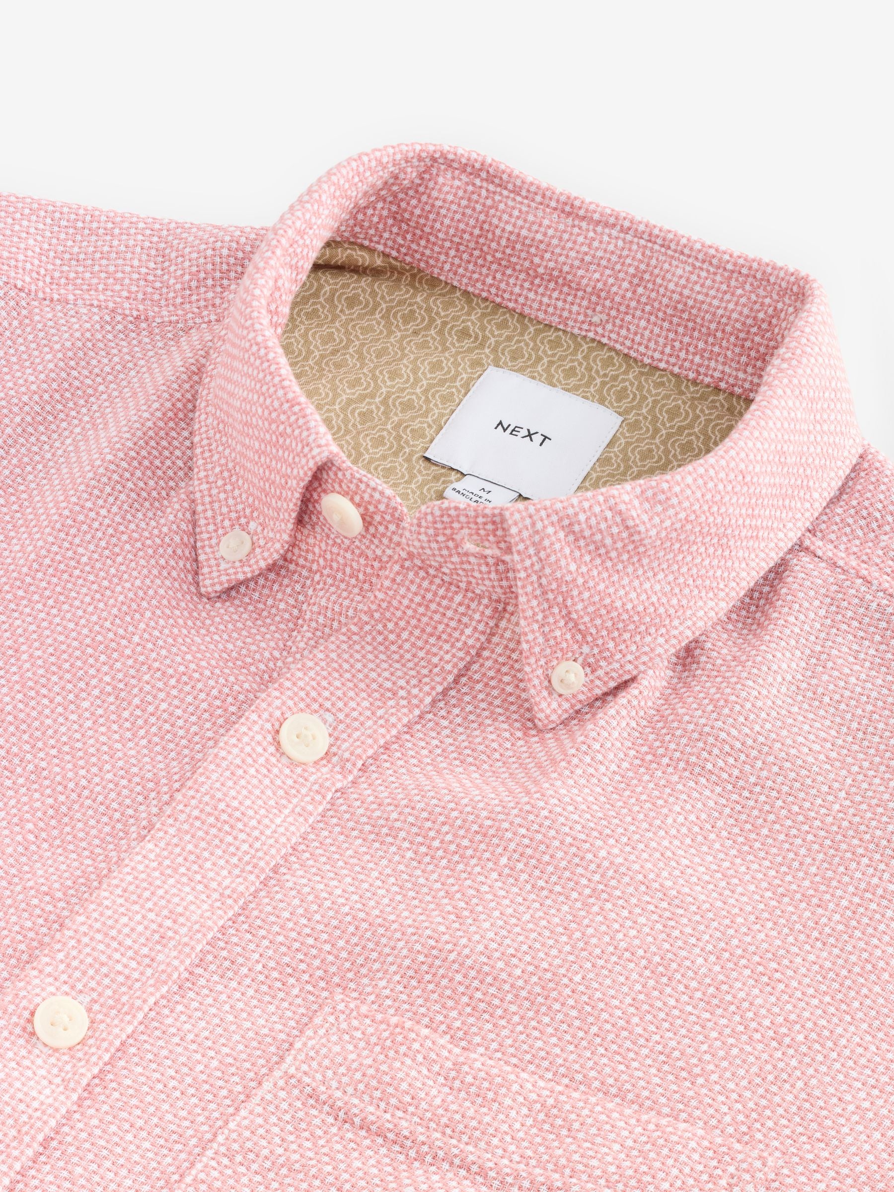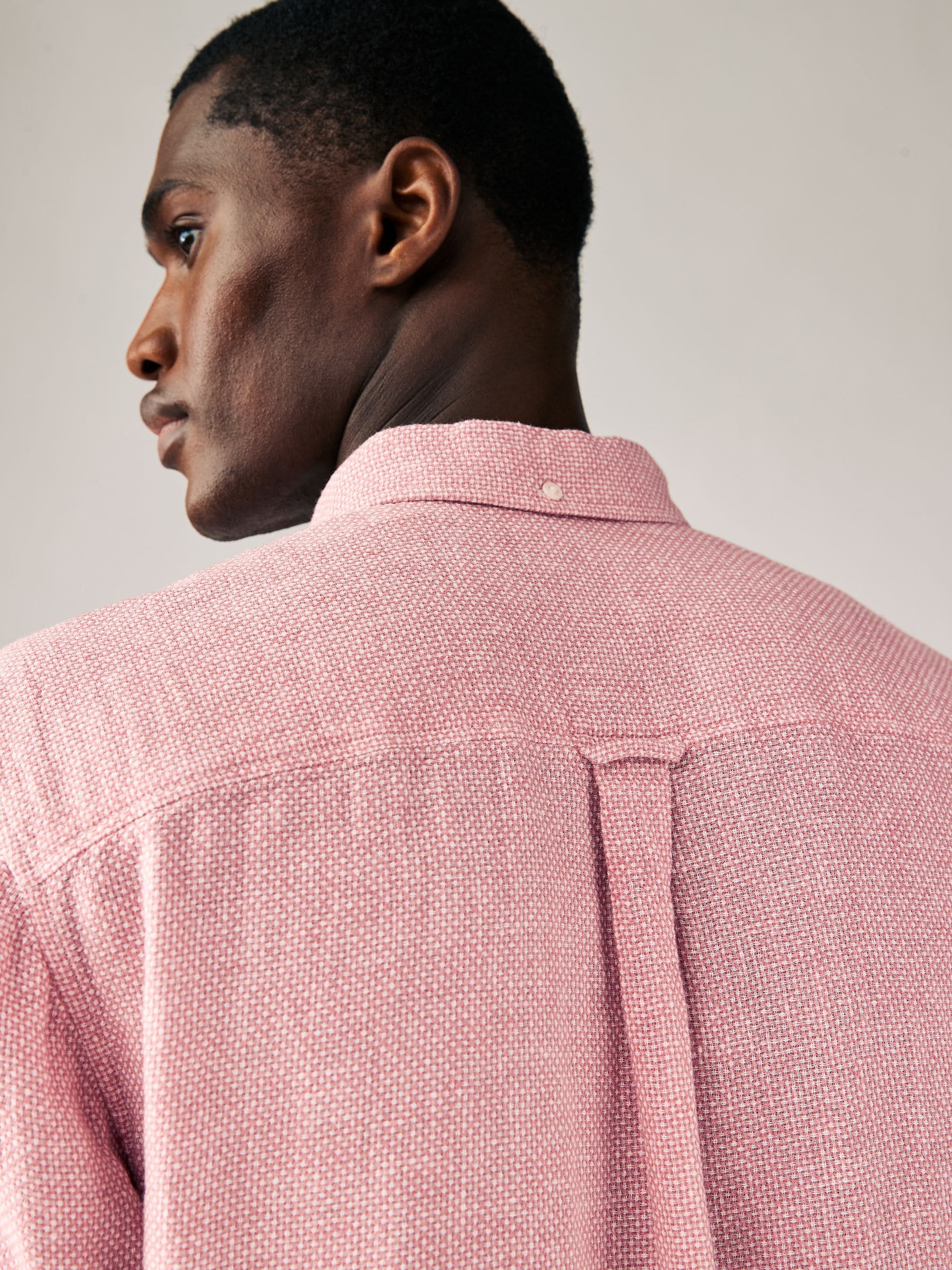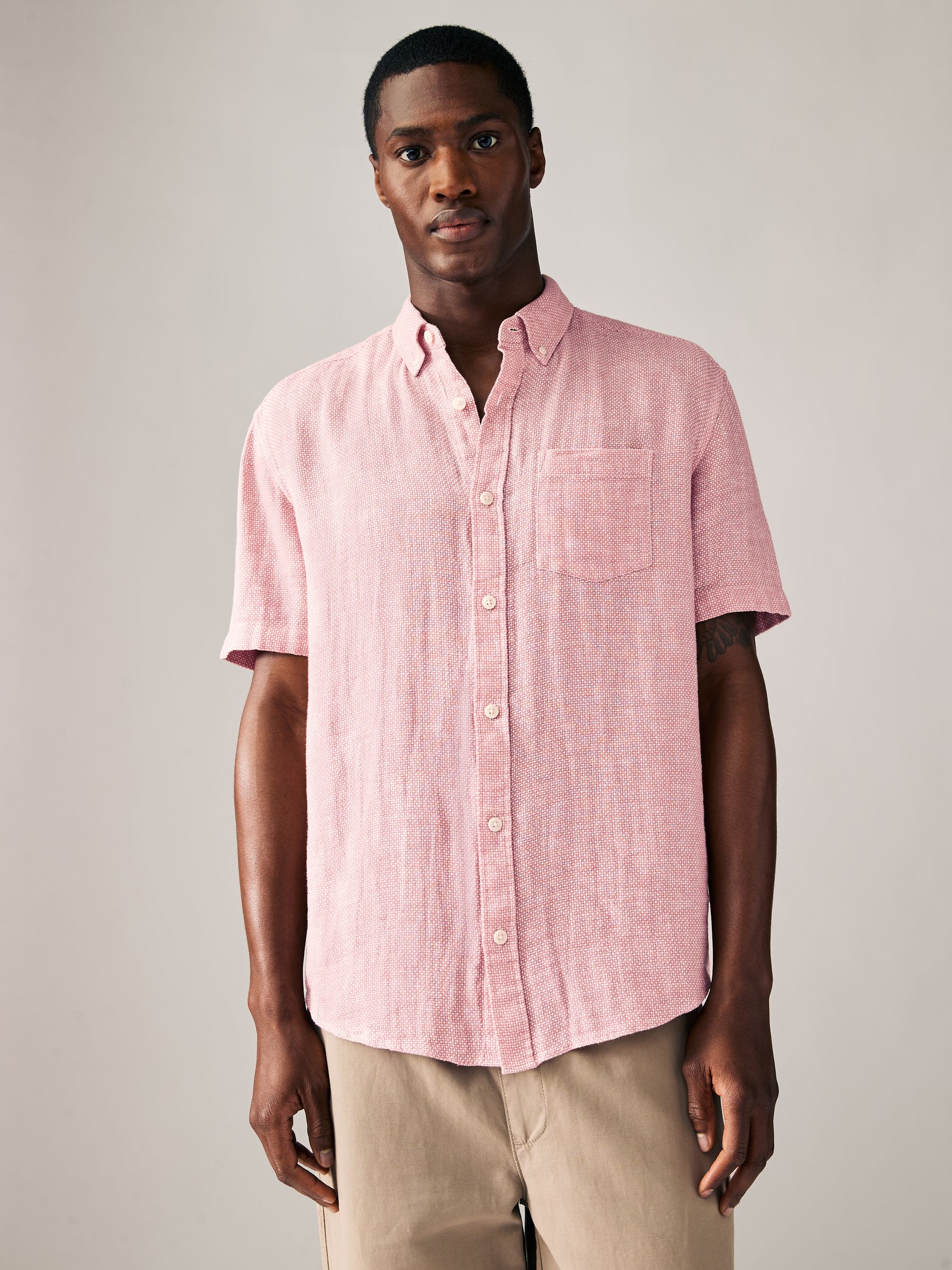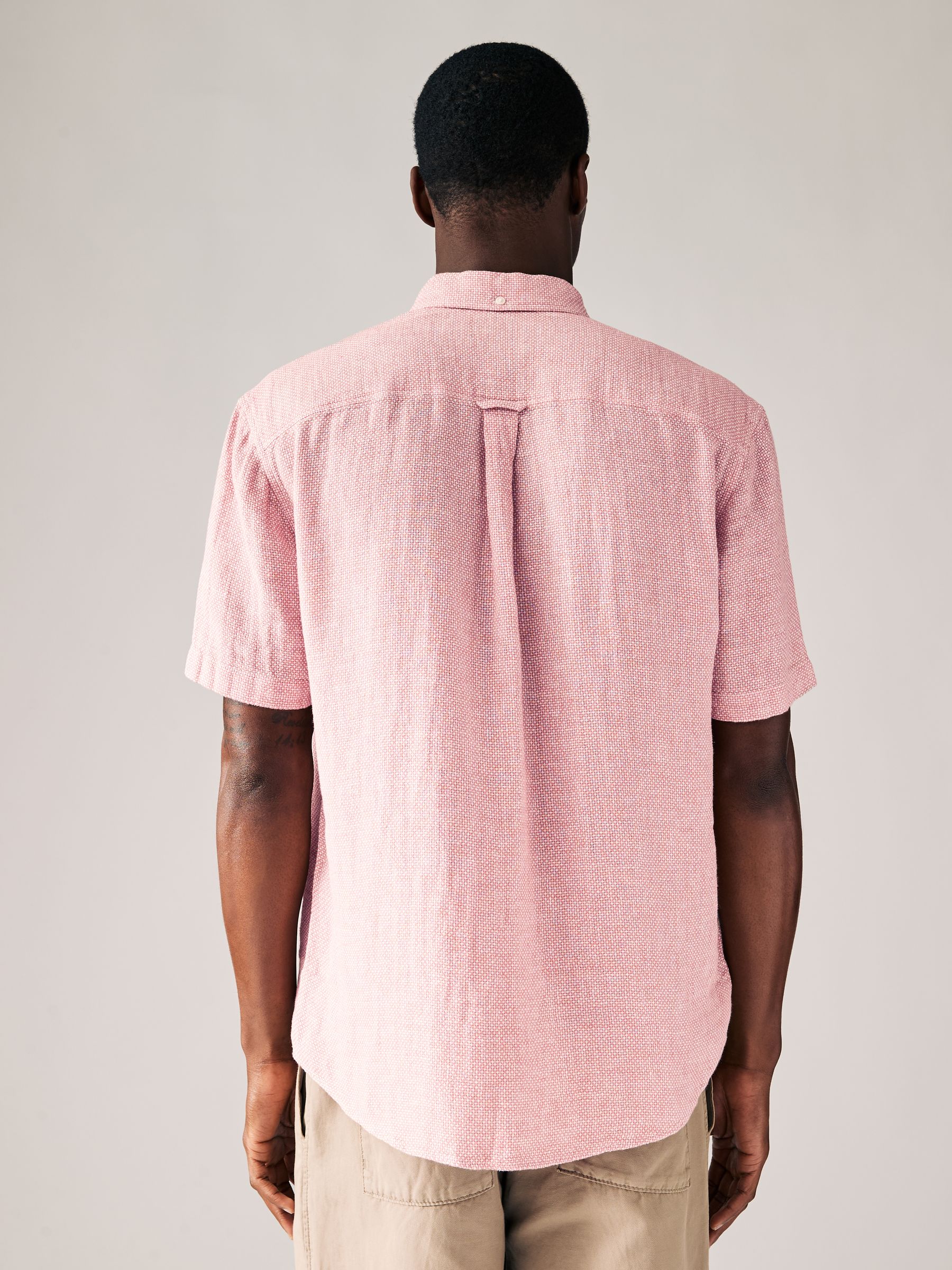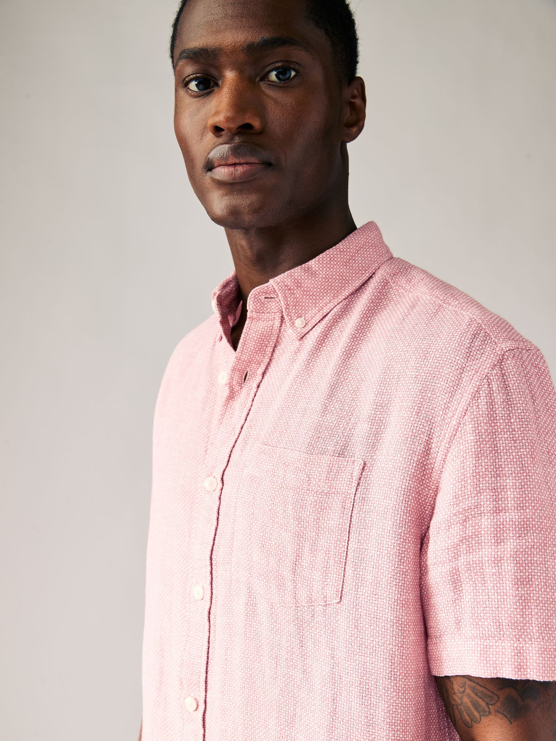 Pink Standard Collar Cotton Linen Blend Short Sleeve Shirt