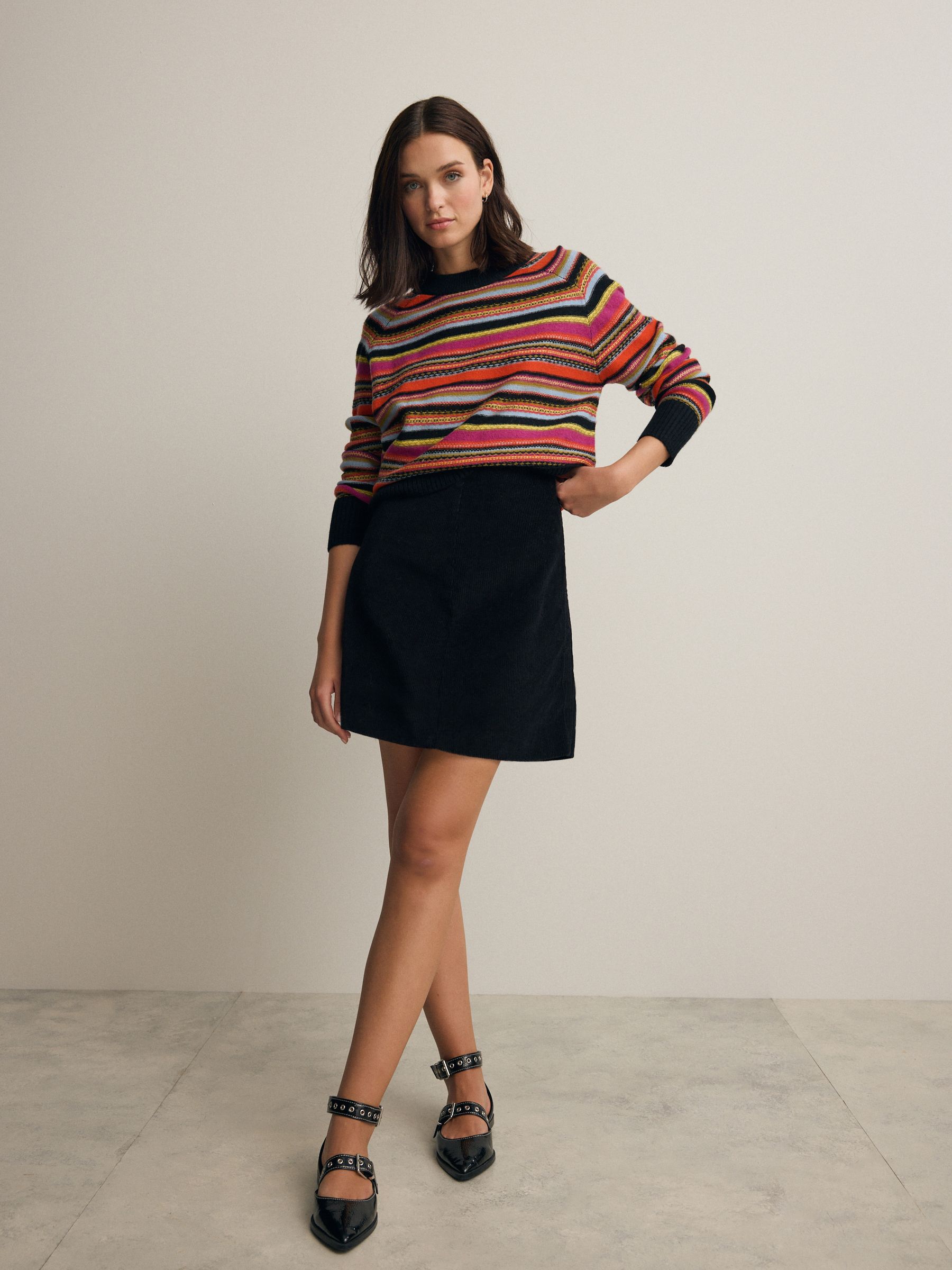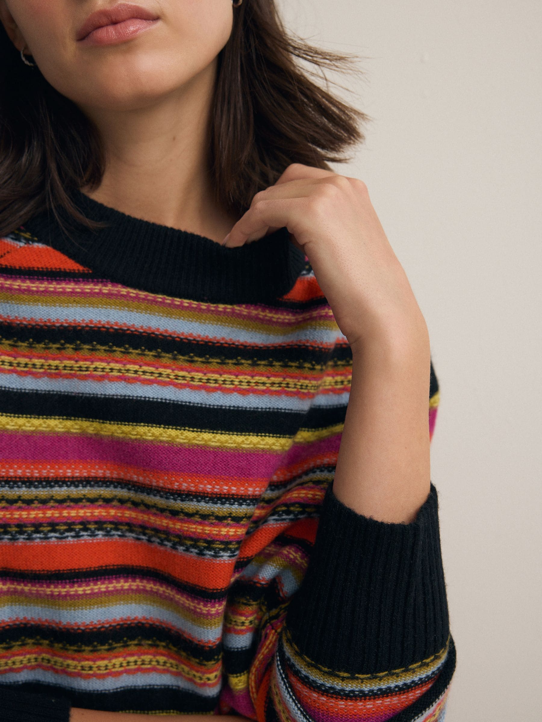 Crafted from 100% lambswool our premium crew neck knitted jumper will add a touch of tasteful autumnal tonality to your cold weather wardrobe. With a super soft touch warm handle and stripe pattern, this jumper has been designed for ultimate comfort alongside our signature high quality. 100% lambswool Long sleeve Crew neckline Stripe pattern Machine washable. 100% Lambswool. Contains wool certified to the Responsible Wool Standard (RWS) which certifies animal welfare and land management practices in wool fiber production and tracks the certified material from farm to final product. The exact % of certified wool is shown in the product composition above. See individual on-product labelling for full certification details