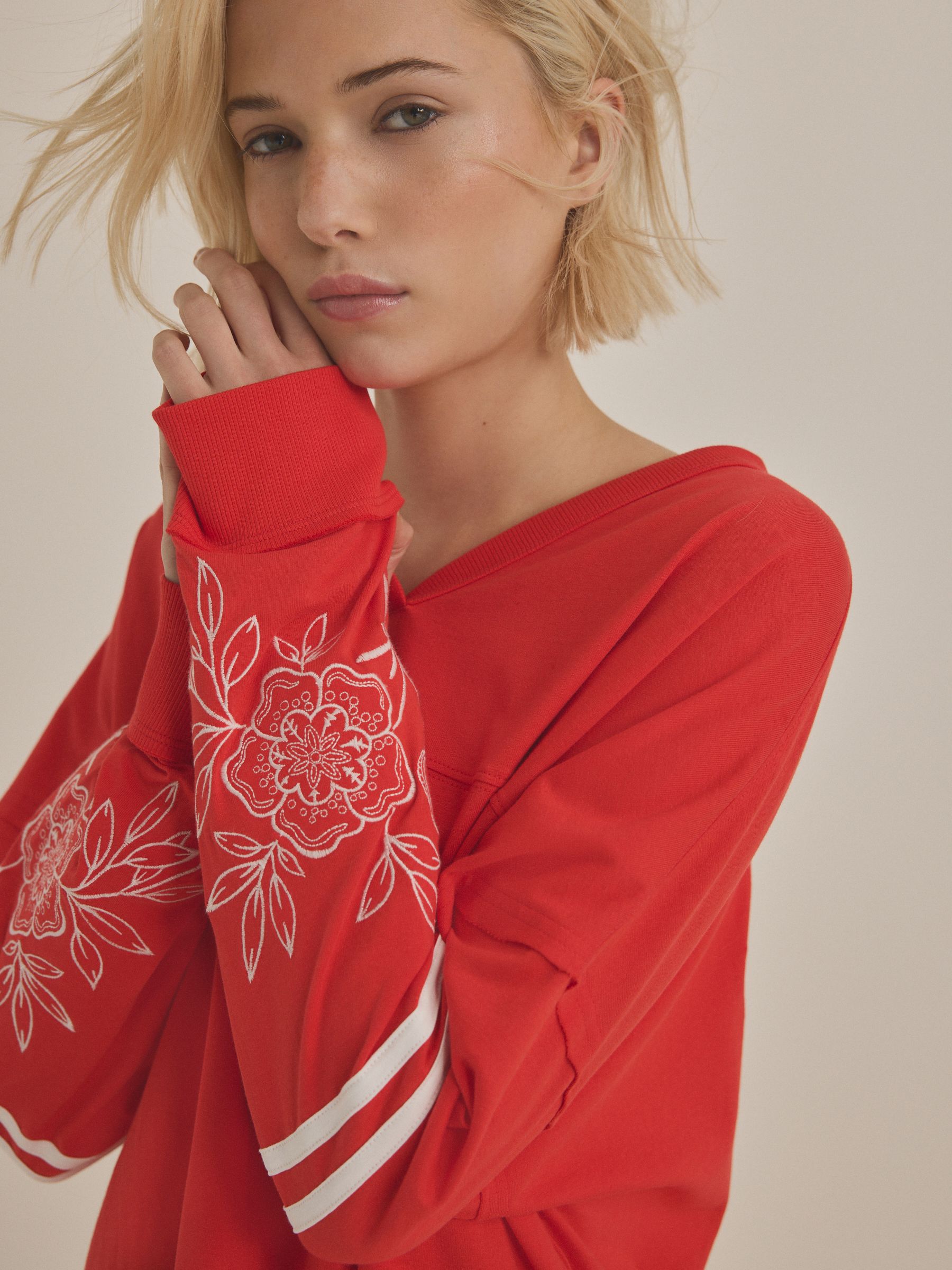 This relaxed-fit slouch long-sleeve skater T-Shirt is perfect for off-duty days. In a washed finish with seam detailing on the back, this pretty top gives a premium feel while ensuring the highest level of comfort with its 100% cotton base.
