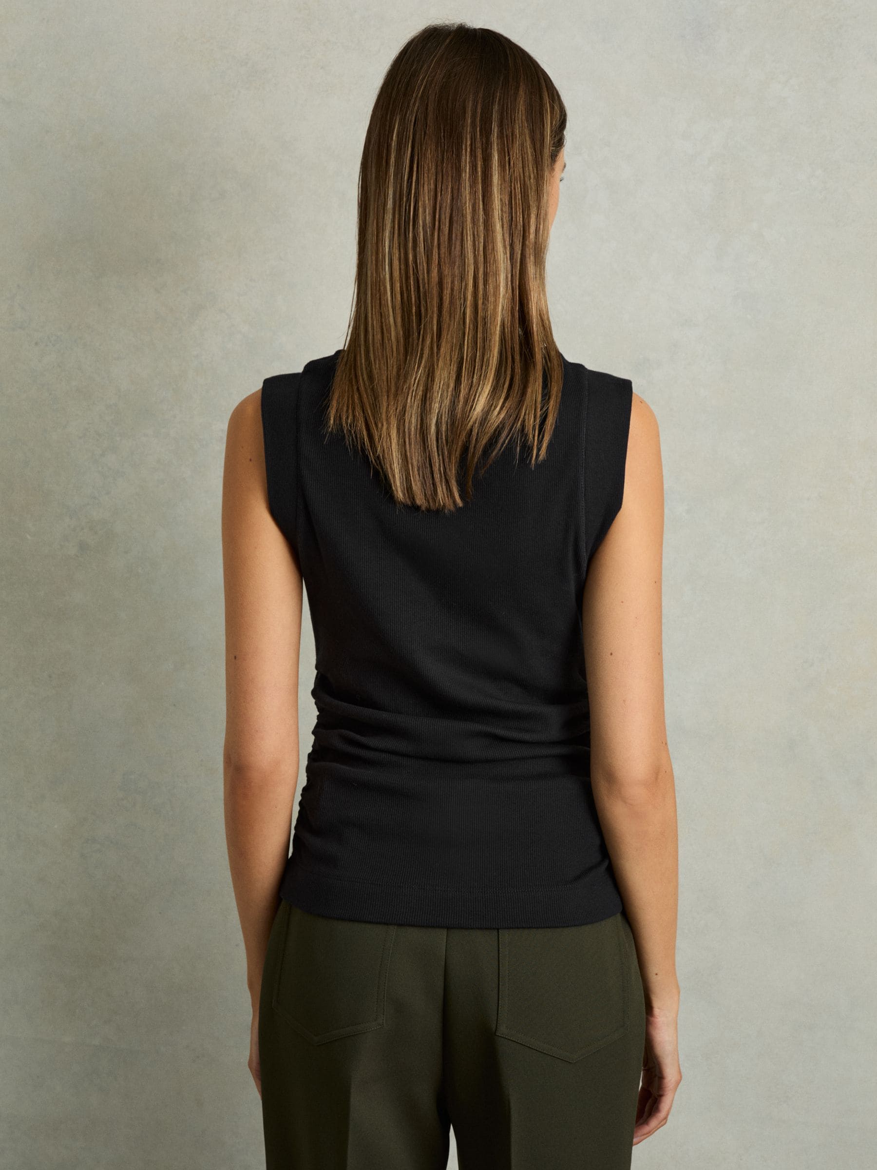 The black Trudy updates a classic vest shape with flattering ruching to the waist and refined capped sleeves. Its ribbed cotton composition is blended with stretch to comfortably hug the body. Cotton blend Ribbed Capped sleeves Ruched detailing to sides The model is wearing a size S. Measurements of model: Height 5ft 9” / 175cm. Machine washable. 95% Cotton, 5% Elastane.