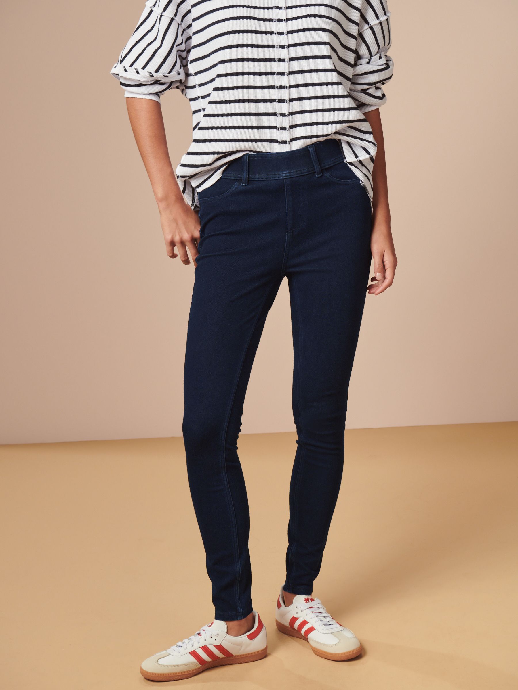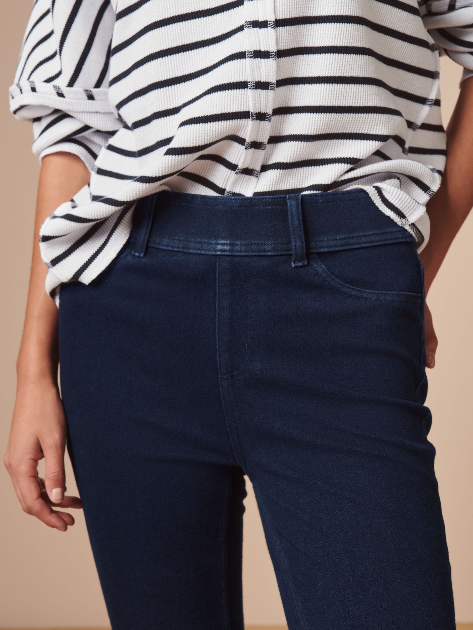 Made from a stretchy jersey denim blend, these mid-rise leggings are designed in a pull-on shape with a slim leg through to the ankle. Ideal for when comfort is key, our jersey denim leggings are guaranteed to be your go-to for comfy, casual styling.