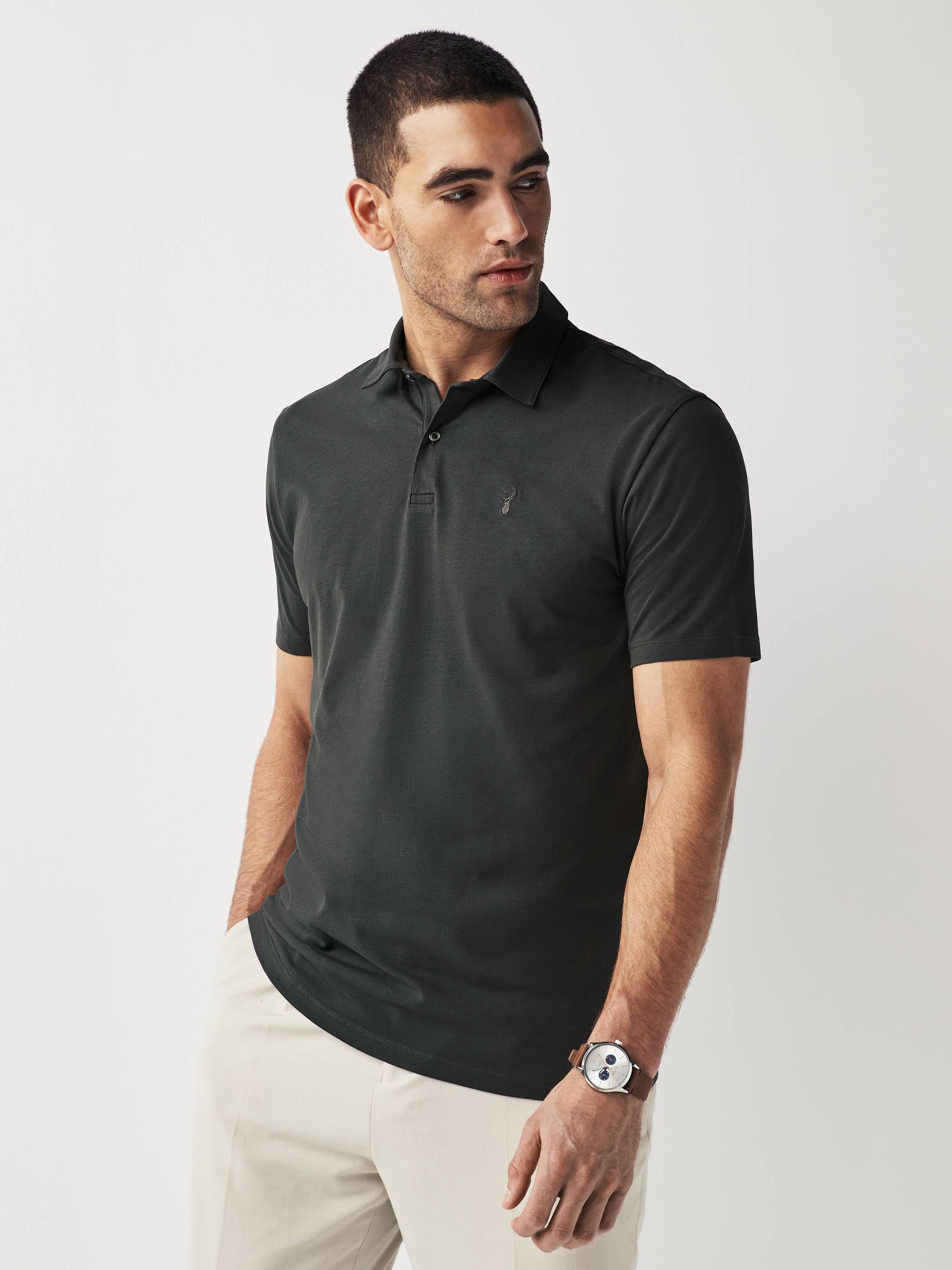 Sold as a 3 pack, these soft jersey polo shirts will see you through the summer months and beyond. With short sleeves, a smart collar, a button placket and our signature stag chest embroidery. Pack of 3 Soft jersey fabric Short sleeves Collar Half-button placket Machine washable. 3 x T-shirt 95% Cotton, 5% Elastane. Better Cotton – By choosing our cotton products, you’re supporting our investment in Better Cotton’s mission to help cotton farming communities survive and thrive while protecting and restoring the environment. This product is sourced via a system of mass balance and therefore may not contain Better Cotton. Learn more at www.next.co.uk/better-cotton