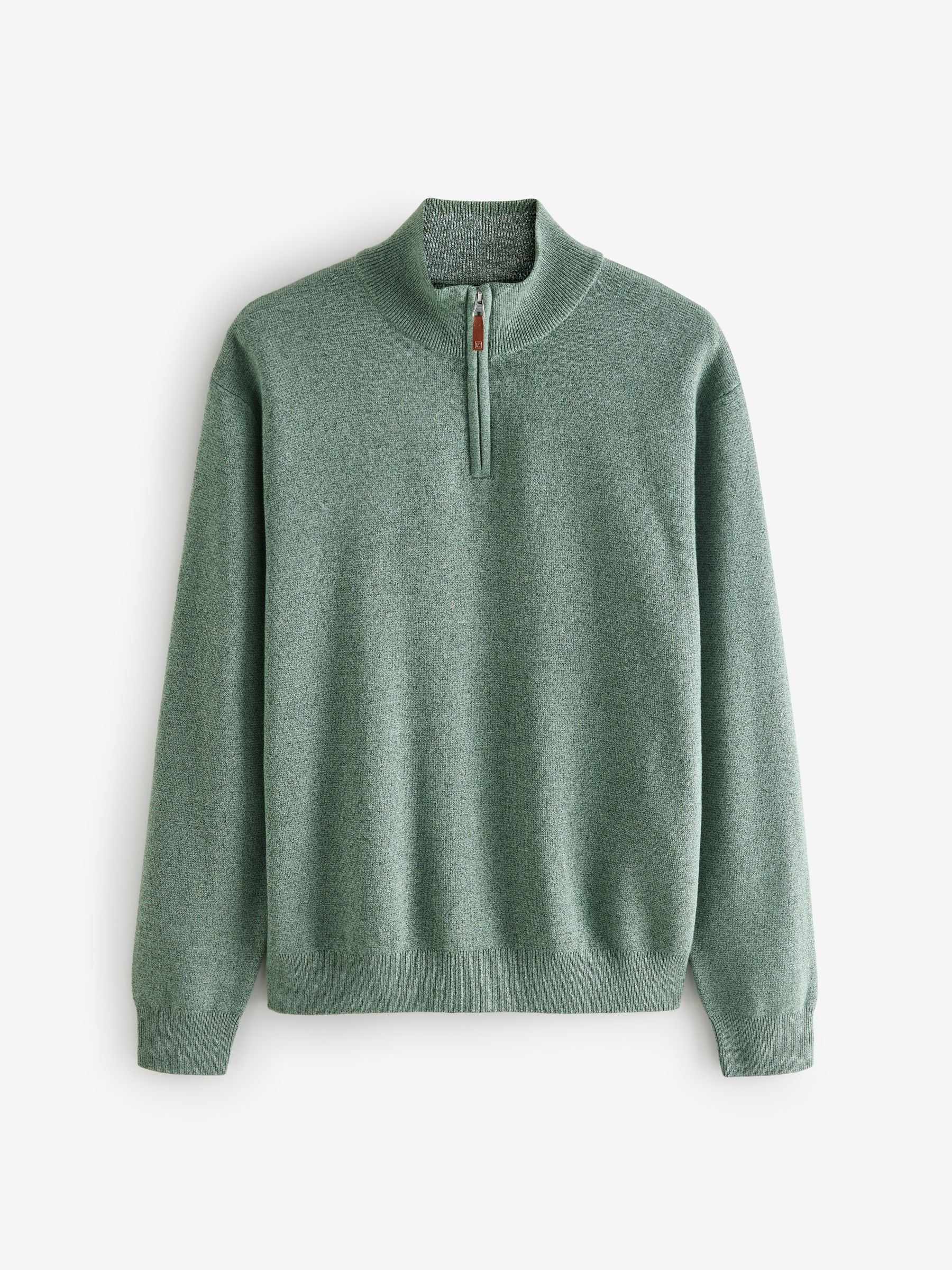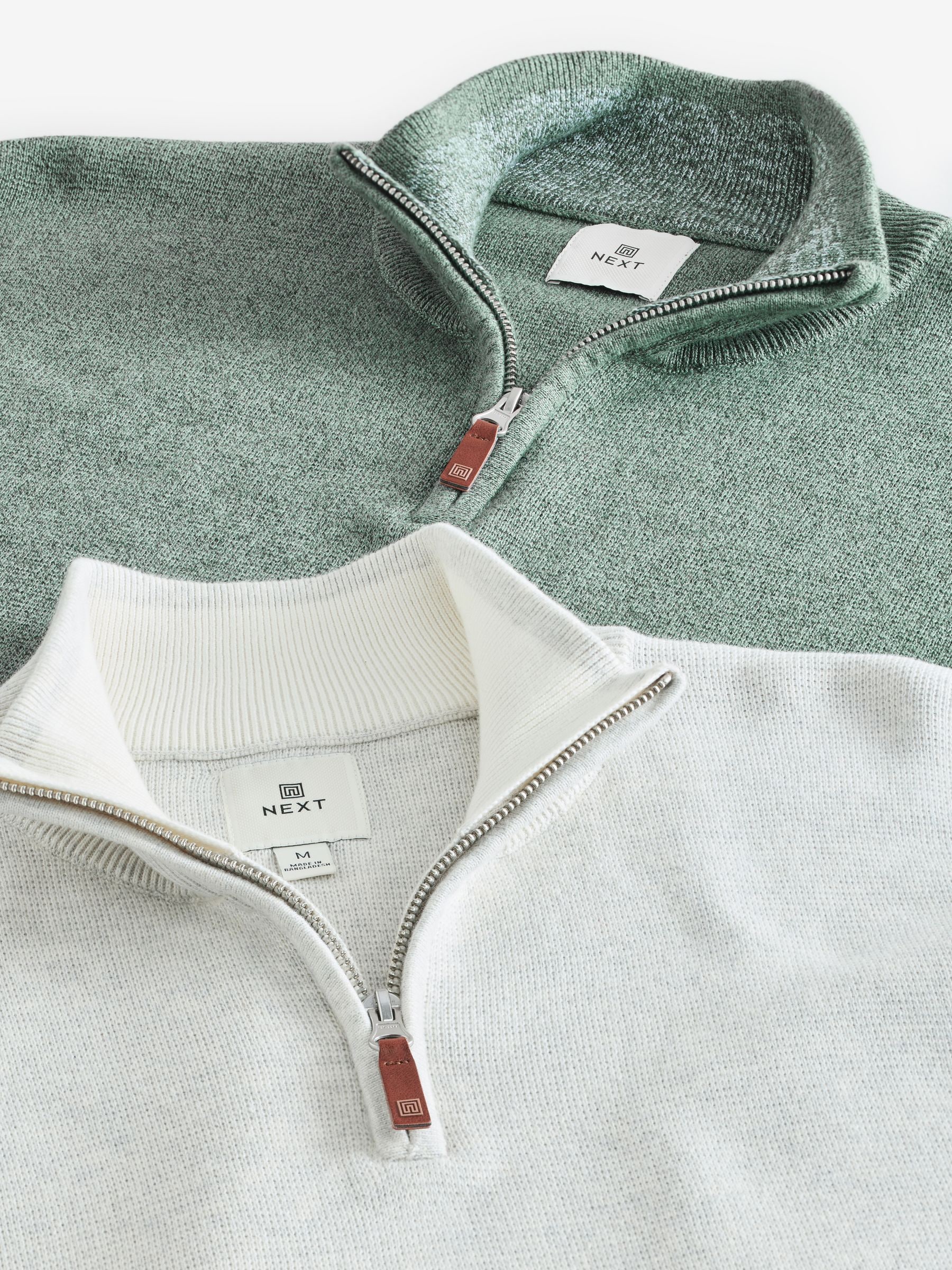 Stock up on cosy, casual layering with this 2-pack of sage green and oatmeal zip-neck jumpers, made from a warm knitted pure cotton with a regular fit and ribbed hems.