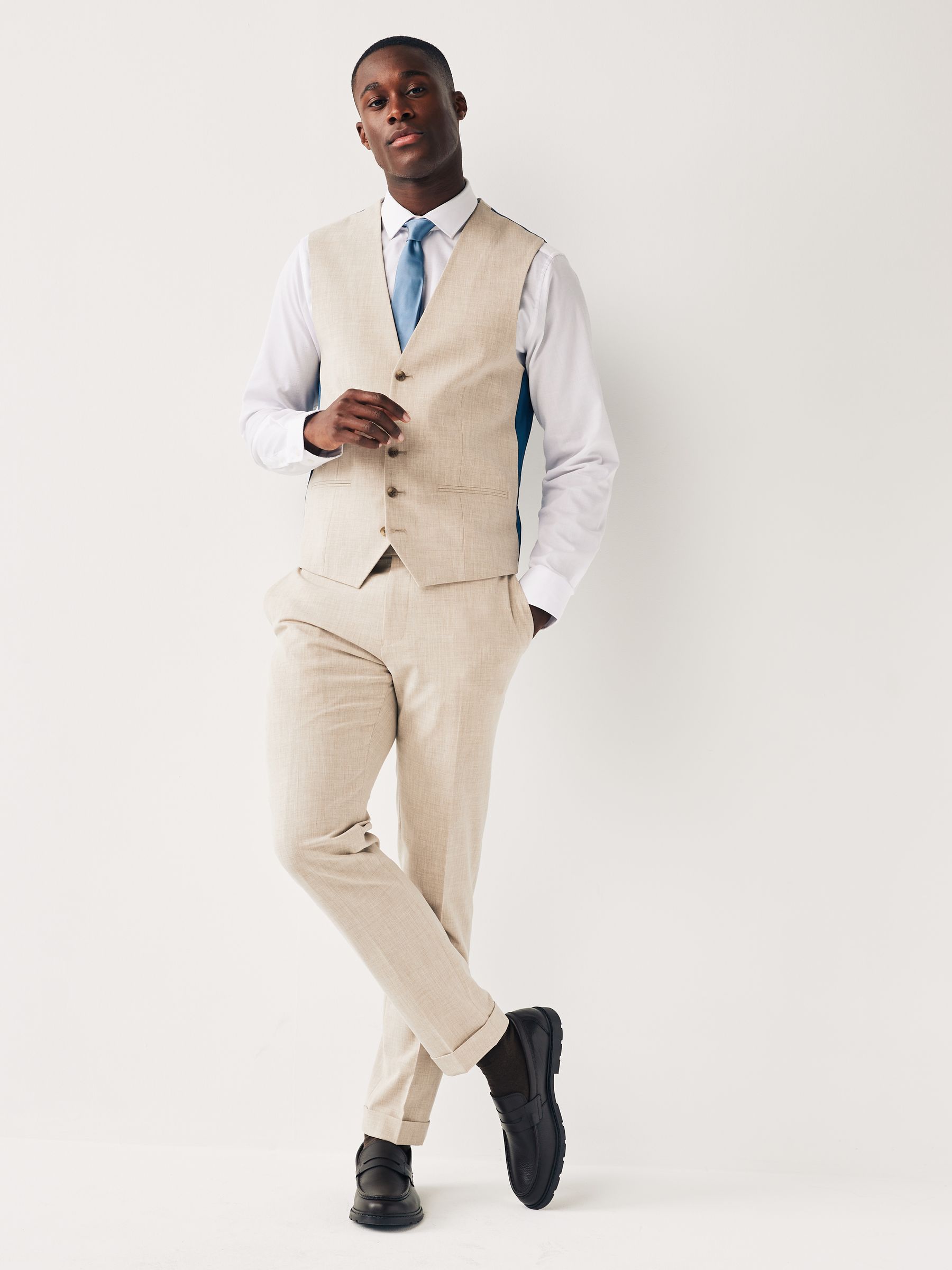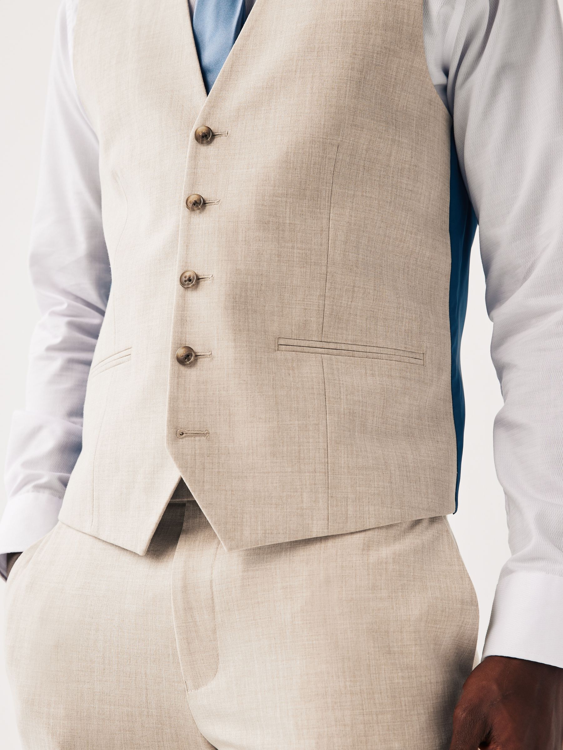 Dress to impress with our men’s motionflex waistcoat in stone. Available in a range of colours, this smart waistcoat is cut in a single-breasted silhouette and features a button fastening, welt pockets and a V-neckline. Complete with stretch fabric and an adjustable back belt for a comfortable fit, this waistcoat makes a charming addition to your formalwear. Single-breasted waistcoat Motionflex stretch fabric Printed back V-Neck Five-button front fastening Adjustable back belt Welt pockets Dry clean only. Main 62% Recycled polyester, 33% Viscose, 5% Elastane. Inner Lining 100% Recycled polyester. Outer Lining 100% Recycled polyester.