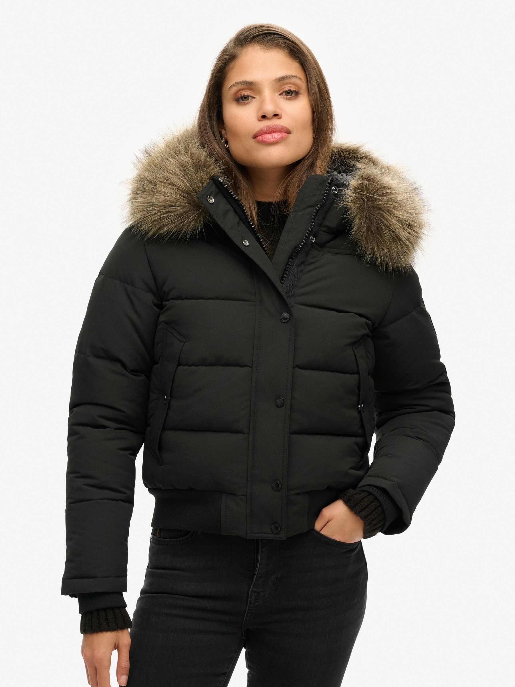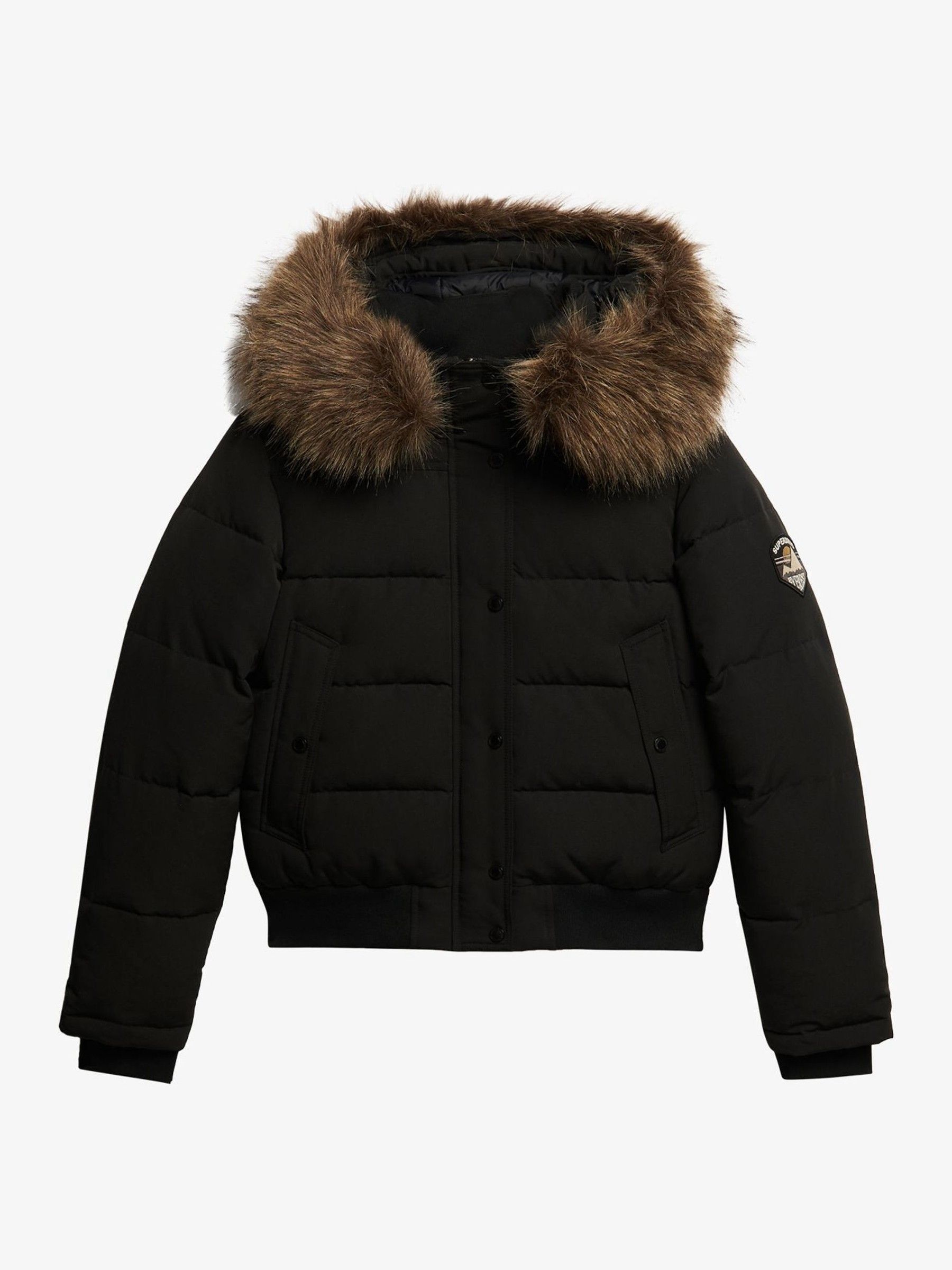 Stay warm and stylish throughout the season with our Everest Hooded Bomber Jacket. Crafted in the ideal slim fit with a faux fur trim on the hood, it’s designed to go with anything you want, so it’s sure to fit into your lifestyle with ease. Slim fit – designed to fit closer to the body for a more tailored look. Padded throughout Zip and popper fastening Hooded with removable faux fur trim and bungee cord adjuster Two external pockets with popper fastenings and a lightly brushed lining Two internal pockets Ribbed cuffs and hemline Embroidered text on the back Signature tab on the sleeve 100% Recycled polyester.