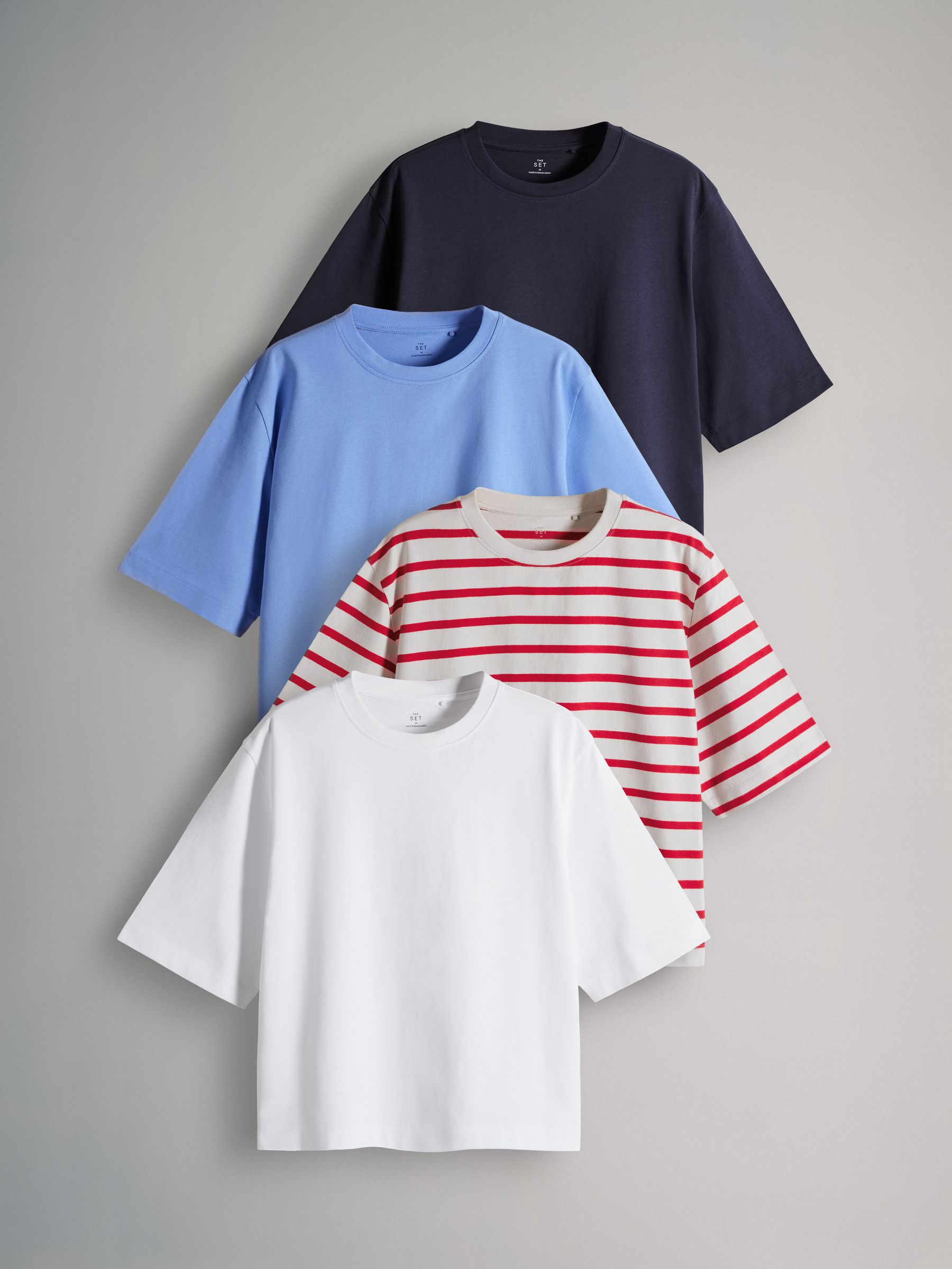 A wardrobe staple, our t-shirt multipack by The Set will be the foundation of your everyday outfit. Crafted in a heavyweight cotton with a simple crew neck, the four t-shirts come in black, rose pink, taupe brown and cream and make a great layering piece under knitwear. Wear them with wide leg trousers and simple flats for a timeless outfit. 4 pack Heavyweight cotton Crew neck 4 x T-shirt 100% Cotton.