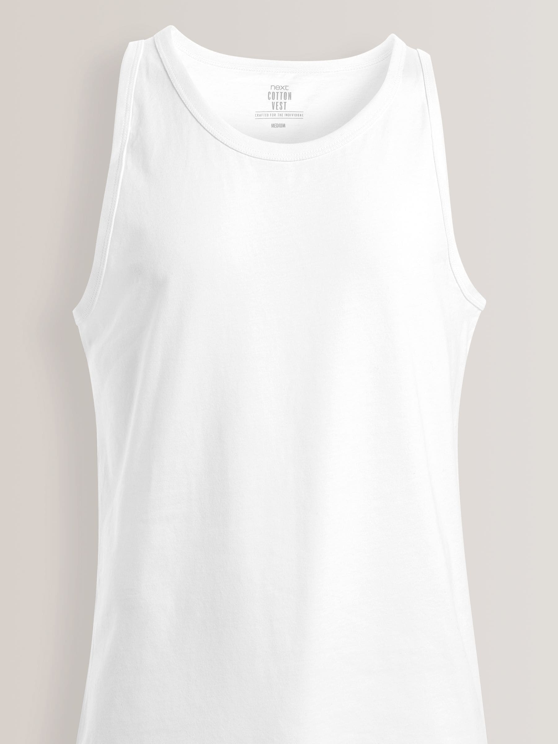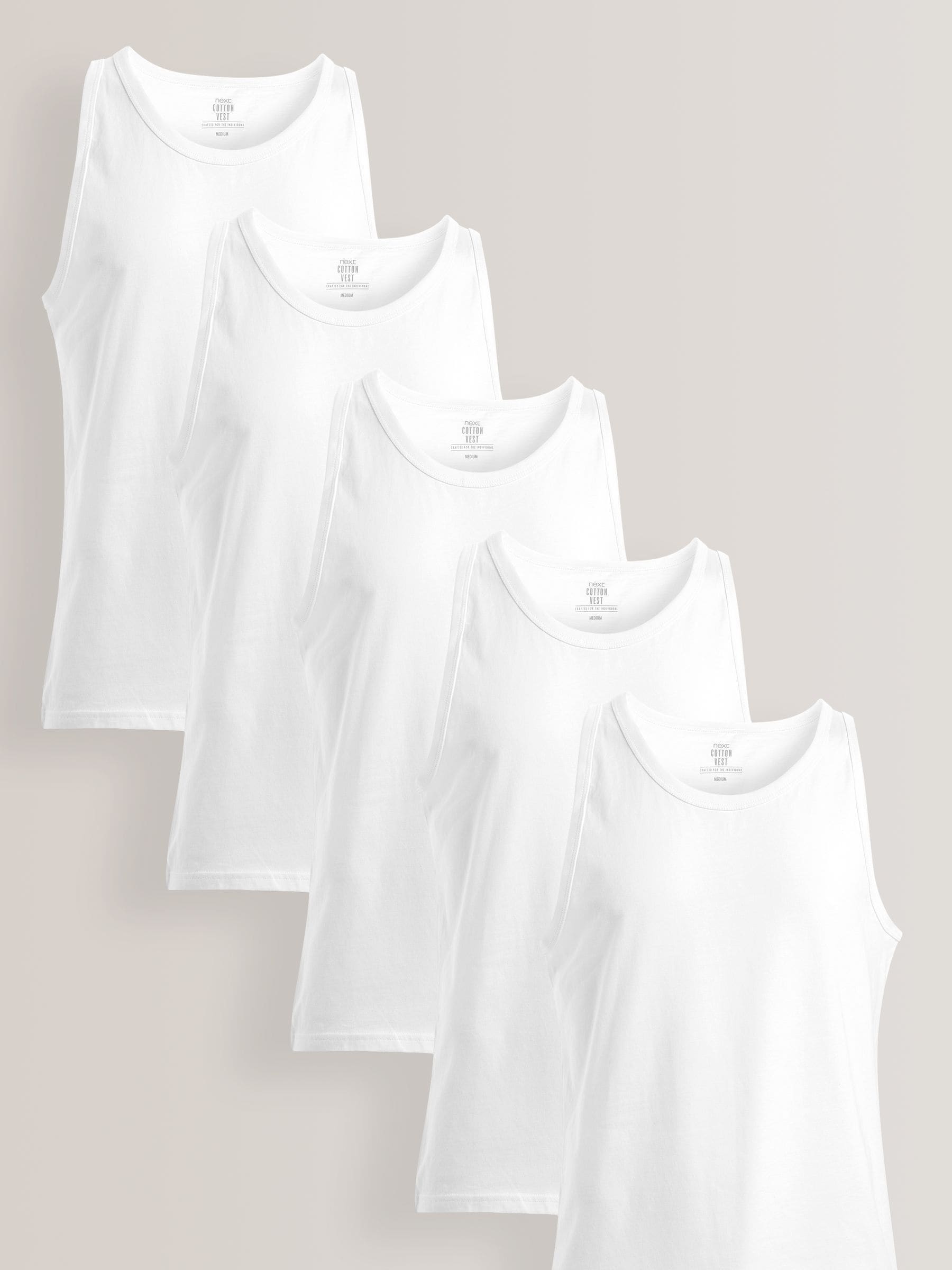 Stock-up on everyday staples with this 5-pack of regular fit vests in white, made from pure cotton in a selection of different colours with ribbed and plain textures. Multipack Regular fit Printed back labels 100% cotton 5 x Vest 100% Cotton. To view our Men’s Underwear Fit Guide CLICK HERE Better Cotton – By choosing our cotton products, you’re supporting our investment in Better Cotton’s mission to help cotton farming communities survive and thrive while protecting and restoring the environment. This product is sourced via a system of mass balance and therefore may not contain Better Cotton. Learn more at www.next.co.uk/better-cotton, Indicates styles available in Bigger chest or collar size