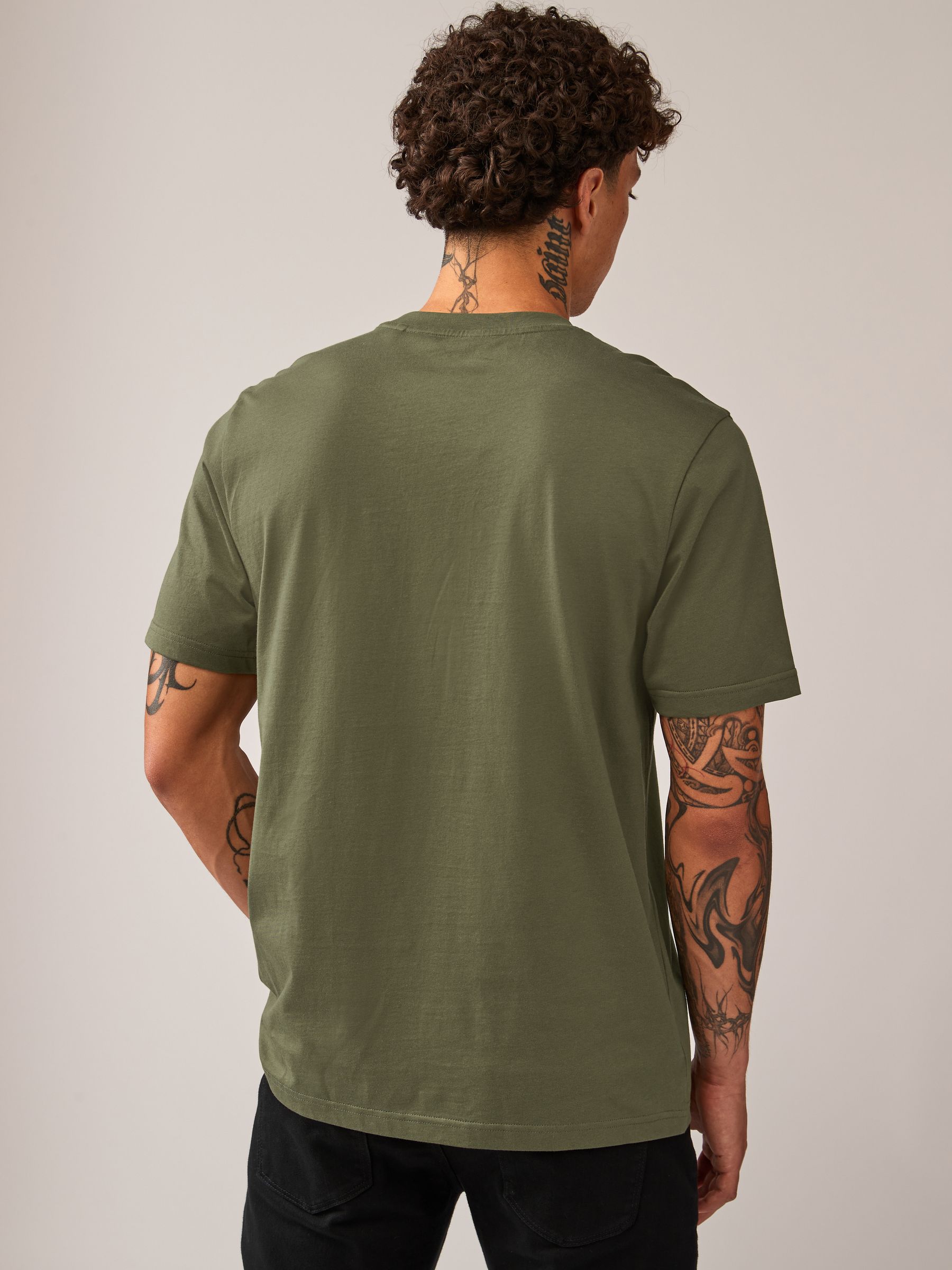 This 3-pack of white black khaki T-Shirts is perfect for stocking up on your staples, made from pure cotton in a regular fit, featuring stylish graphic prints with an elevated look. 3-pack 100% cotton Regular fit Graphic print Machine washable. 3 x T-shirt 100% Cotton. Better Cotton – By choosing our cotton products, you’re supporting our investment in Better Cotton’s mission to help cotton farming communities survive and thrive while protecting and restoring the environment. This product is sourced via a system of mass balance and therefore may not contain Better Cotton. Learn more at www.next.co.uk/better-cotton