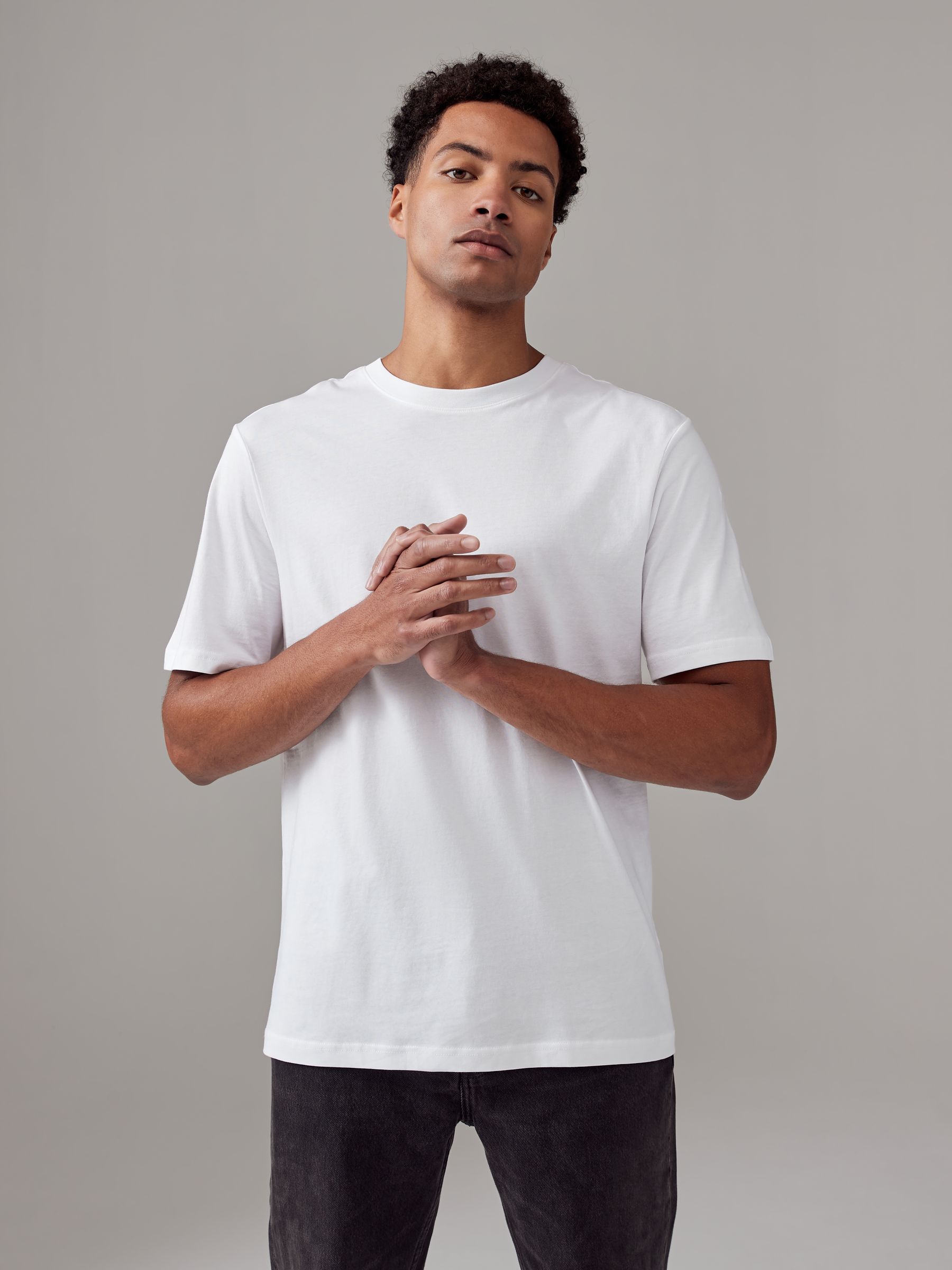 Our regular fit T-Shirt is easy to wear and fits straight down the body. Stock up on everyday essentials with our White/Black/Navy 6 pack of men’s T-Shirts. Cut in a regular fit with a crew neckline and short sleeves, these pure cotton T-Shirts are presented in an array of colours and are effortlessly easy to style. Lightweight fabric – 160gsm Machine washable. 6 x T-shirt 100% Cotton. Made with U.S. Cotton Trust Protocol verified origin. A new standard in sustainble cotton production. The U.S. Cotton Trust Protocol assures more sustianable cotton farming, including fair working conditions and best practices for water and pesticide usage, soil diversity and greenhouse gas emmisions.