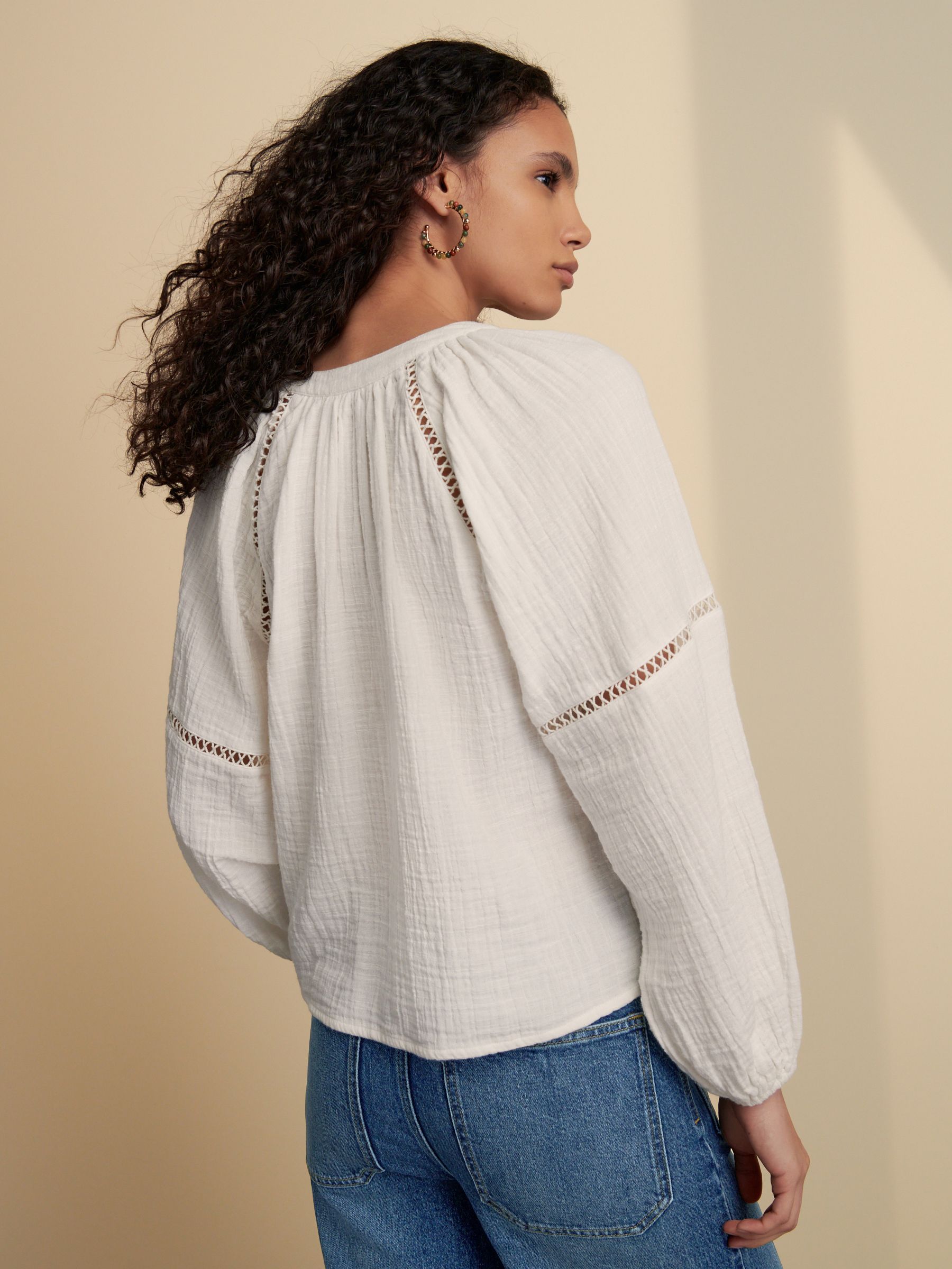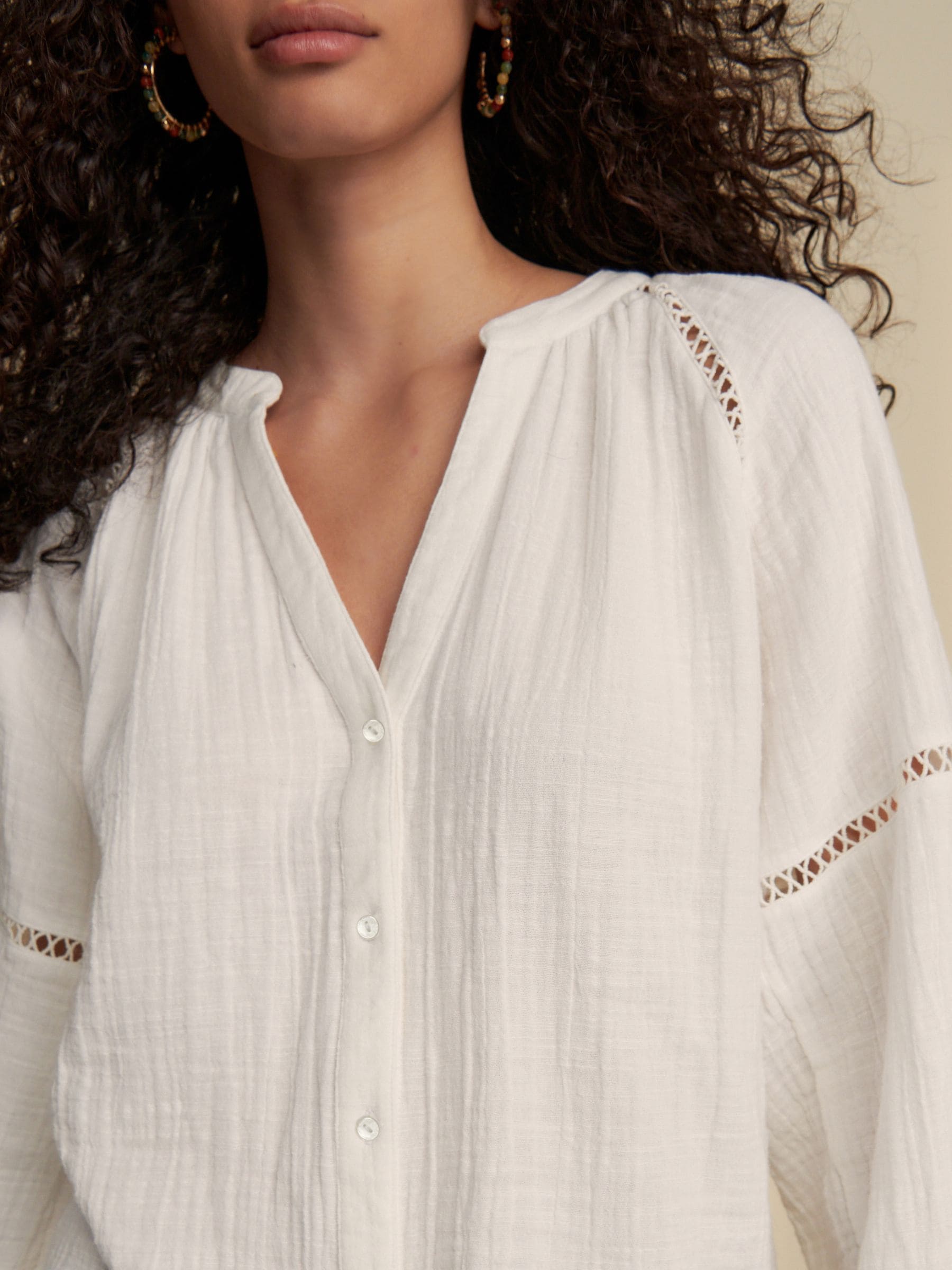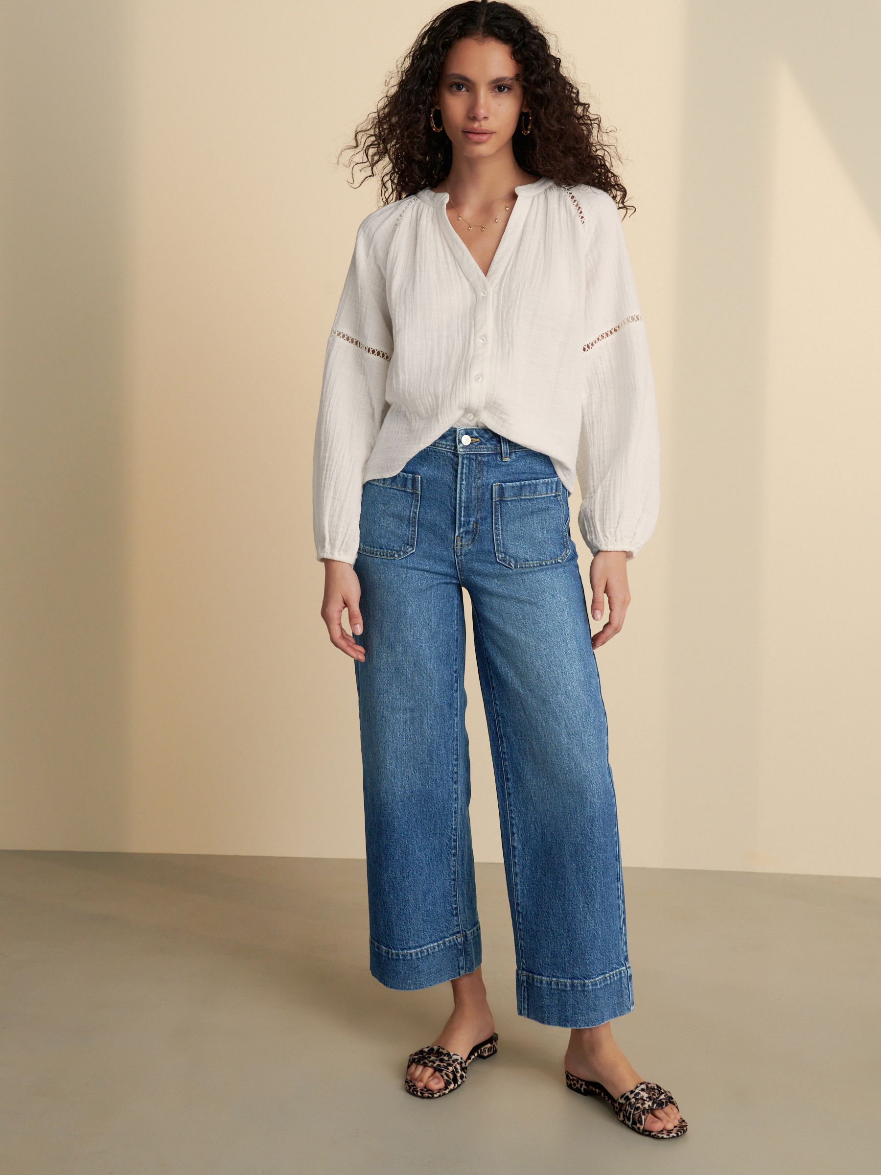 Cut from a soft lightweight cotton fabric and in a relaxed fit, this white button down long sleeve blouse is the perfect essential for your workwear to weekend wardrobe.