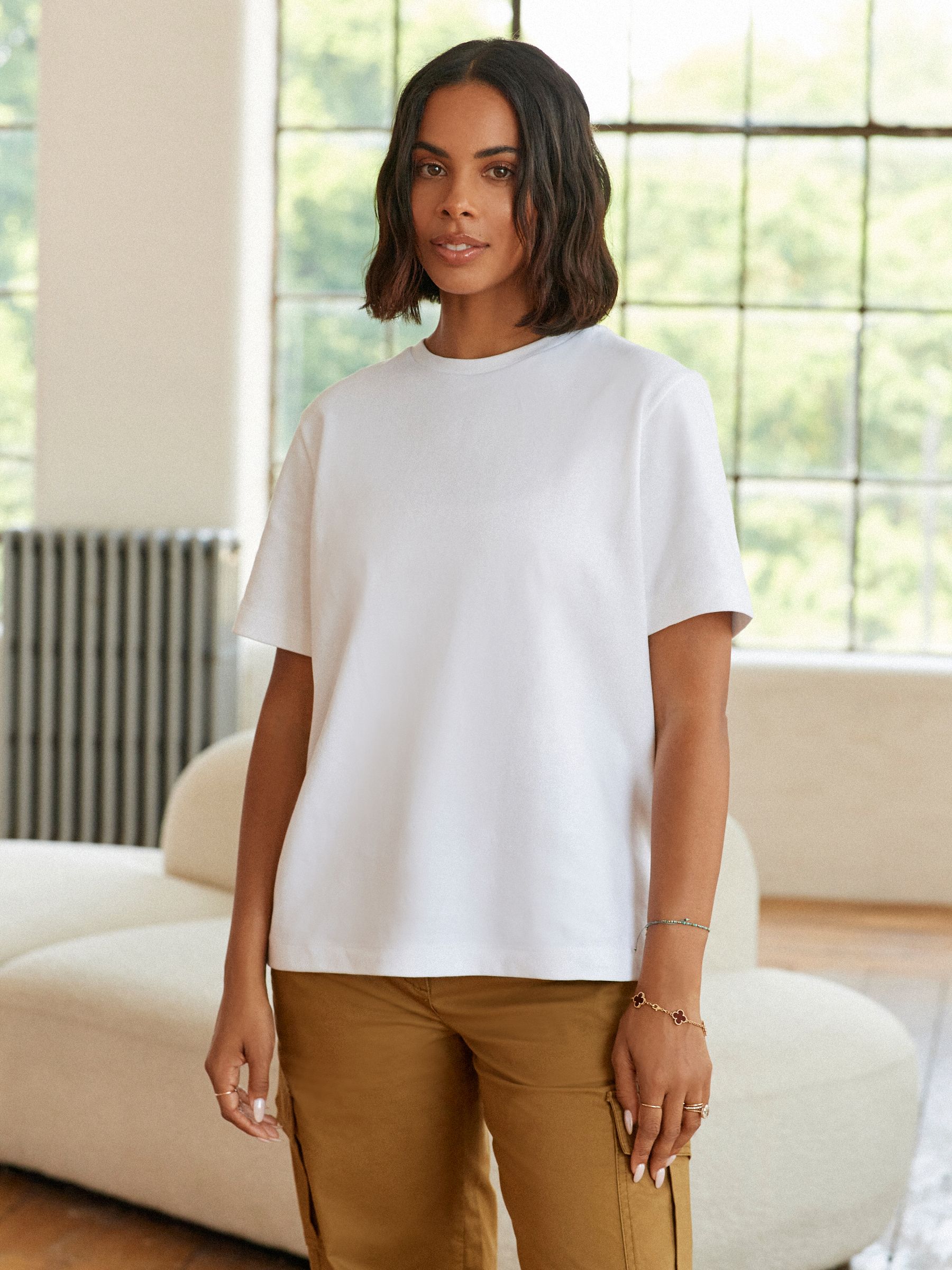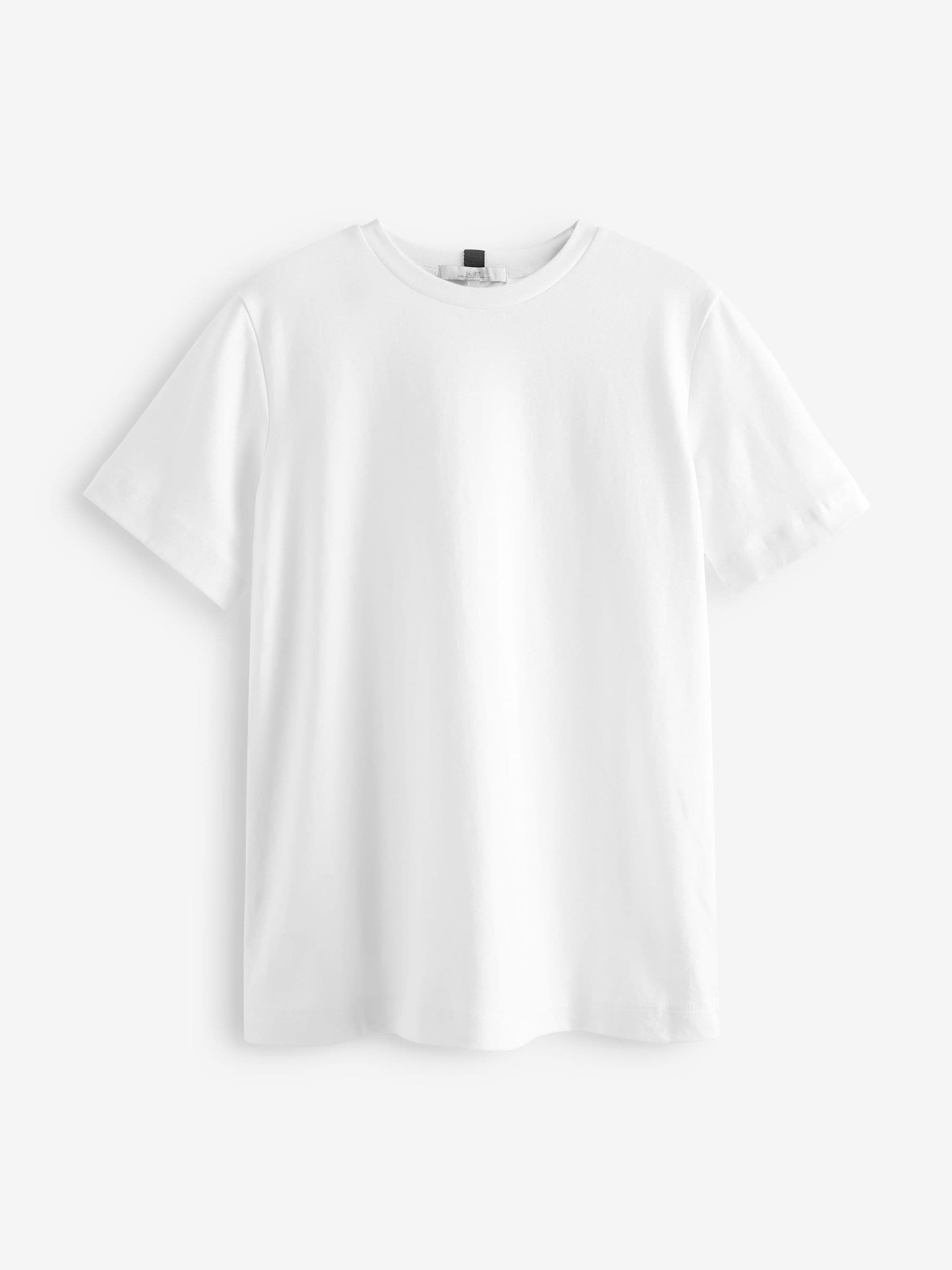 This product has a looser fit than usual, we recommend sizing down. Made from the softest cotton and offering a heavyweight finish, our short-sleeved white T-Shirt is a wardrobe must-have. Boasting a crew neck and a boxy fit, we know you will get some serious enjoyment from this classic T-Shirt. Team it with jeans and boots for an effortless look. Heavyweight finish Crew neck Boxy fit Short sleeves Machine washable. 95% Cotton, 5% Elastane. Items with the curve logo are available in sizes 18 and above., Better Cotton – By choosing our cotton products, you’re supporting our investment in Better Cotton’s mission to help cotton farming communities survive and thrive while protecting and restoring the environment. This product is sourced via a system of mass balance and therefore may not contain Better Cotton. Learn more at www.next.co.uk/better-cotton