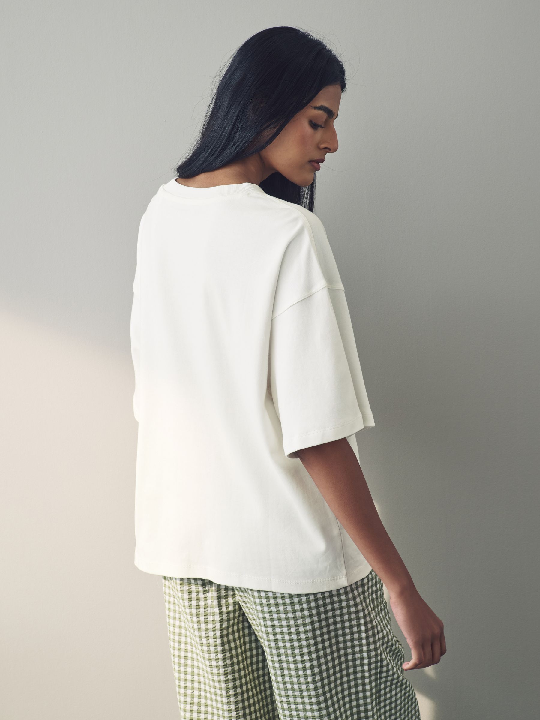 The one item of clothing every person must have in their wardrobe will be a basic T-Shirt. Bonus points if that T-Shirt is extremely flattering, comfortable and versatile with practically any outfit no matter the occasion. We feel our heavyweight Boxy fit T-Shirt is the perfect staple to add to your collection. This pure-cotton, relaxed-fit T-Shirt adds a statement look to your style staples, finished in a boxy cut with dropped shoulders and a ribbed crew neck collar. Relaxed, boxy fit 100% Cotton Dropped shoulders Ribbed crewneck collar 100% Cotton. Made with U.S. Cotton Trust Protocol verified origin. A new standard in sustainble cotton production. The U.S. Cotton Trust Protocol assures more sustianable cotton farming, including fair working conditions and best practices for water and pesticide usage, soil diversity and greenhouse gas emmisions.