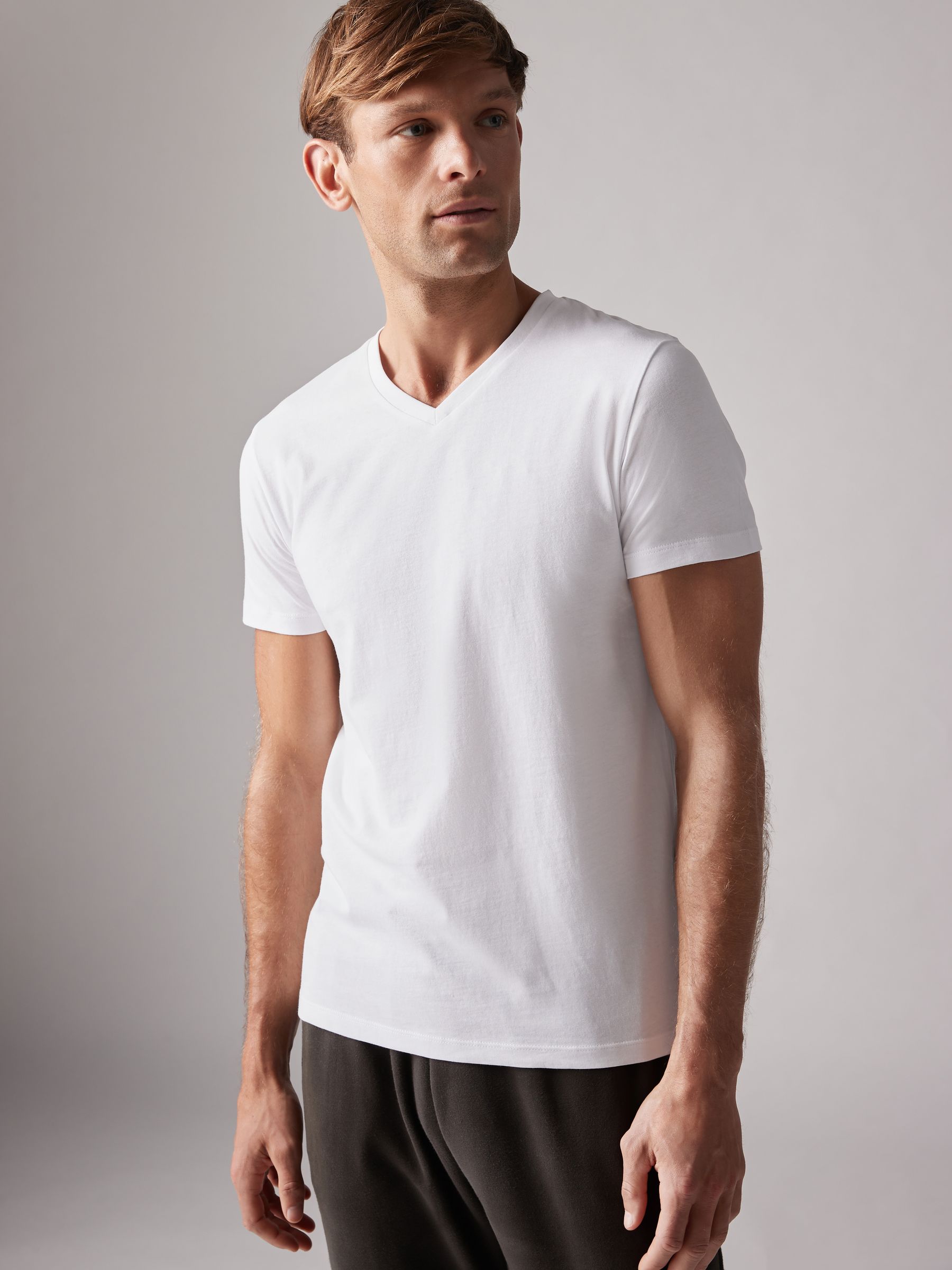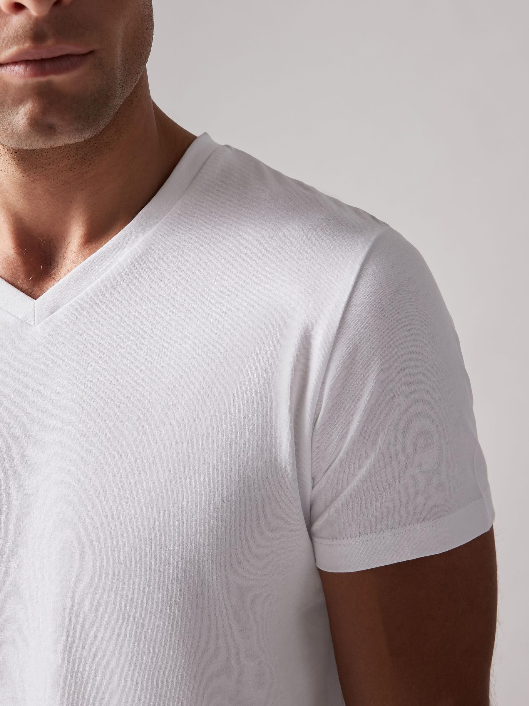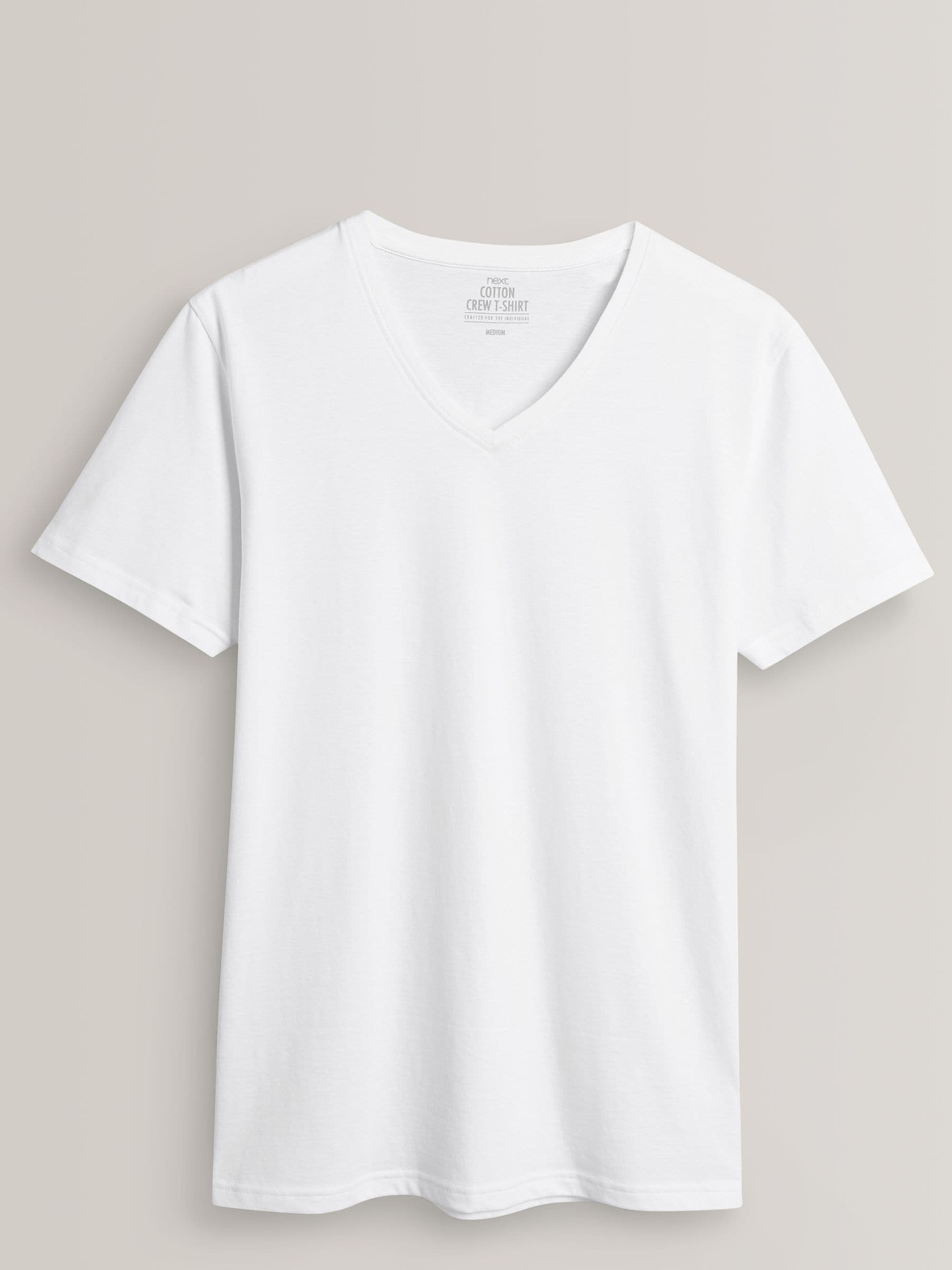 A year-round wardrobe essential, this multipack of White V-neck T-shirts are designed in a flattering regular fit from 100% cotton. The t-shirts are finished with a ribbed collar and printed labels for added comfort. Regular fit 100% cotton V-neck collar Printed labels Designed in a slimmer fit to wear comfortably underneath other garments. Machine washable. 5 x T-shirt 100% Cotton. To view our Men’s Underwear Fit Guide CLICK HERE Better Cotton – By choosing our cotton products, you’re supporting our investment in Better Cotton’s mission to help cotton farming communities survive and thrive while protecting and restoring the environment. This product is sourced via a system of mass balance and therefore may not contain Better Cotton. Learn more at www.next.co.uk/better-cotton