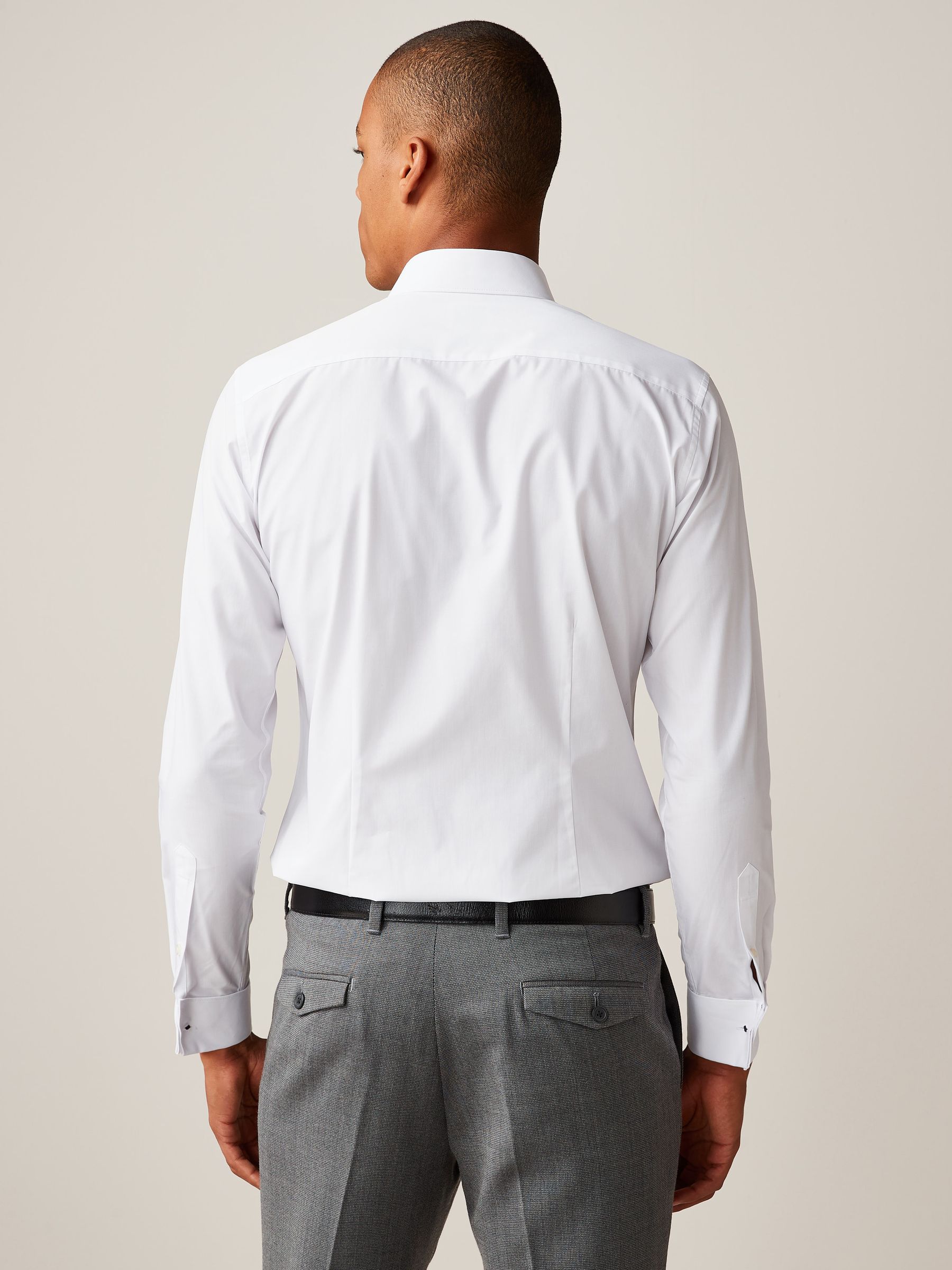 Make everyday styling easy with our easy care double cuff slim fit shirt in white. Easy to iron, practical and comfortable, this shirt is designed to take the stress out of dressing.