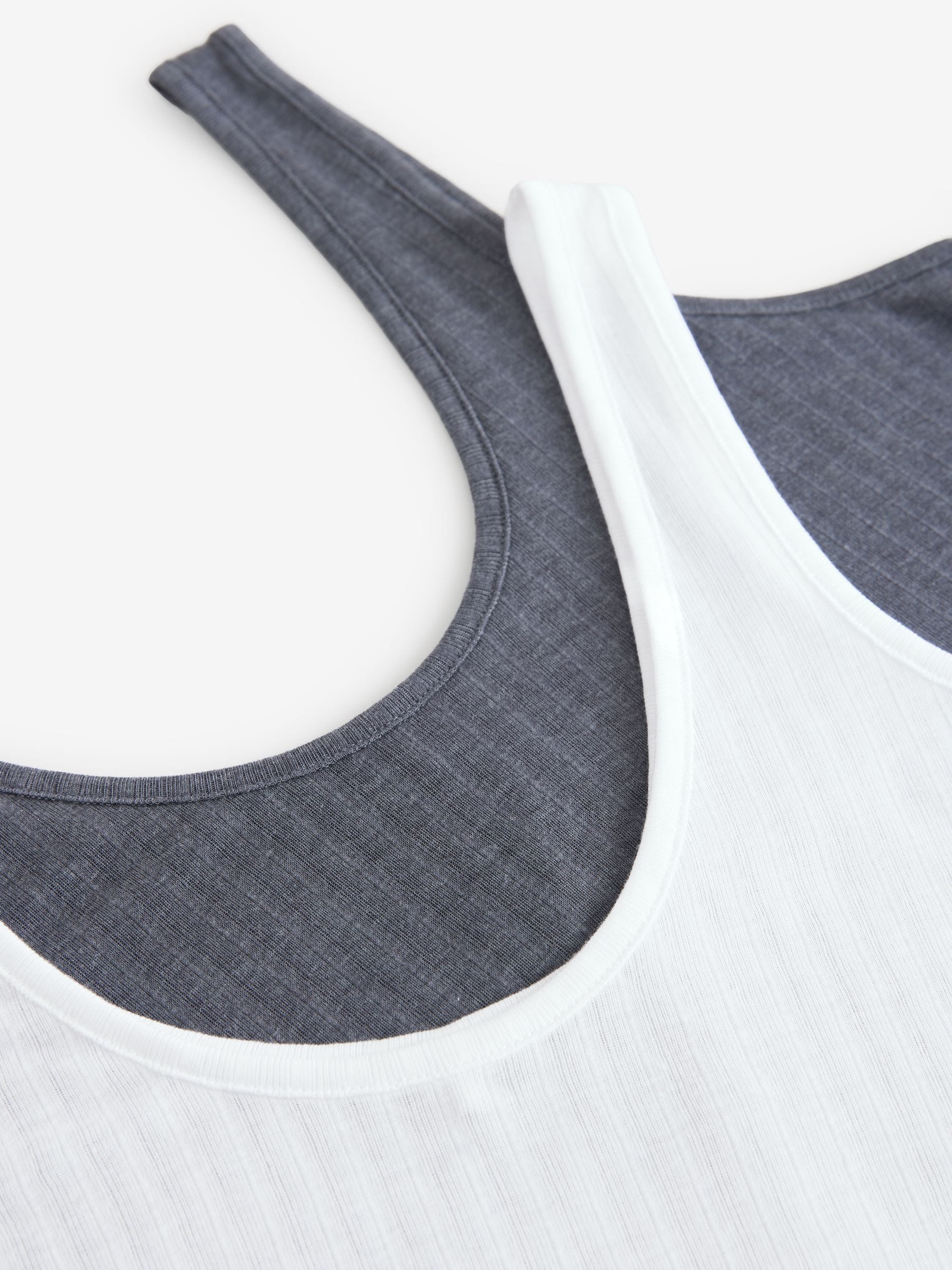 This 2-pack of vests are a style staple, crafted in a wide set ribbed fabric to a slouchy relaxed shape that’s perfect for layering or wearing on their own as a top.