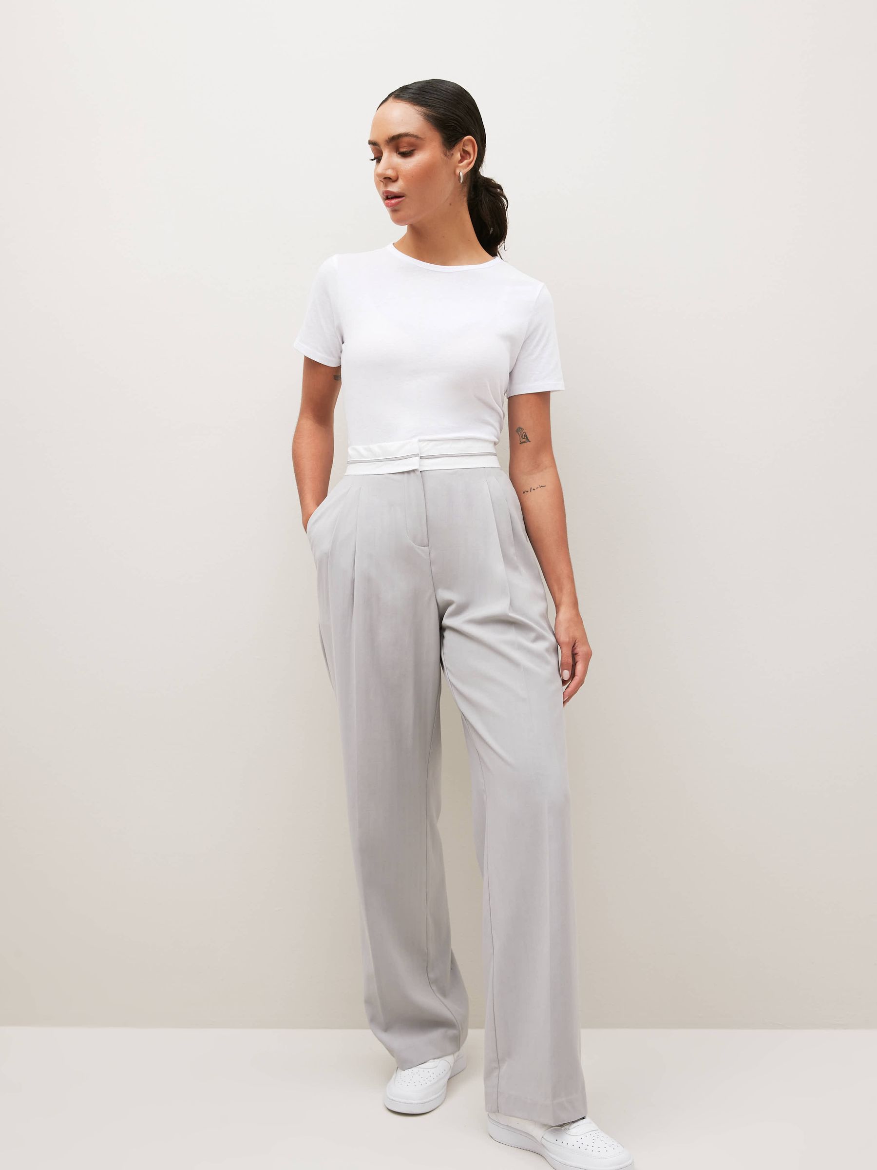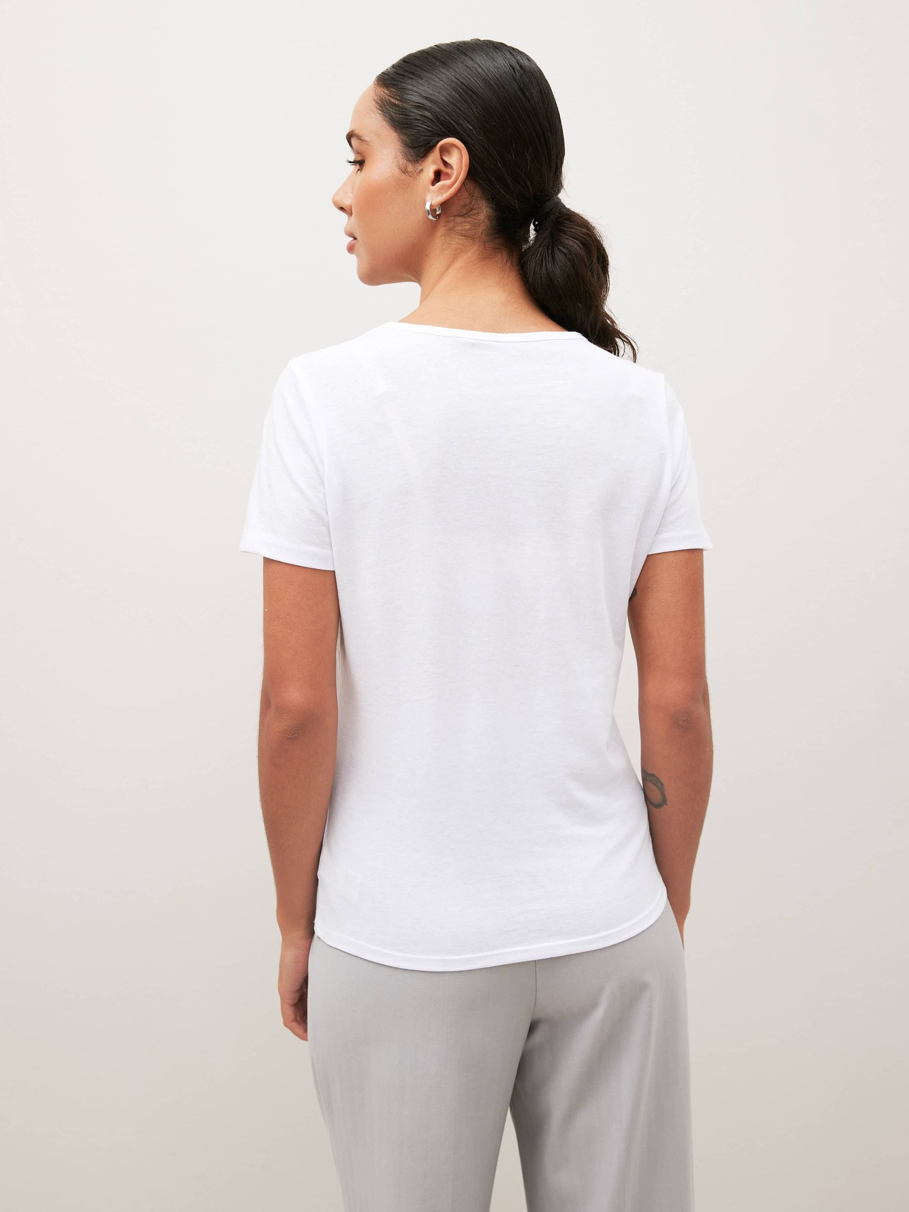 A wardrobe staple, this white crew neck short-sleeve top is made from soft cotton rich fabric, made to feel luxurious on the skin. Designed in a slim fit it is perfect for your everyday wear to the office or out on the weekend. This top is ideal to pair with anything and everything. Slim fit Crew neck Short sleeves Cotton rich fabric Machine washable. 60% Cotton, 40% Polyester. Items with the curve logo are available in sizes 18 and above., Better Cotton – By choosing our cotton products, you’re supporting our investment in Better Cotton’s mission to help cotton farming communities survive and thrive while protecting and restoring the environment. This product is sourced via a system of mass balance and therefore may not contain Better Cotton. Learn more at www.next.co.uk/better-cotton